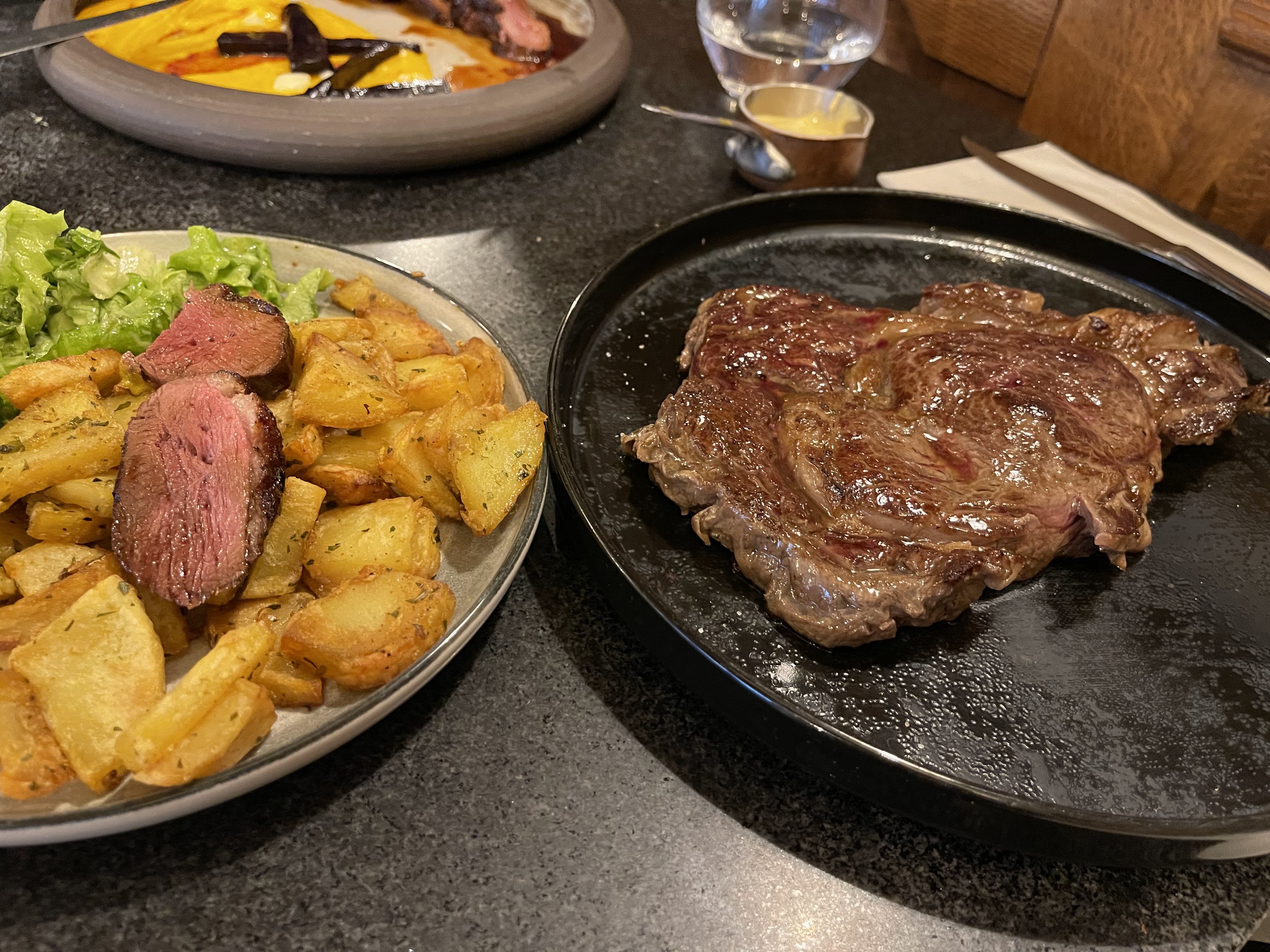 Viande maturée d’excellente qualité avec de bons accompagnements. Le seul bémol: je n’avais plus faim pour les desserts qui me faisaient pourtant de l’œil mais ce sera pour la prochaine fois !