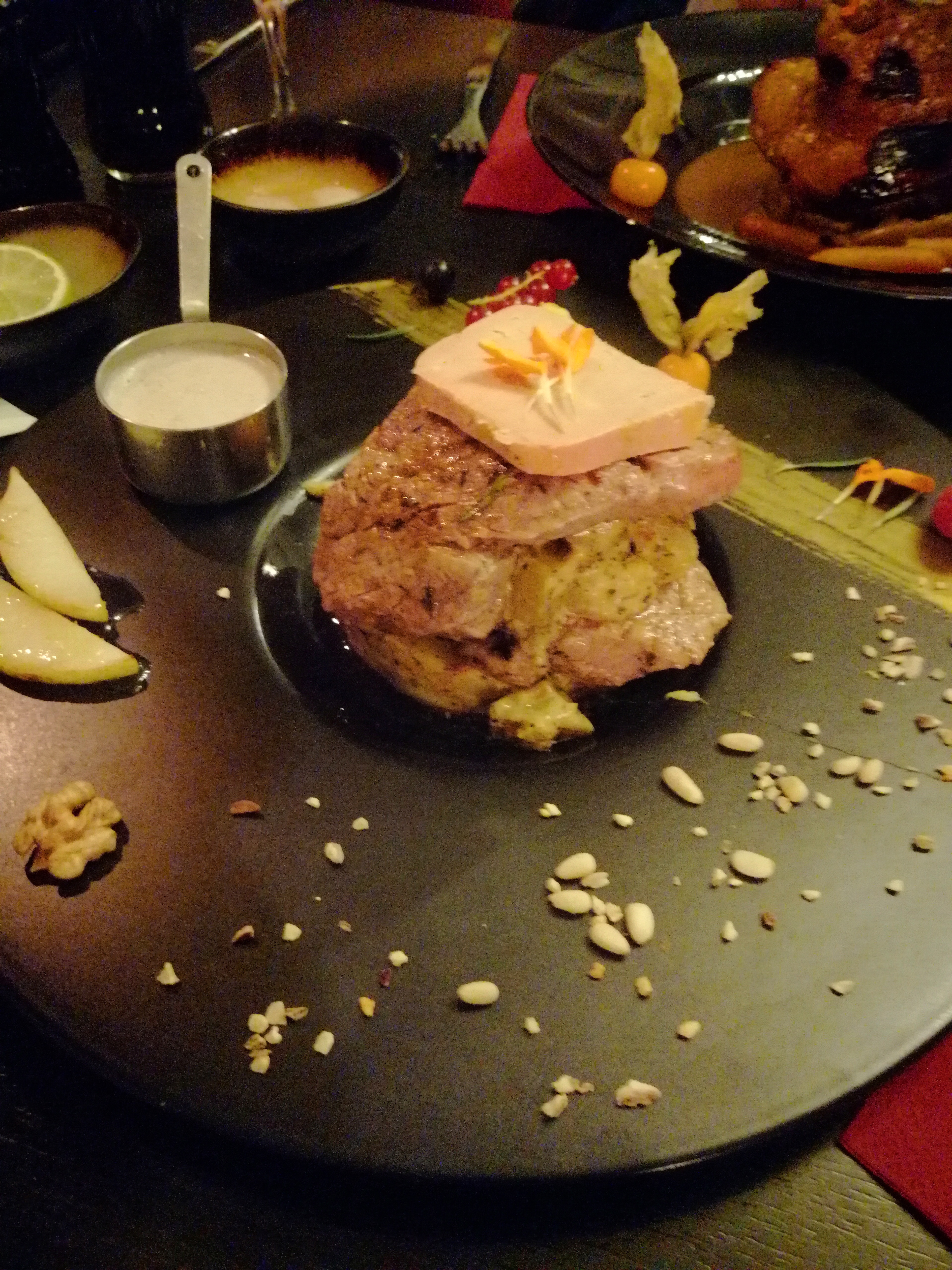 La viande était très bonne, on a apprécié le thé gourmand que je recommande ! Par contre je retire une étoile à cause de l'entrée de foie gras : trop de pain sur le plat pour accompagner deux tranches de foie gras .... à mon avis c'est dommage ce gaspillage de pain.