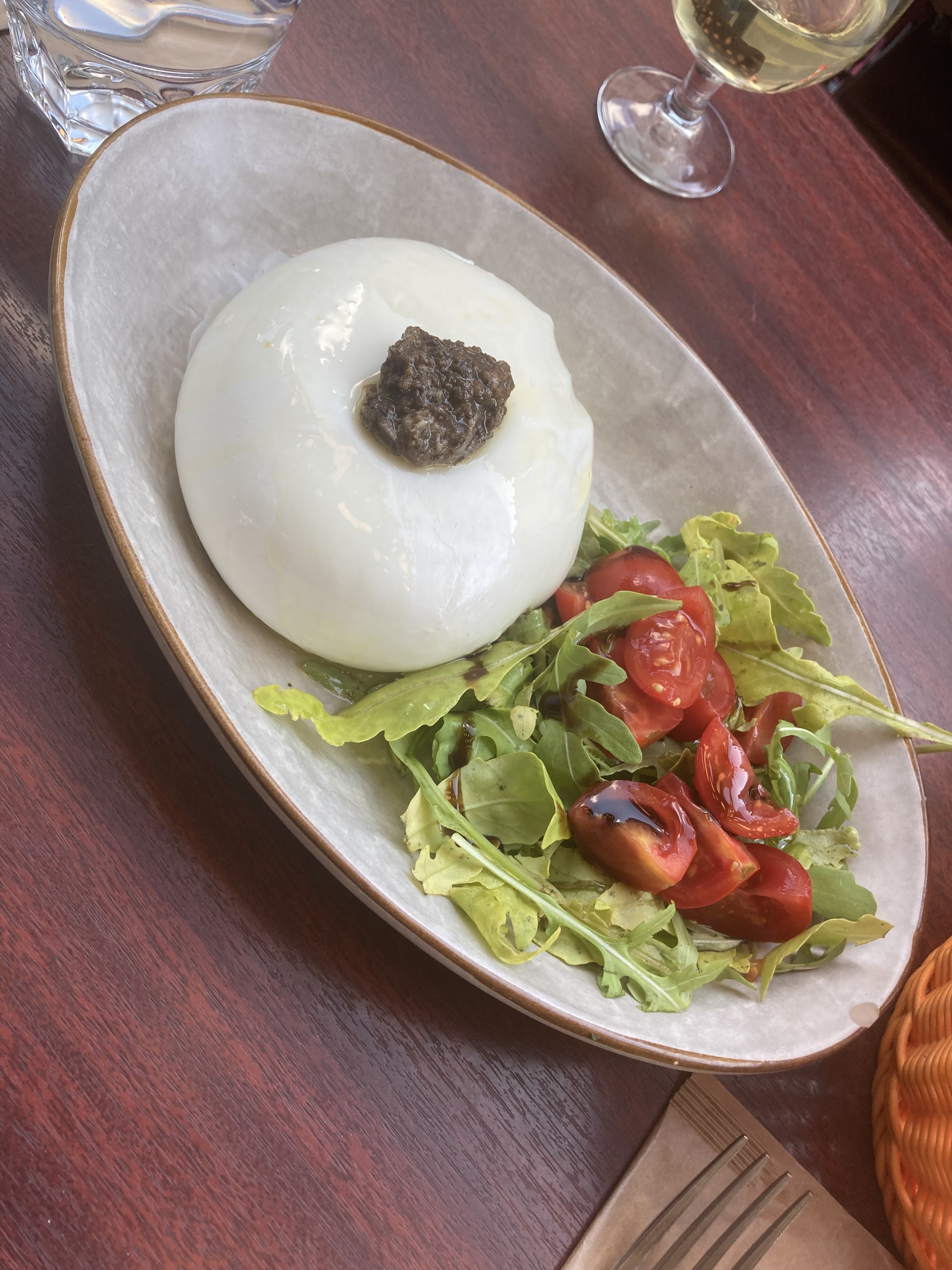 Super restaurant italien ! Je confirme que la burrata en vaut vraiment le détour ! Bien crémeuse et succulente.. les raviolis figues et noix très bonne même si un peu trop sucrée Les pâtes aux champignons très bonne, la pizza 5 fromages délicieuse !!! Le service très rapide pour les pizza un peu moins pour les pâtes.