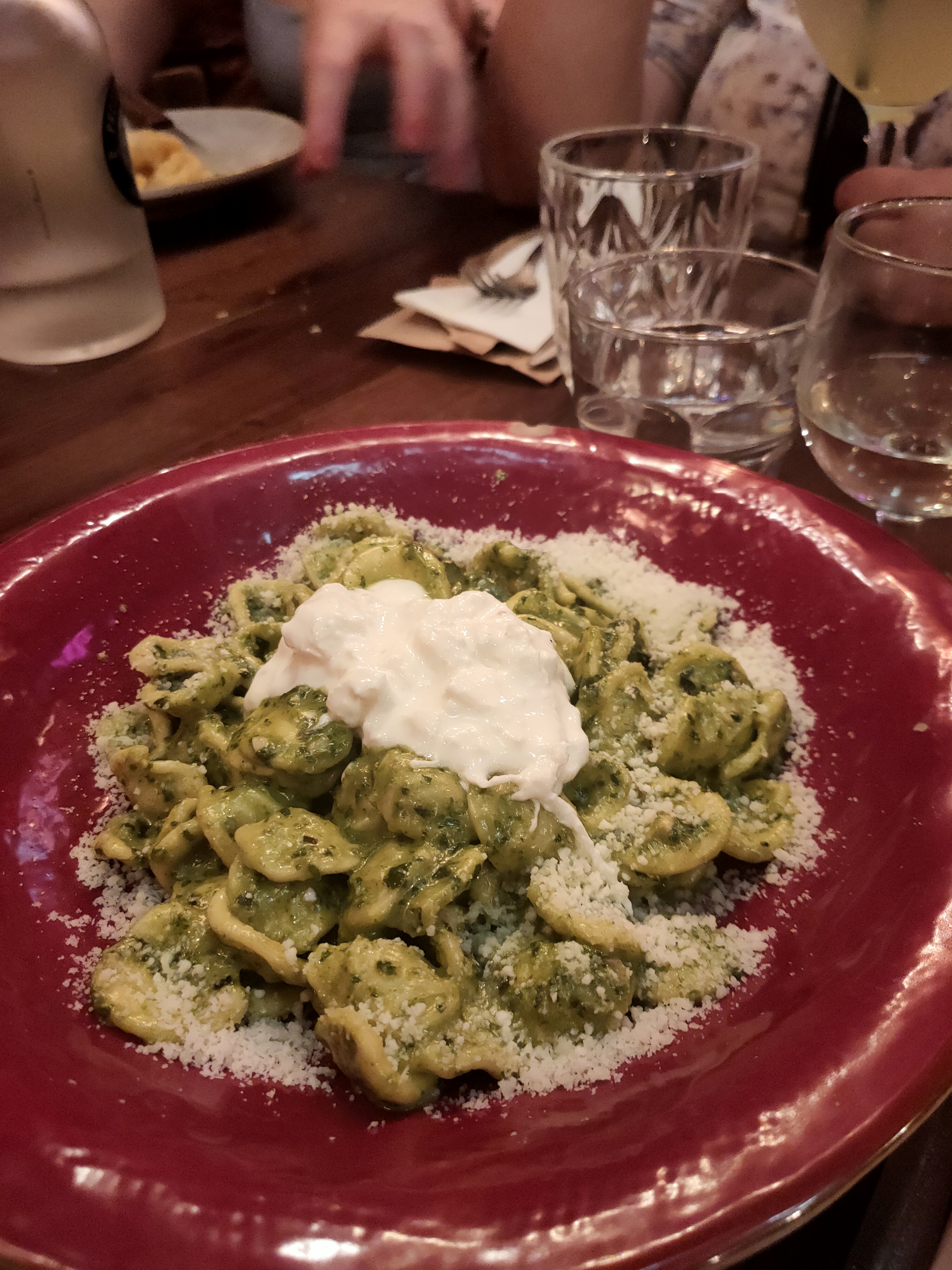 J’ai mangé un plat excellent ! Je n’ai jamais mangé des pâtes pesto/burrata aussi bonnes. Le pesto n’était pas écoutant, la cuisson al dente des pâtes était parfaite. Les prix sont très abordables et les portions généreuses. Le service a été assez rapide. Et le cadre du restaurant est très authentique et très typique italien.