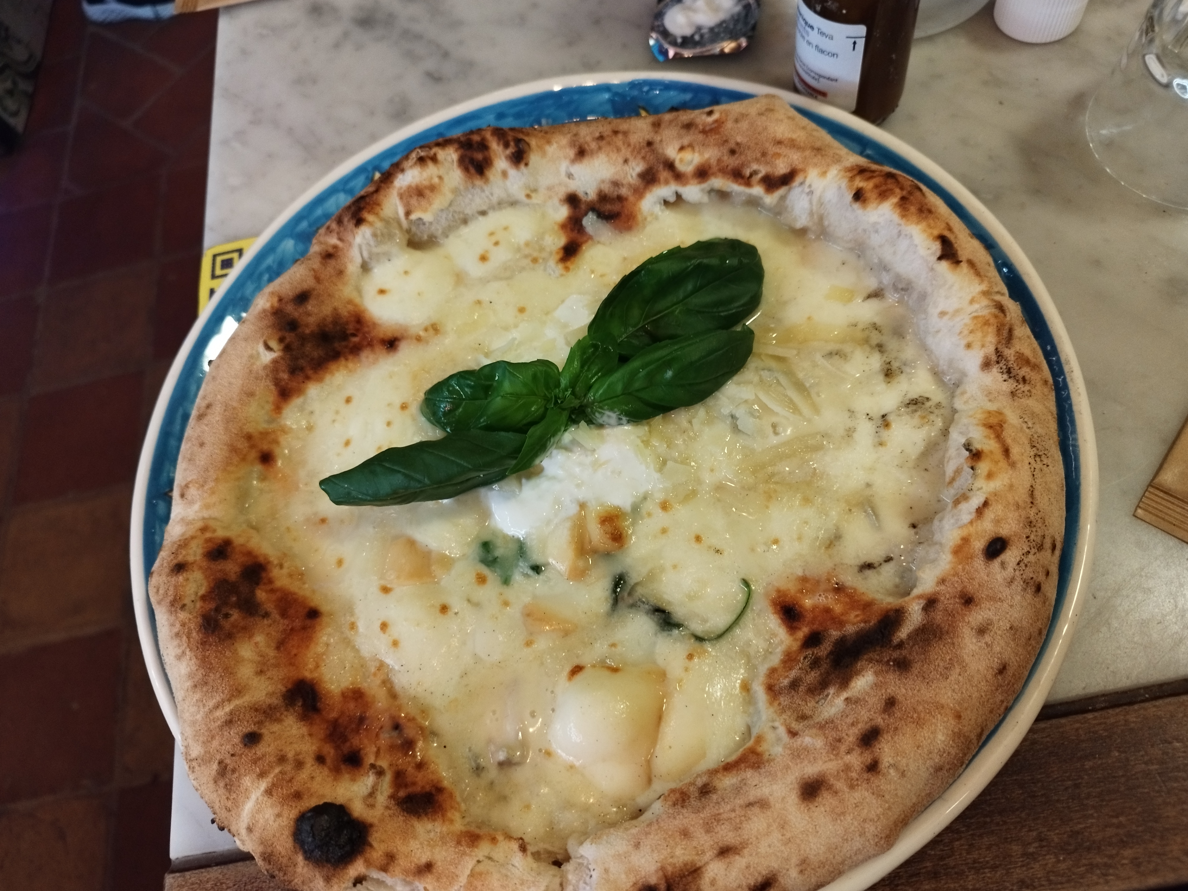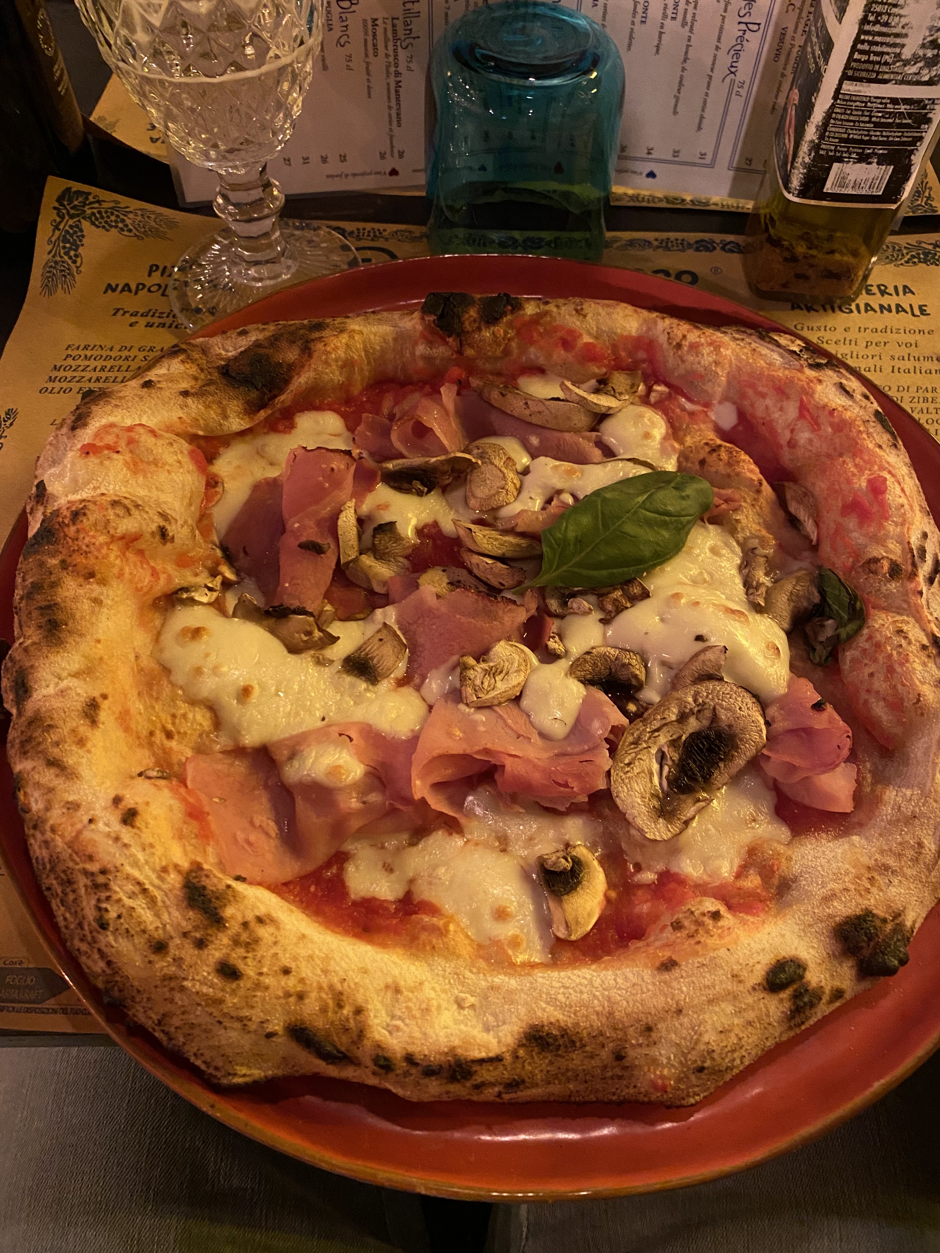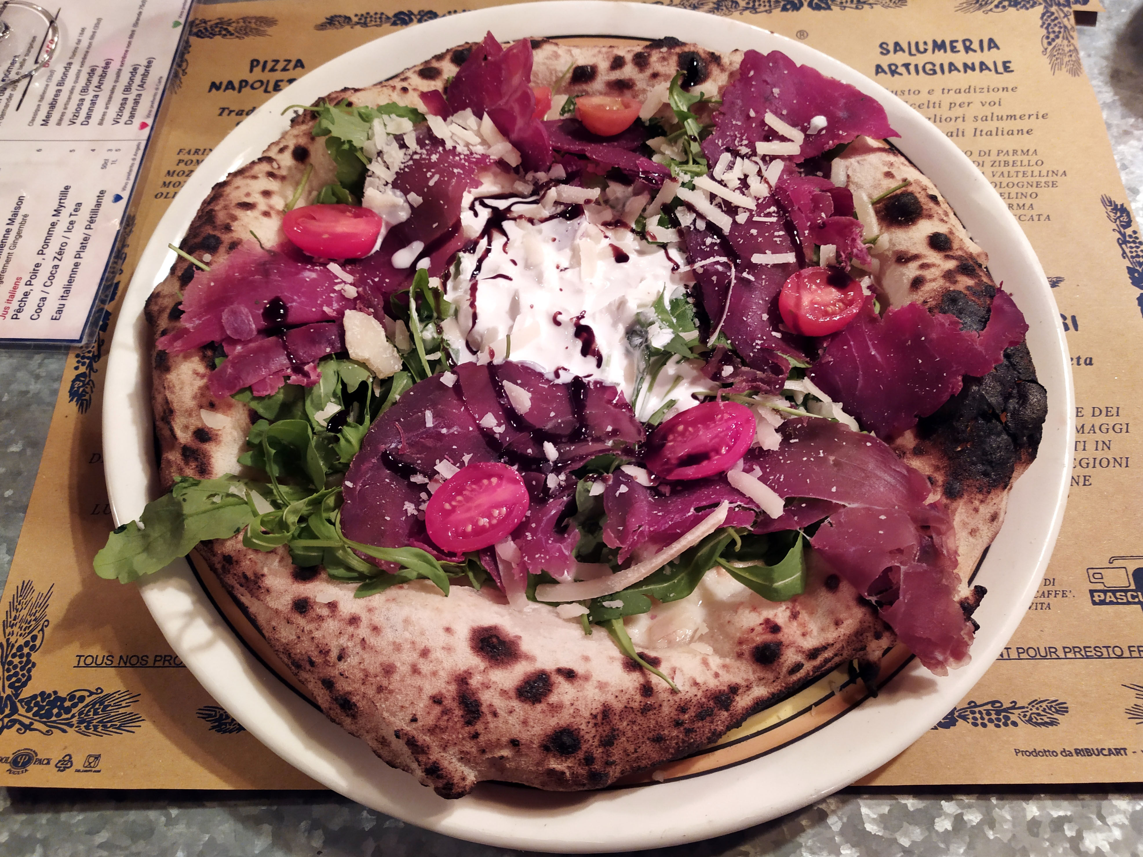 Le cadre du restaurant est vraiment très sympathique et tout donne envie d’être mangé. Les pizzas étaient bonnes. L’avis de la tablée était unanime. En revanche, côté hygiène nous nous sommes posés quelques questions car un vieux ticket de commande s’était glissé sous notre pizza… Cela gâche forcément l’expérience. Nous savions qu’il fallait voir les toilettes mais la queue y était infinie…