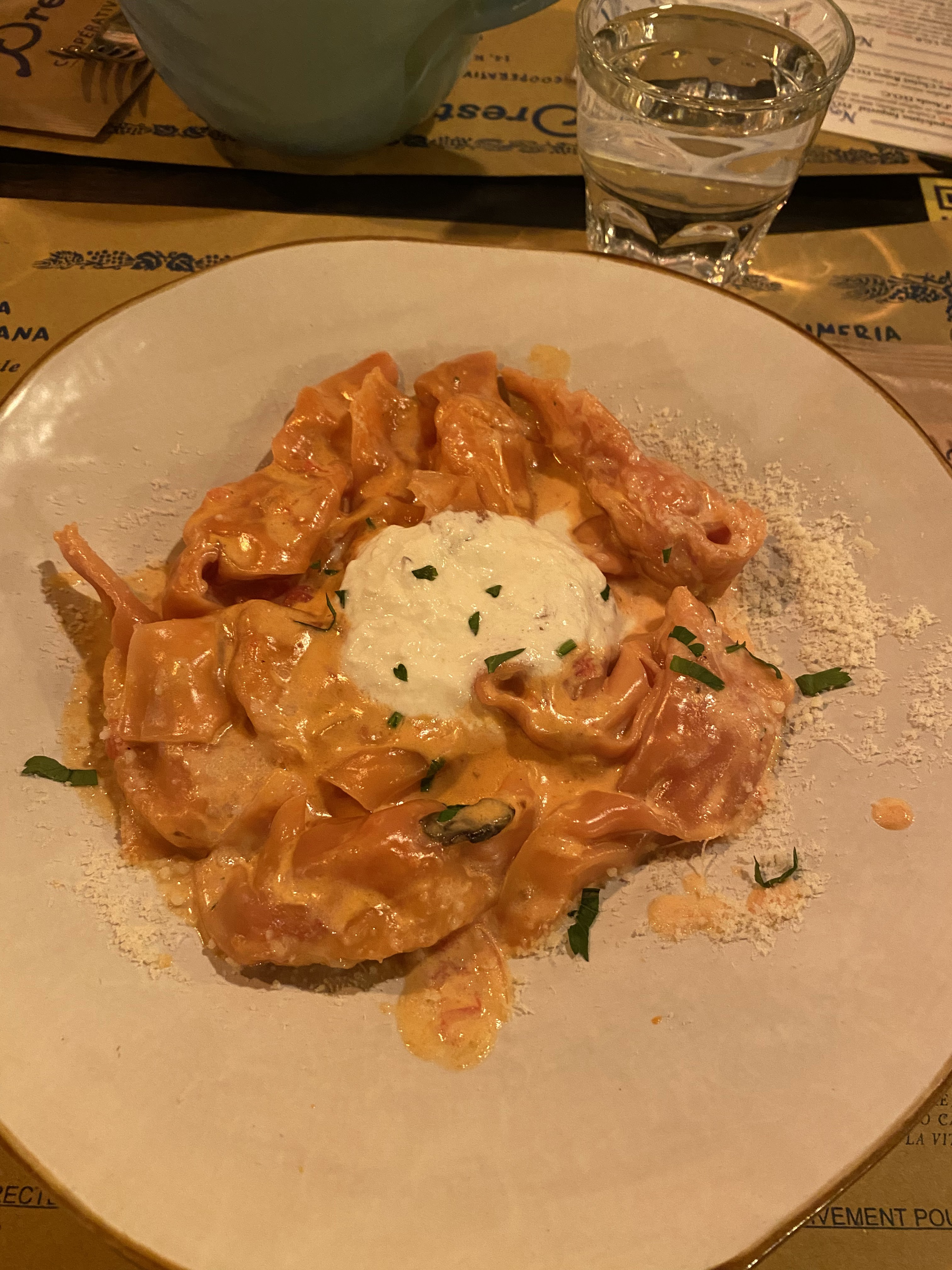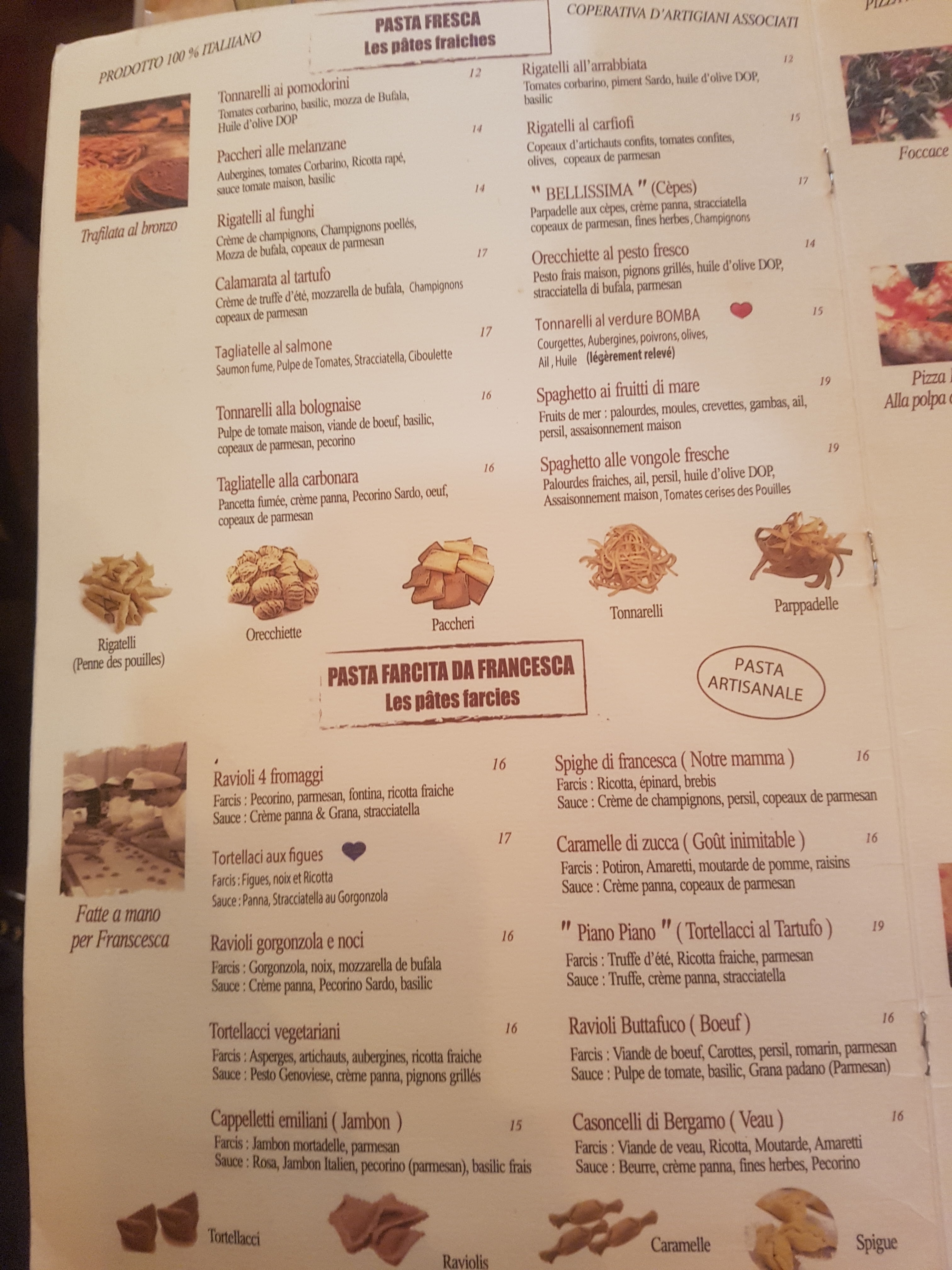 Un gros coup de cœur pour cette trattoria, des raviolis aux recettes originales ! C’est frais et c’est fait main ! Là Deco est décadente et sympa! Le service adorable . Il est conseillé de réserver afin de ne pas faire la queue