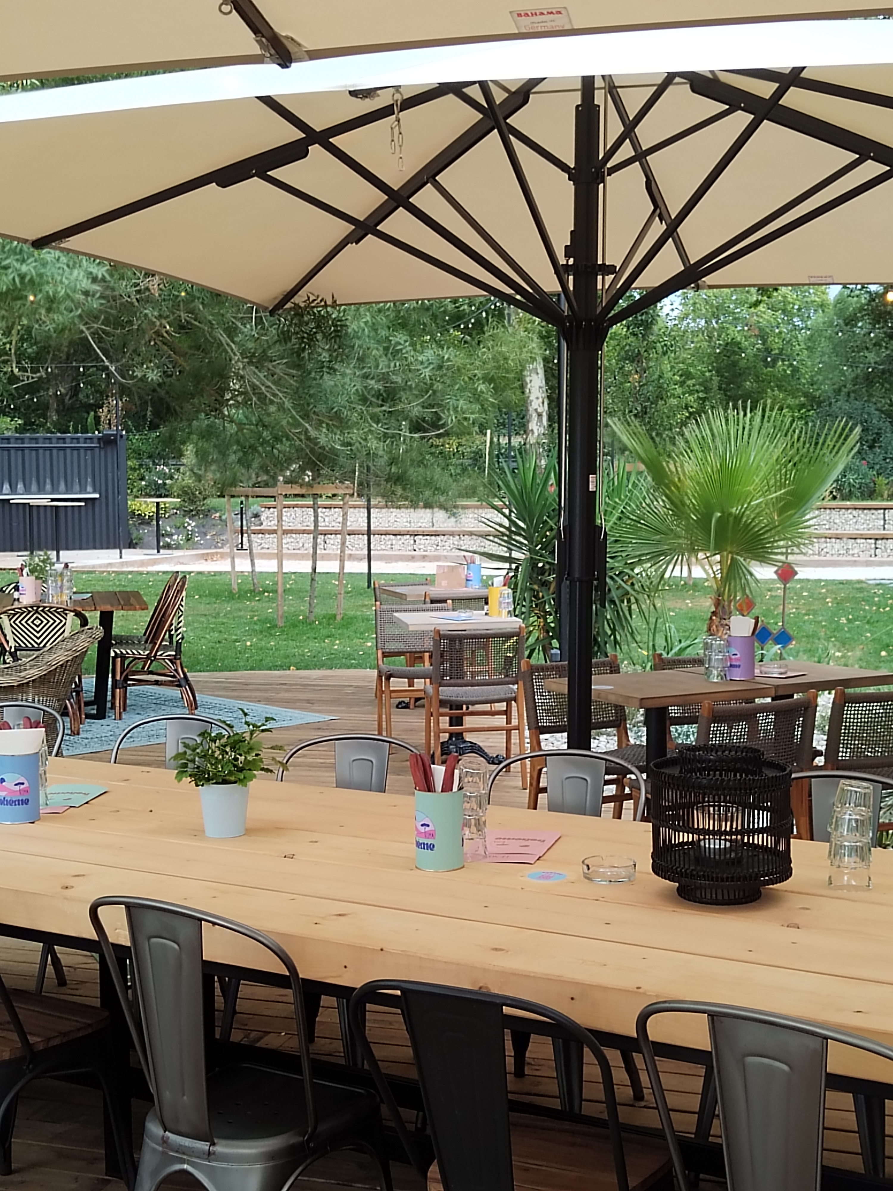 Très beau restaurant, avec de supers espaces pour que les enfants puissent courir et s amuser. Pas de moustiques (peut être grâce au lac et ses grenouilles). Les cocktails sont très sympas et les anti pastis fabuleux. Le seul bémol c était la présence de mouches. Je remercie tout le personnel pour cet accueil fabuleux mais en particulier Alix très sympathique et professionnelle. Au plaisir de revenir avec mes copines.