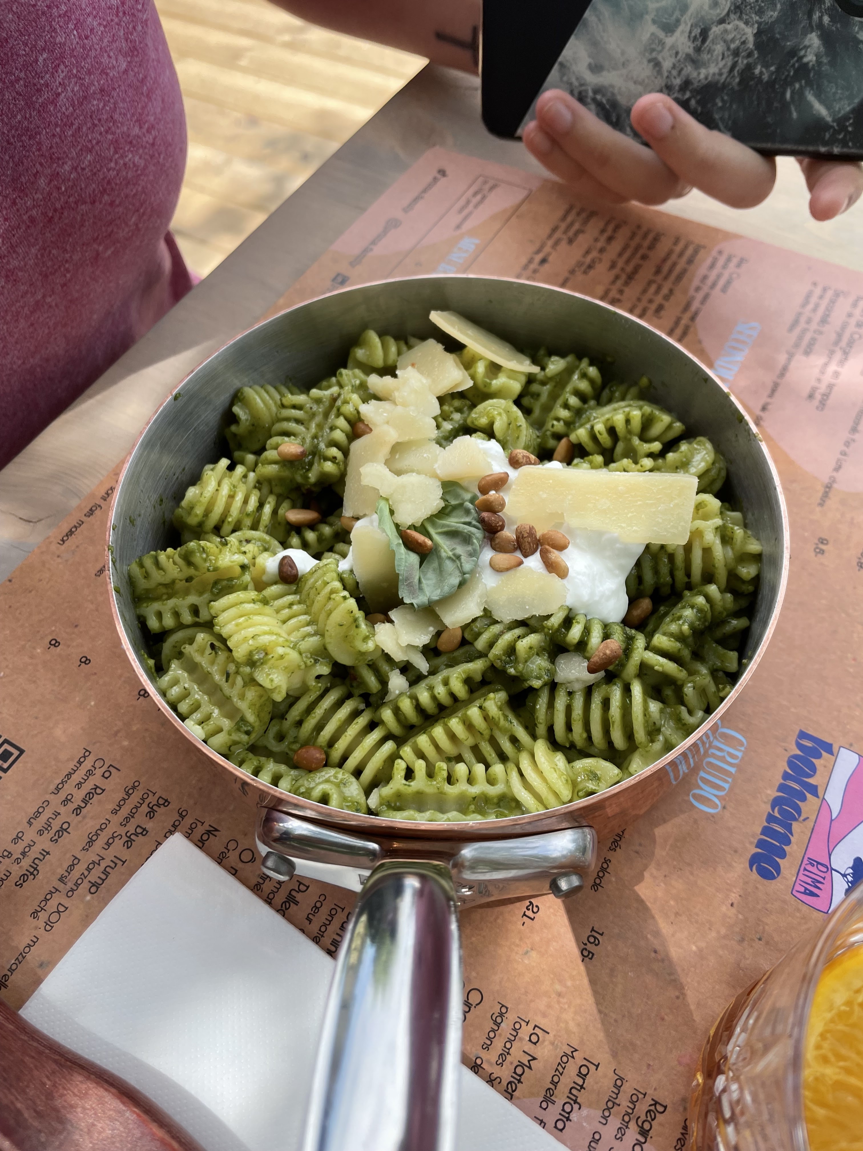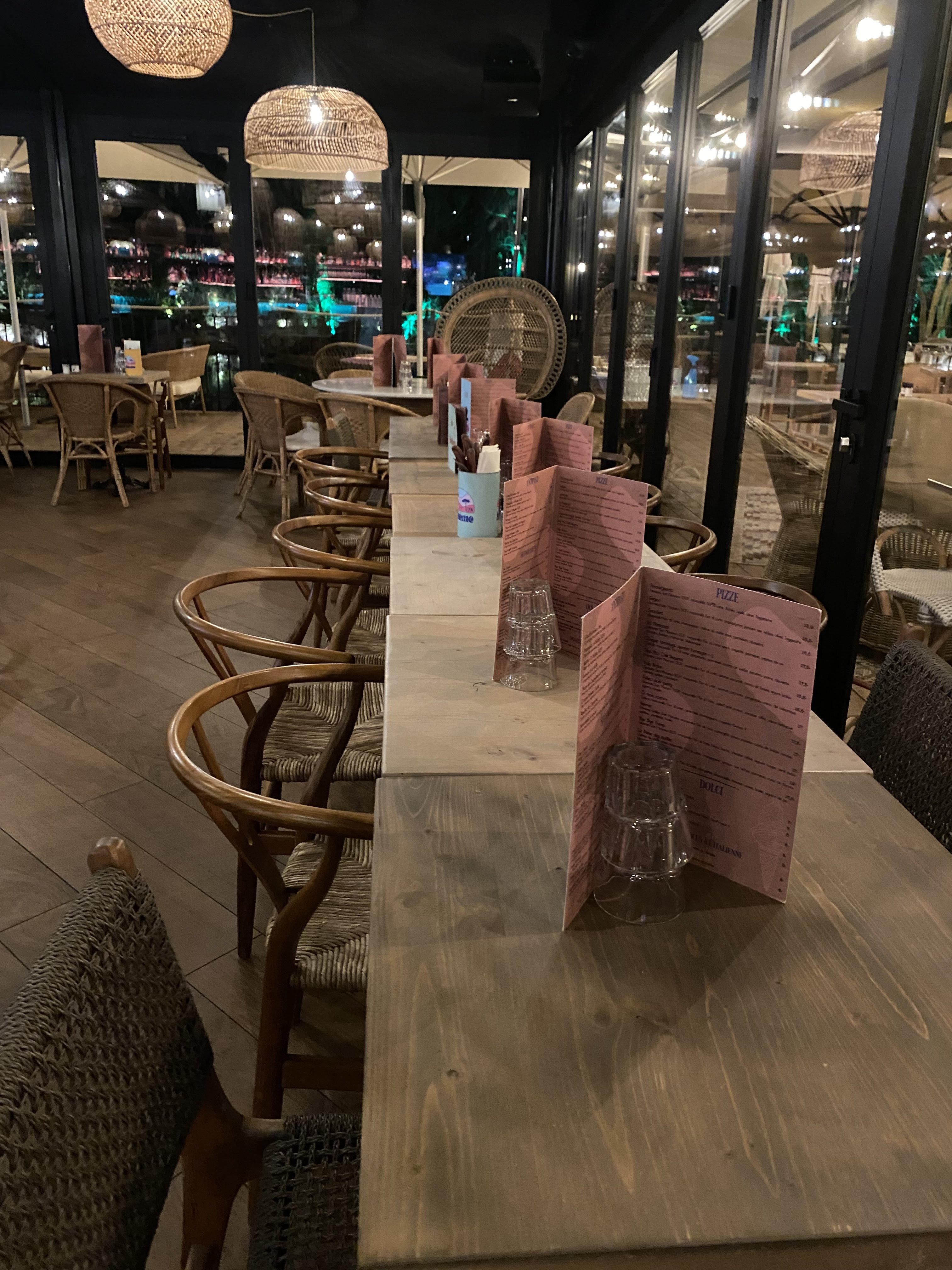 Un cadre incroyable pour qui vient sous le soleil avec des enfants ! Un moment juste pour les parents, où les petits y trouvent aussi leur compte. Possibilité de chill après le repas sur des canapés ou chaises longues. Le décor est vraiment chouette. La nourriture est bonne et bien présentée. Les pizzas sont un brin chères, mais dans la lignée des adresses de ce style. Et si on ajoute qu’on a pas eu à payer de bbsitter, alors la note est finalement plutôt légère !!! Gros gros coup de cœur pour le cocktail sans alcool à la purée de gingembre, épices et citron vert. Incroyablement bon !!!