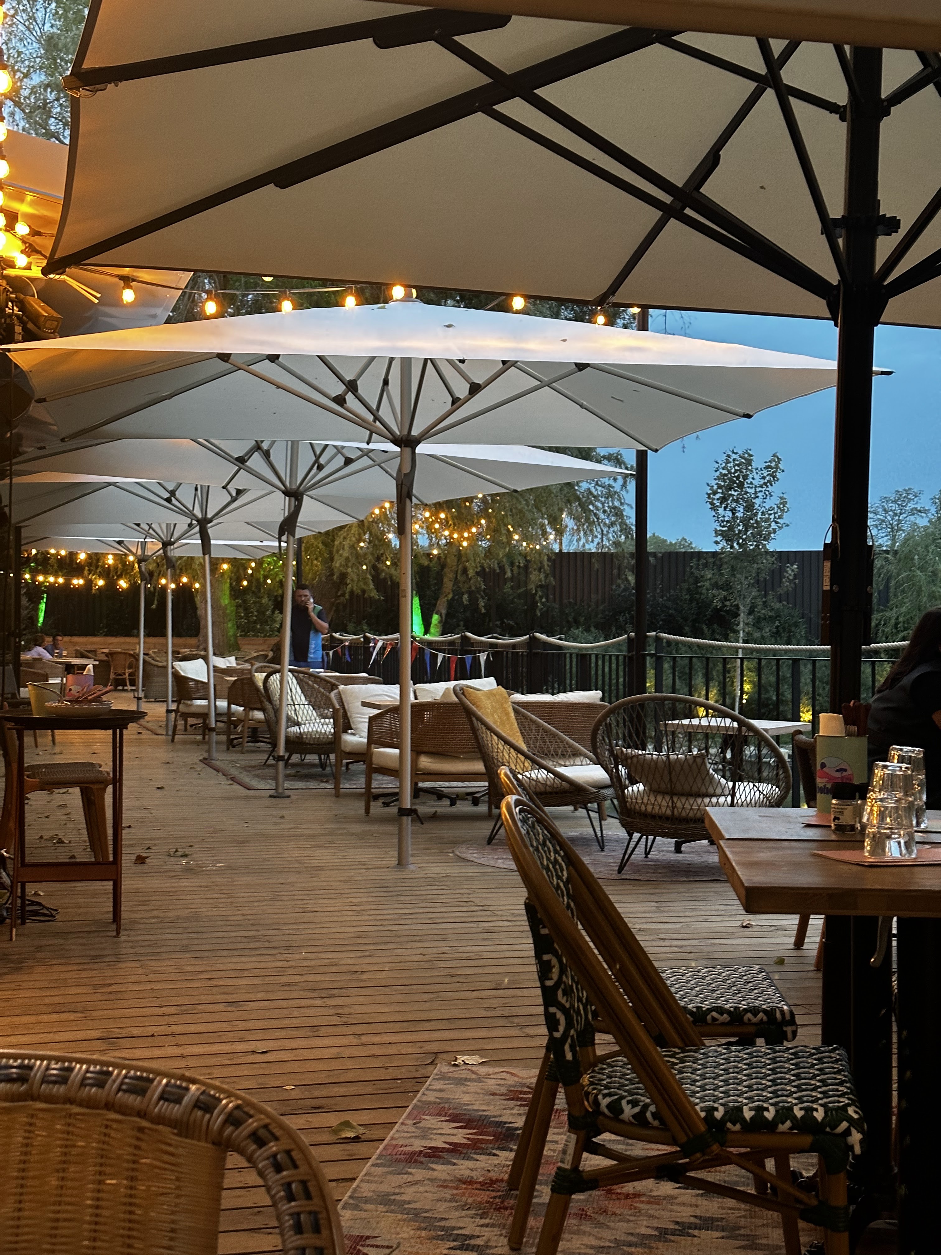 1er passage en septembre. Le lieu est canon ! Au bord d'un lac, des guirlandes lumineuses, un sublime bar, des toilettes instagramables. La carte n'a rien d'innovant. Pizzas,pâtes comme dans les autres Prima. Mais c'est bon ! Certains plats de pâtes sont arrivés froid cependant...mais ils ont corrigé le tir. Service plutôt efficace et rapide car nous étions quand même un grand groupe. L'ambiance est à revoir...le dj n'est pas moderne du tout...🤐 et il n'y a clairement pas beaucoup d'ambiance.