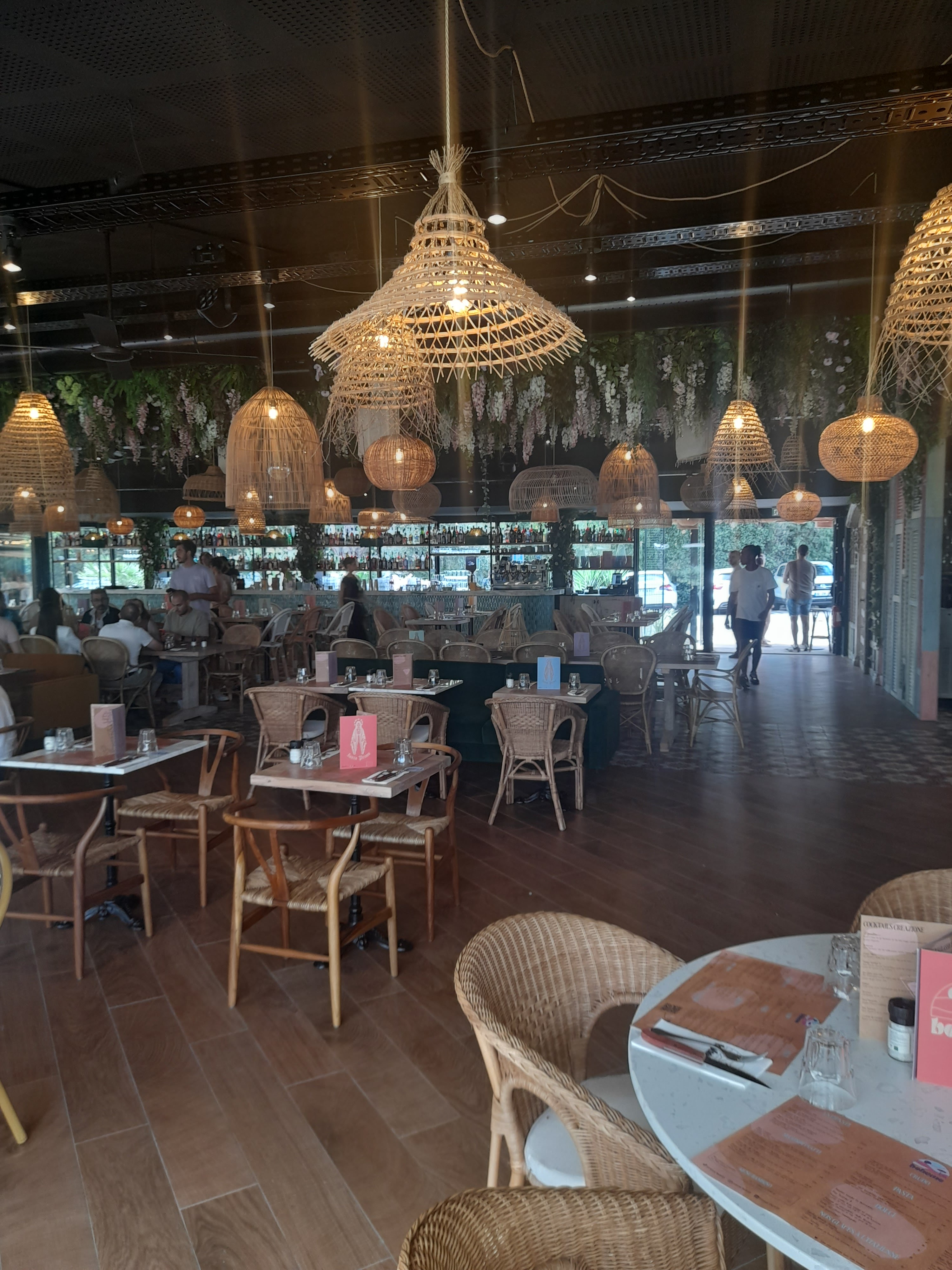 Déco pourrait être sympa si c était terminé mais le plafond n est pas fini. Beignet fleur courgettes bon, buffala bonne aussi, rien d extra, ambiance bruyante on entend a peine la musique mais le brouhaha est désagréable c est dommage y a du potentiel mal exploité, je préfère la cuisine du coco club, améliorez vous ! Et pensez aux bruits 😉