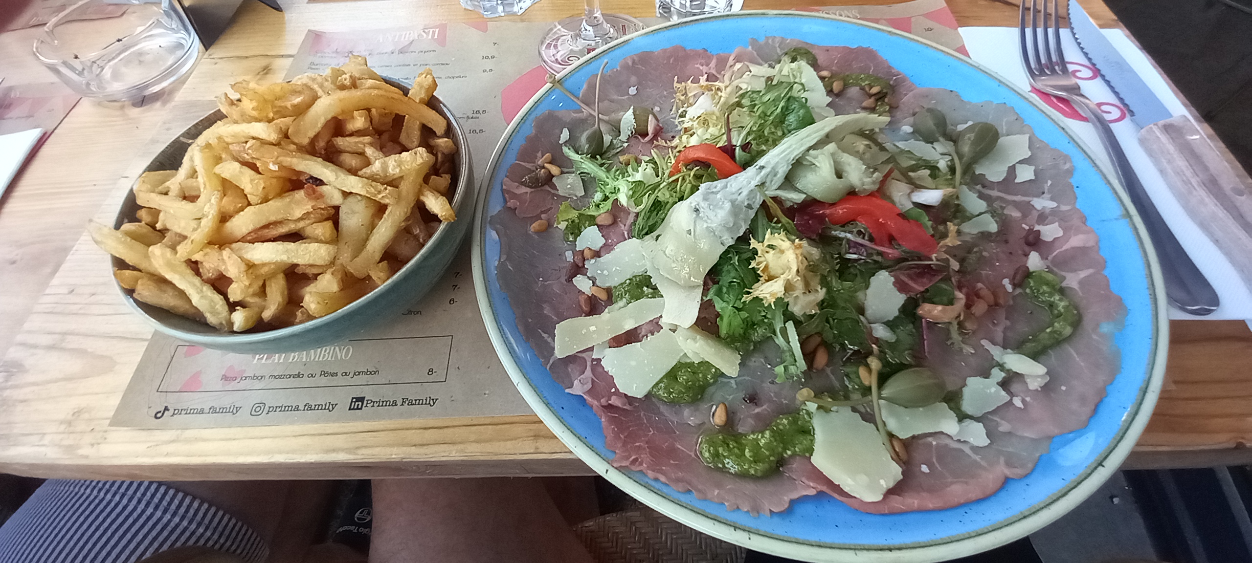 Prima Circus, c'est un p'tit resto Italien avec terrasse, agréable, mignon, convivial. Le personnel de restauration est une pépite. Notre serveuse, Lydie-marie, fut un amour, pleine de bons conseils, de petites touches d'humour, avec une aura chaleureuse communicative. La nourriture est fantastique, copieuse, goûtue, et de qualité. Nos 3 plats furent dévorés. Une pizza aux truffes succulente, un Carpaccio de bœuf délicieux et une salade toast au Gorgonzola très appétissante. La rapidité du service est à saluer, ainsi que la beauté du lieu et la bonne humeur des équipes ! Une super soirée entre copines !