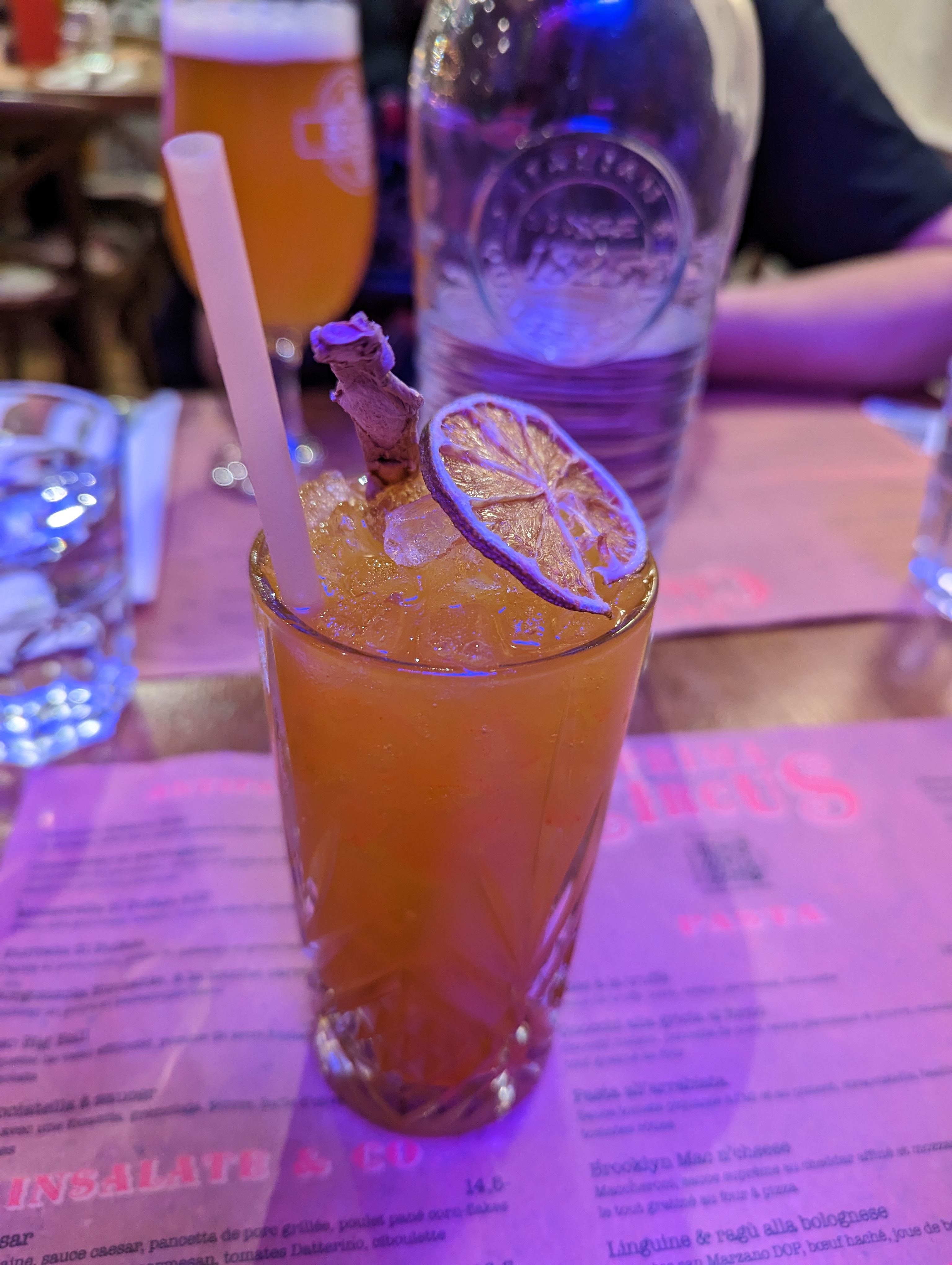 Décoration agréable, travaillée, originale et chaleureuse. Emplacement idéal, proche des transports en commun et d’un parking, également accessible à pieds ; sur une petite terrasse conviviale. Un large de choix de cocktails délicieux. Les produits sont de qualité, la nourriture est vraiment très bonne avec des pizzas absolument délicieuses et des pâtes parfaitement cuites et cuisinées. Ils proposent également de la viande ou des salades. Cependant, concernant le service, une serveuse très pressée qui retire les plats alors que toute la table n’a pas terminé. Lorsqu’une personne de notre table (a 250€) fait une blague sur des shooters, la serveuse répond avec dédain et mépris, un accueil très mauvais. Elle se trompe sur la note une première fois puis sur la division en huit personnes et rapporte ensuite 5 centimes en espèce à chaque individu, n’est-ce pas de la provocation ? Ne dit pas au revoir en partant non plus. Le service de cette personne est déplorable. Ce n’est pas le cas de tous les membres de l’équipe.
