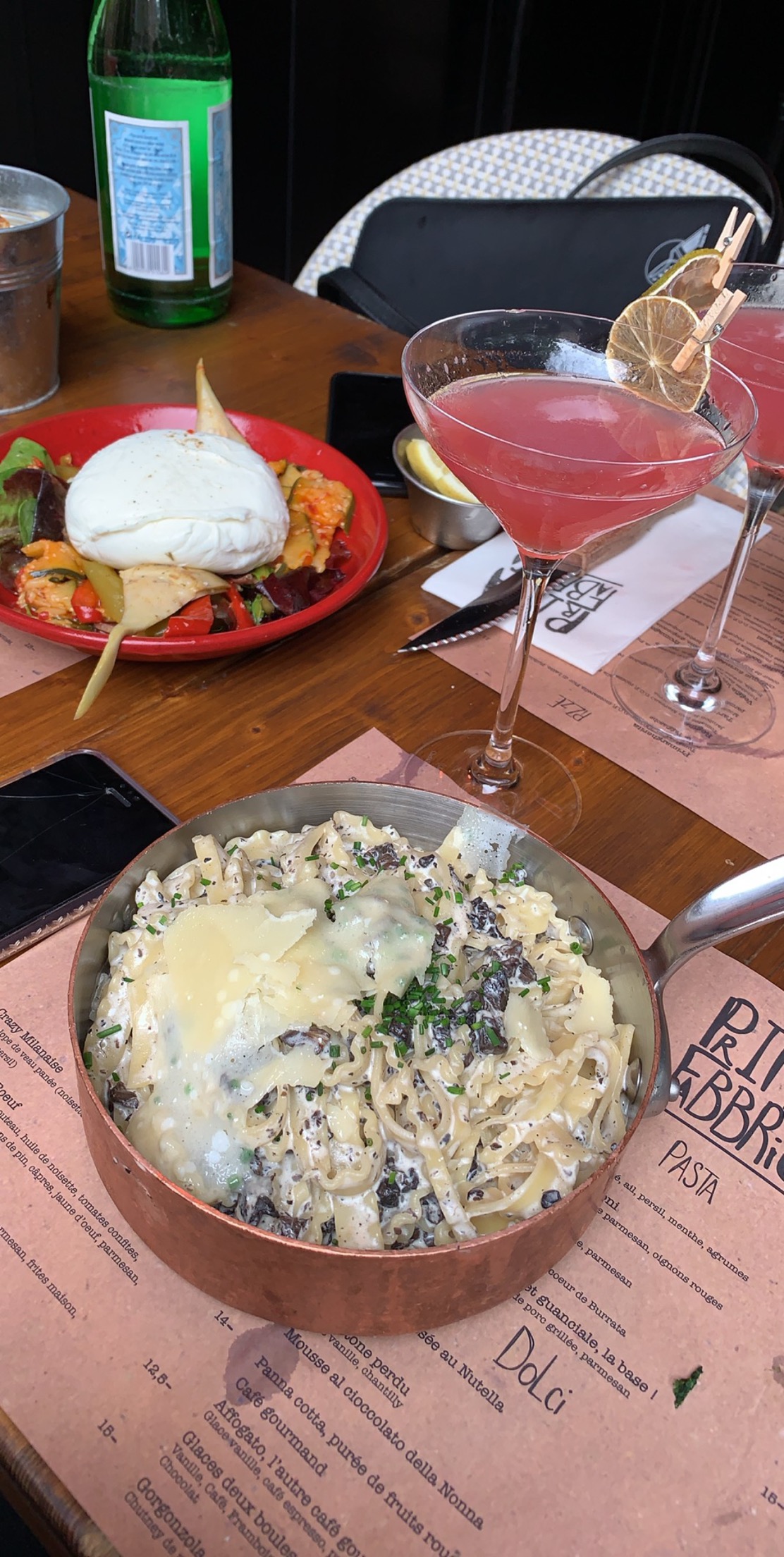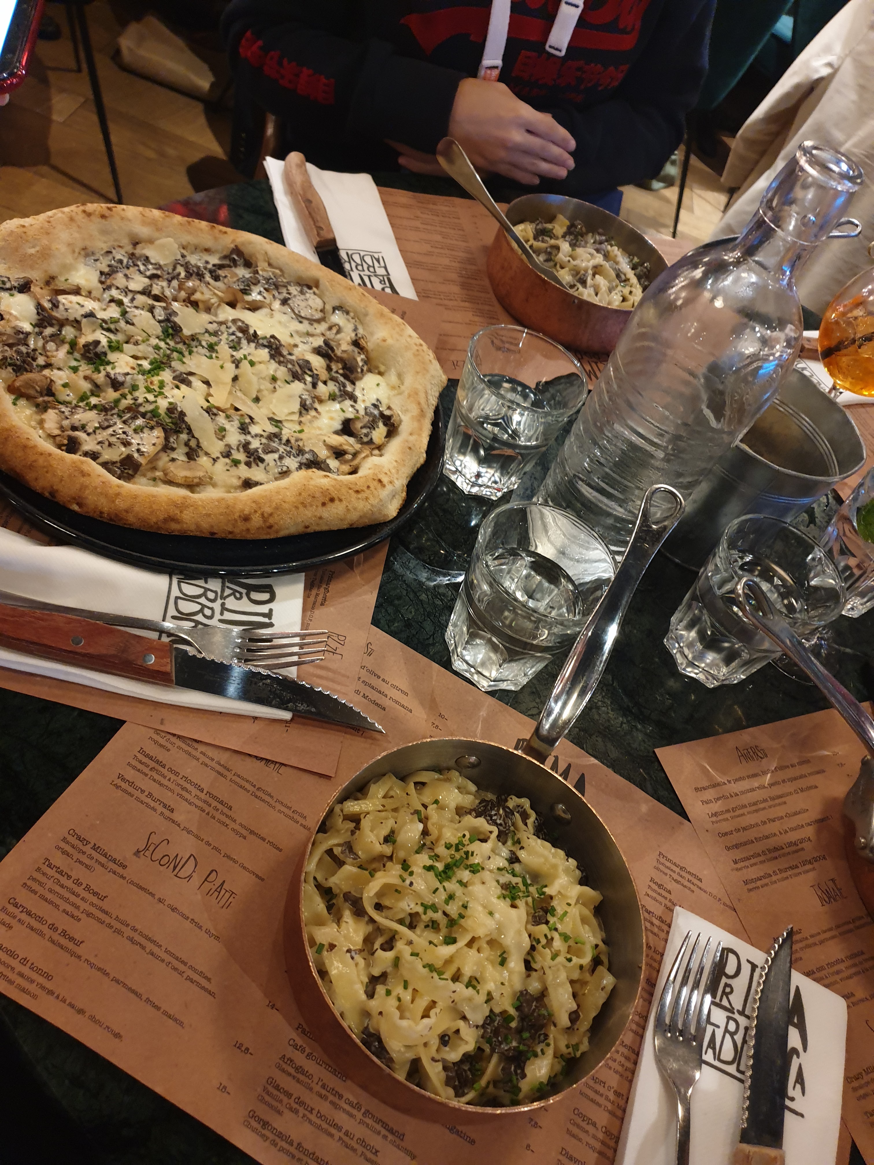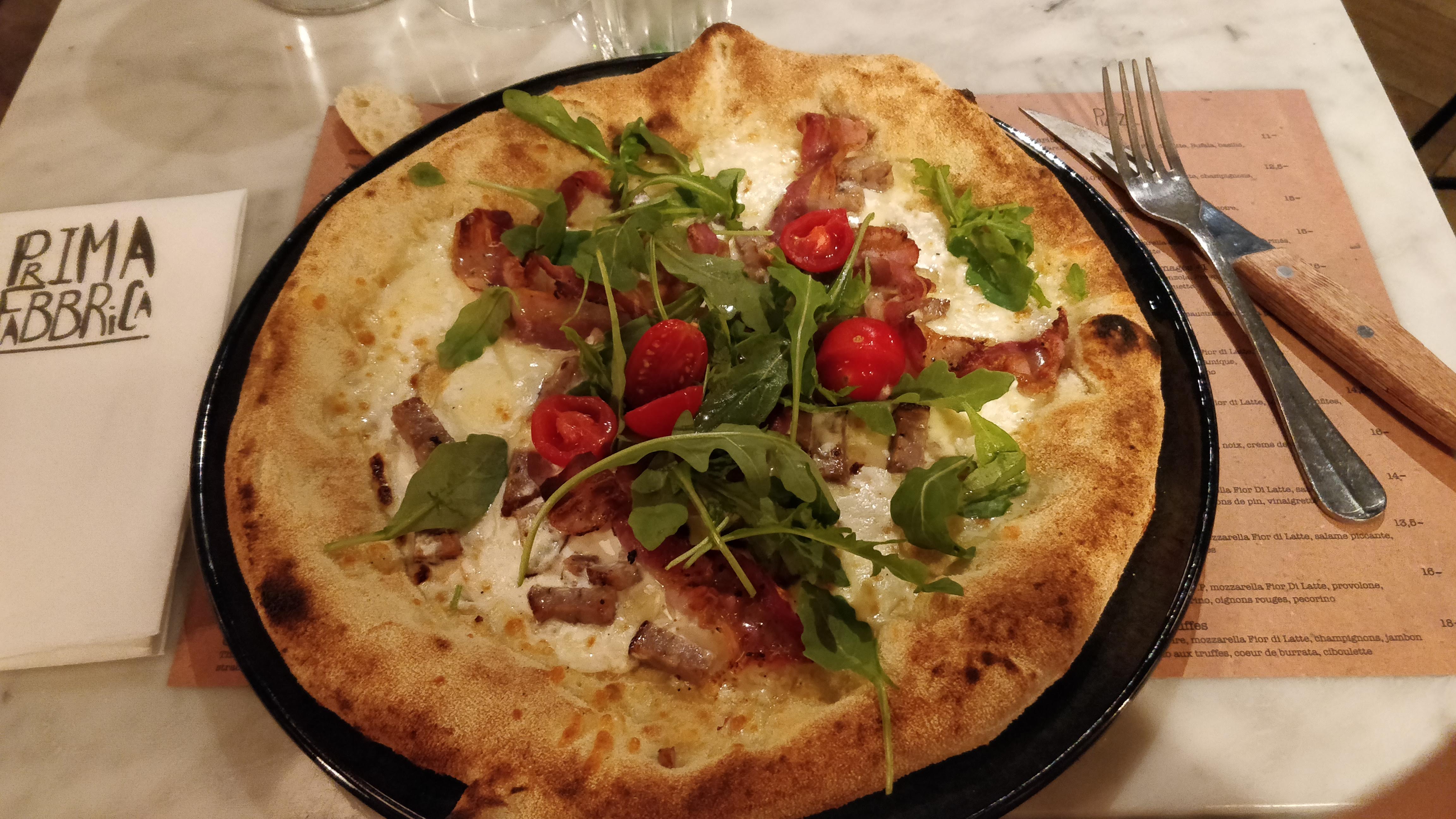 Déjeuner sur le pouce ce midi. Après avoir vu des tonnes de photos et d'éloges sur Instagram je me décide à passer la porte du restaurant. Pâtes à la truffe et verre de vin blanc. Pizza pour madame. Le tout était vraiment délicieux mais il y a vraiment un effort à faire sur le service. Même si la salle est vide, le serveur viendra plusieurs fois en 5min pour savoir si vous avez fait votre choix et reviendra même après à plusieurs reprises demander si tout va bien. Quelques fois c'est bien. Trop c'est un peu trop :-) Mention spéciale si vous êtes installé à l'intérieur à côté du bar. Vous aurez droit aux commentaires des serveurs sur le physique des personnes installées en terrasse et notamment sur les attributs physiques féminins.