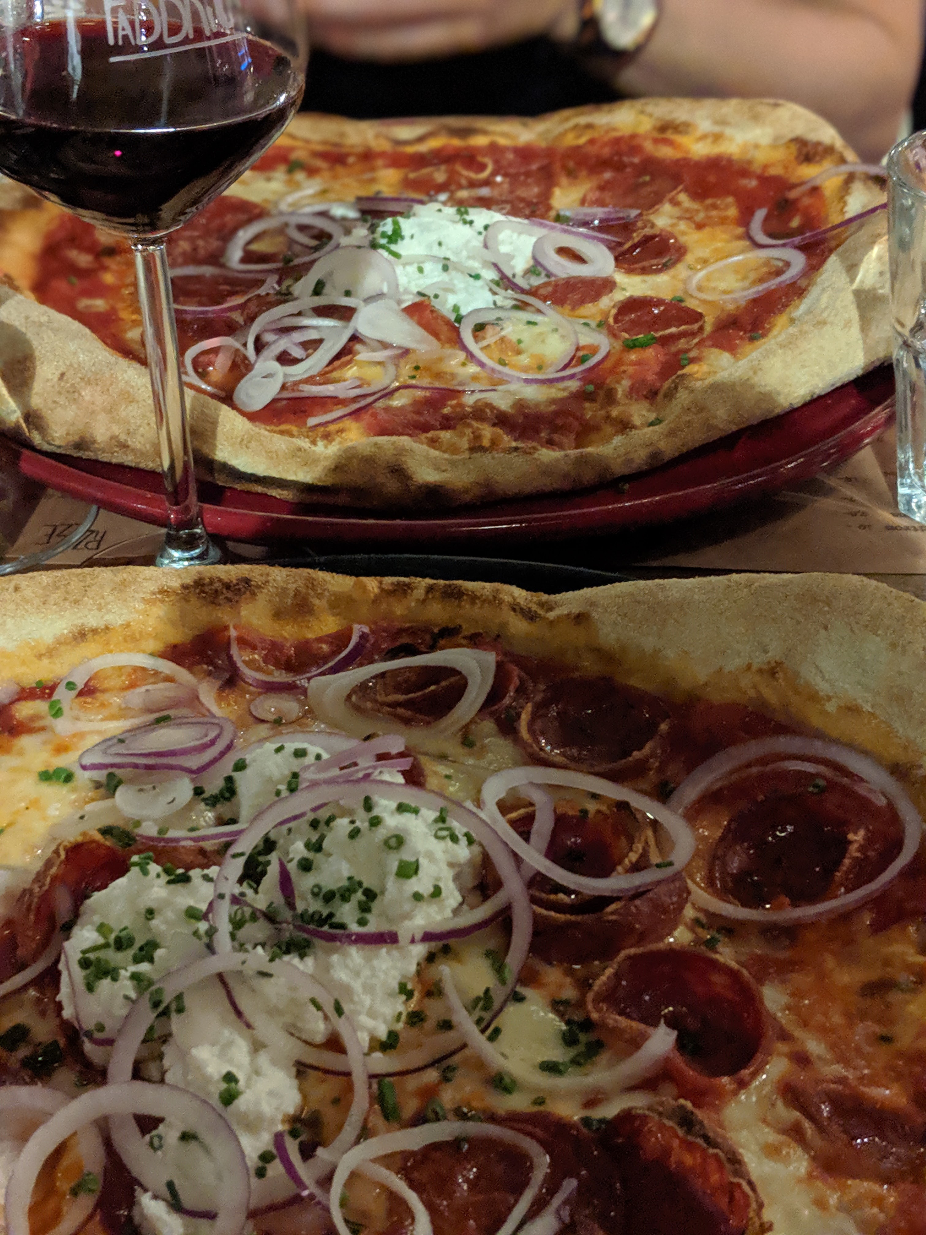 Les pizzas n’étaient pas mauvaises mais sont arrivées tièdes voire presque froides. Plusieurs des serveurs ont été désagréables. Pas mal d’attente entre les plats, avec tout le monde qui vient manger.