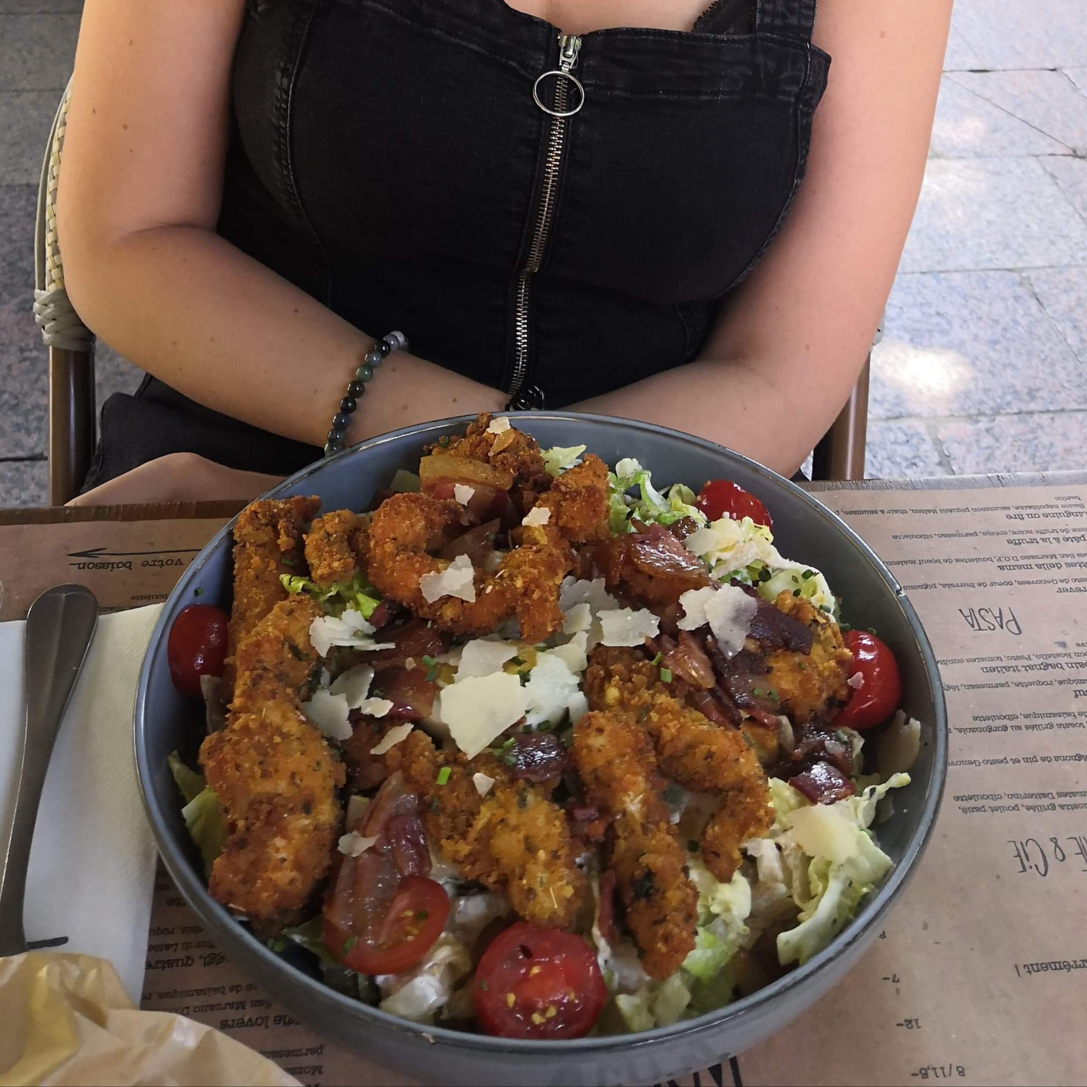 J'ai choisi une salade. Je ne me rappelle plus de son nom barbare. Mais elle était excellente ! Pour une salade, le prix est un peu élevé.