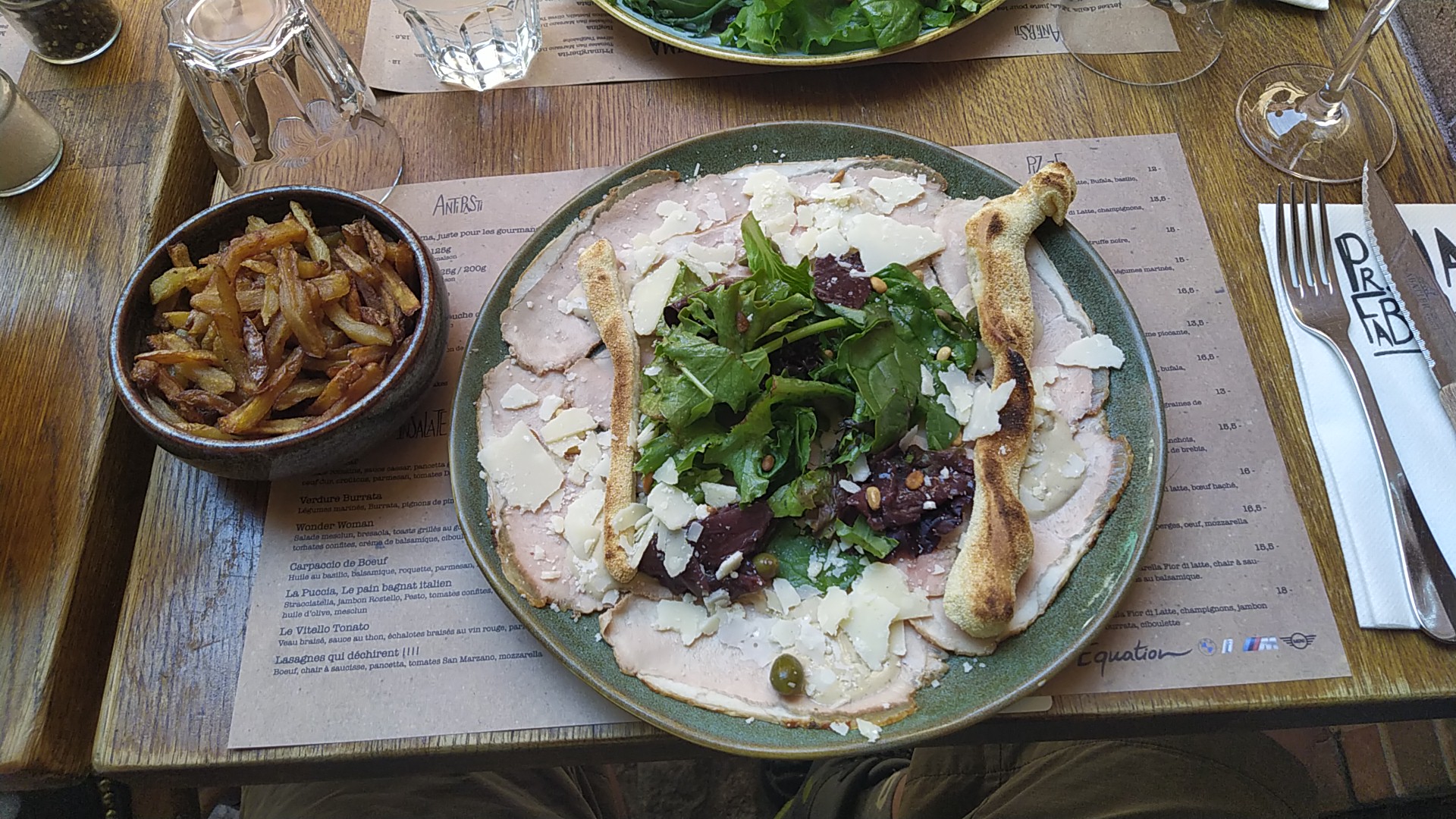 Plus que c'était correct mais moins que ça m'a beaucoup plu! Une burrata excellente,la salade qui l'accompagne aussi. Le tartare de bœuf haché au couteau,de la bonne viande mais un peu fade, l'assainissement n'était pas à la hauteur. Globalement cela reste un bon restaurant où je retournerais avec plaisir goûter d'autres plats.