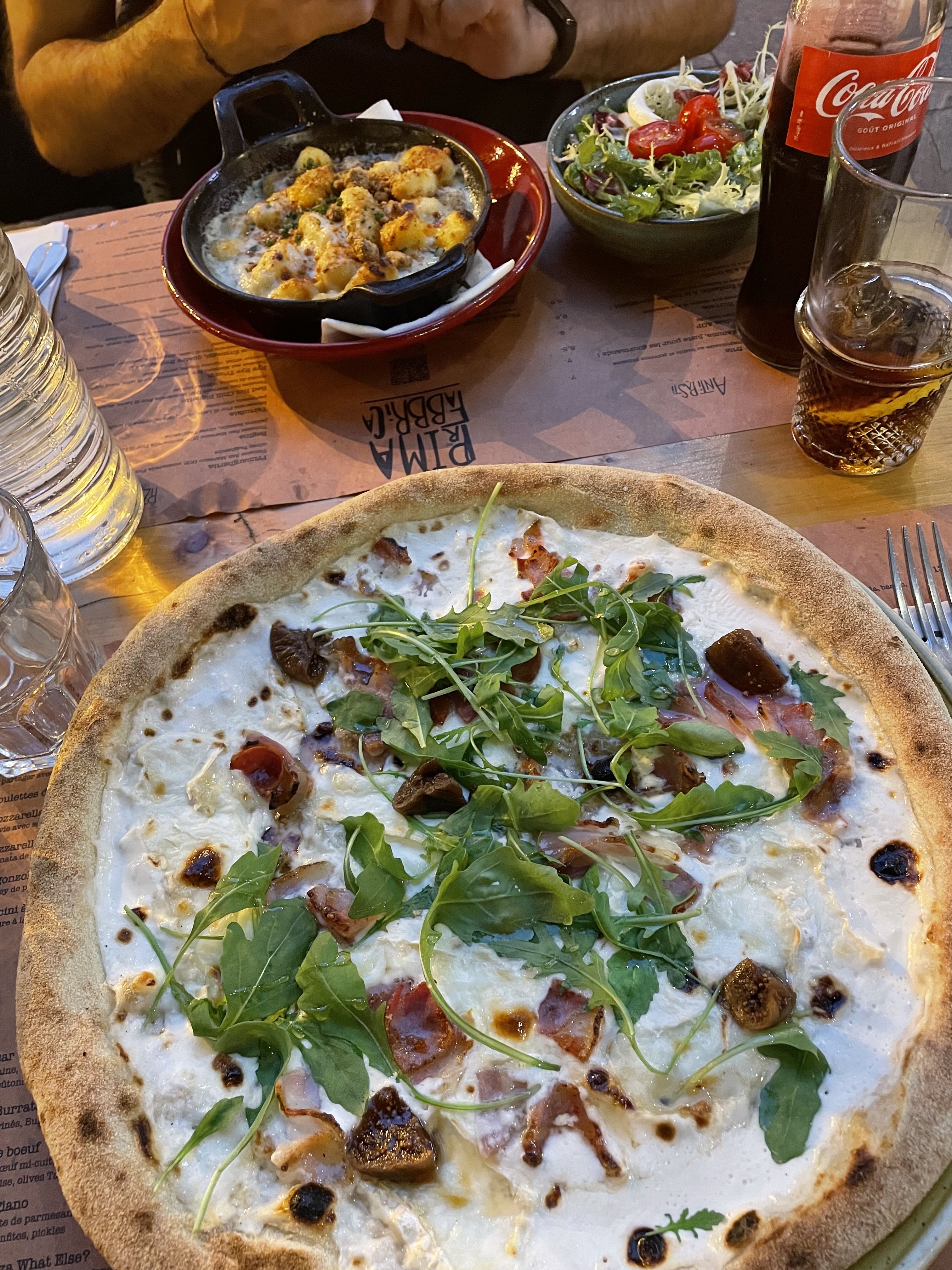 Cher, pizza carbonara imbibée de poivre. Je n’ai pas renvoyé le plat pour ne pas avoir à attendre et manger en même temps que les autres…. Les gnocchis étaient bon d’après ma fille. En résumé bof….