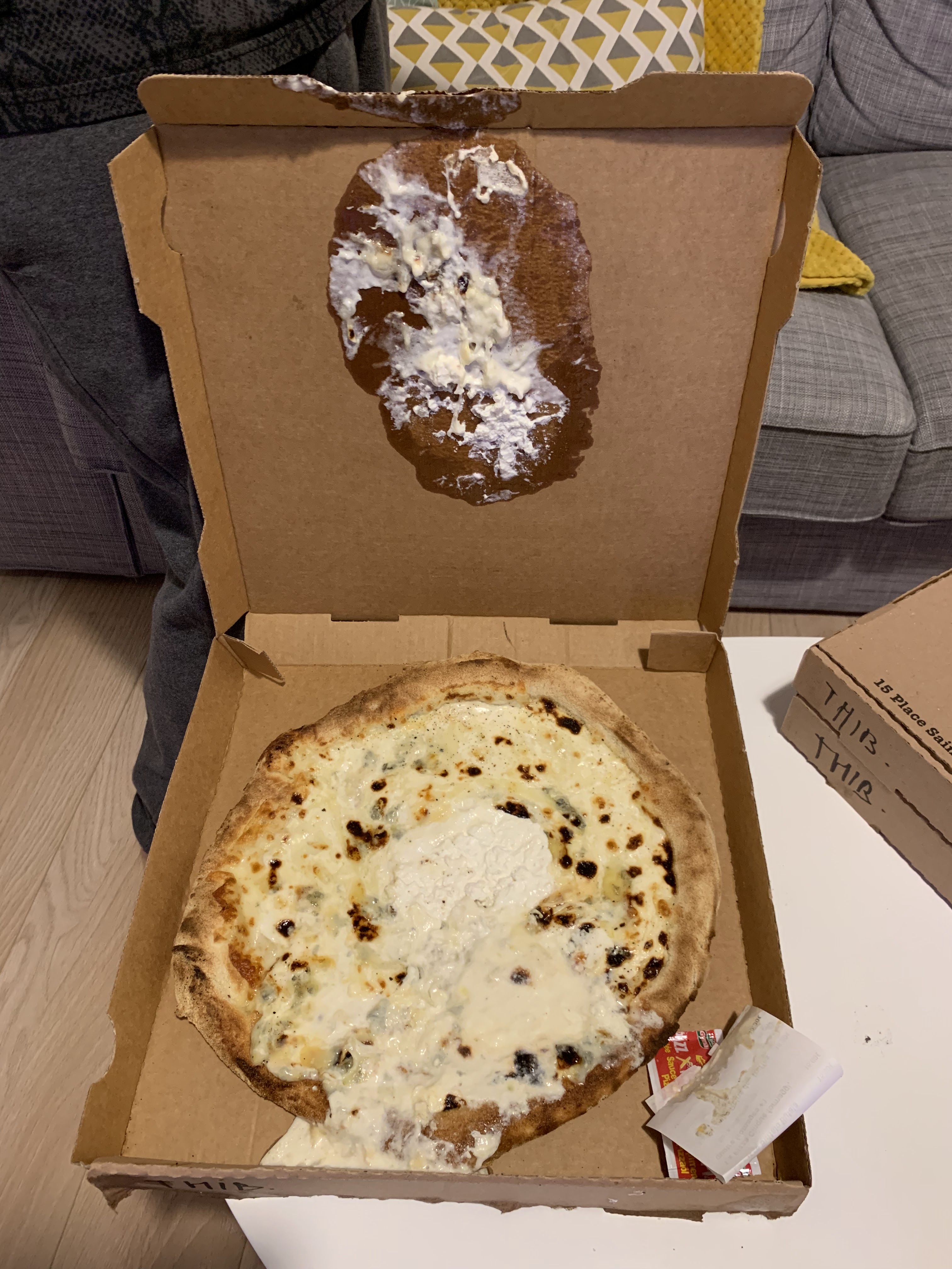 Commande à emporter, les serveurs sont super gentils, serviables et efficaces, et on a été servis en moins de 15 minutes. Les gnocchis étaient incroyables avec tellement de fromage, c’était parfait. Kudos pour le design de la boîte a pizza !