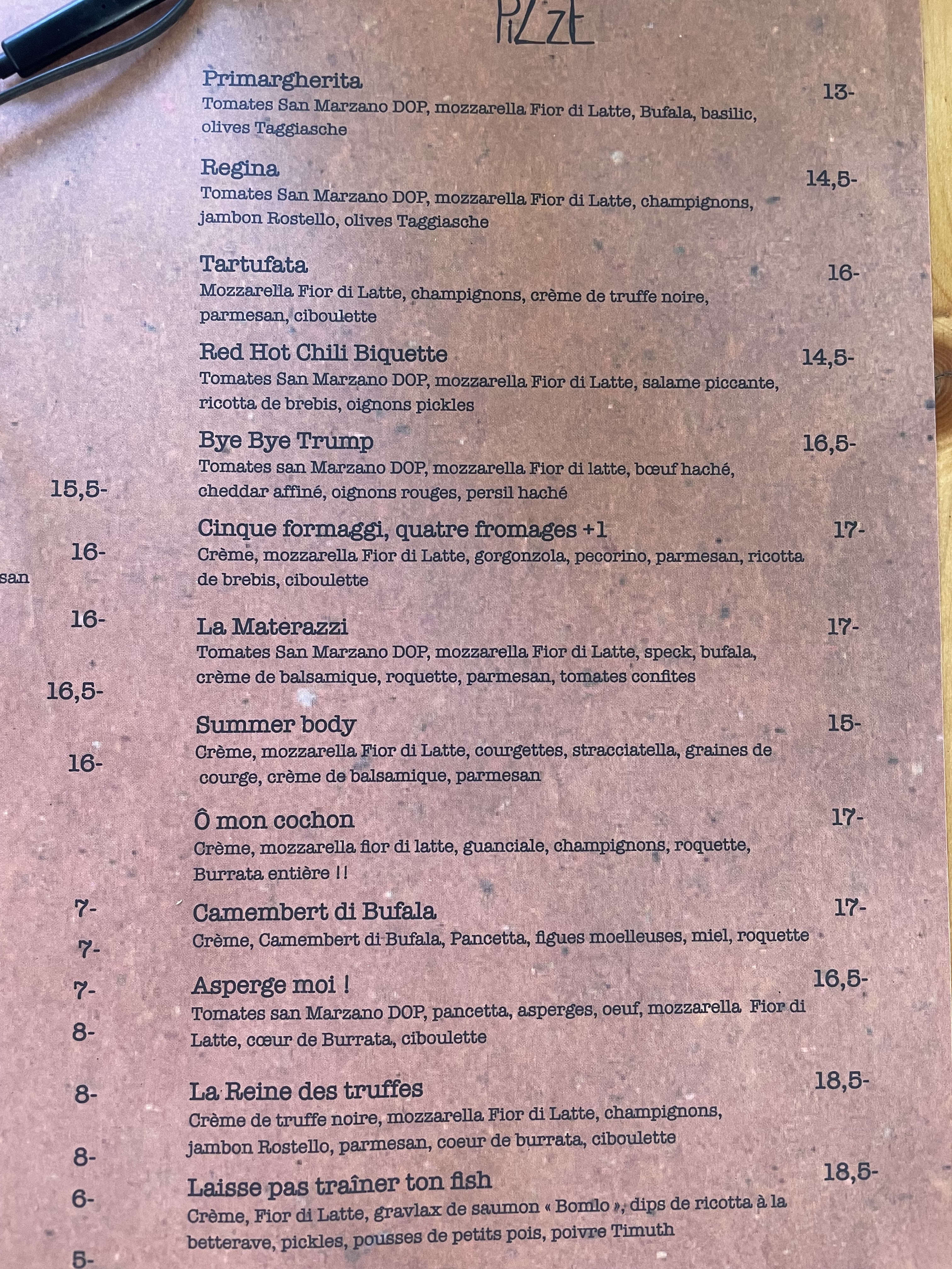 Pizza vraiment succulente, carte plutôt drôle et avec des produits maisons. Personnel très sympathique et efficace, je recommande !