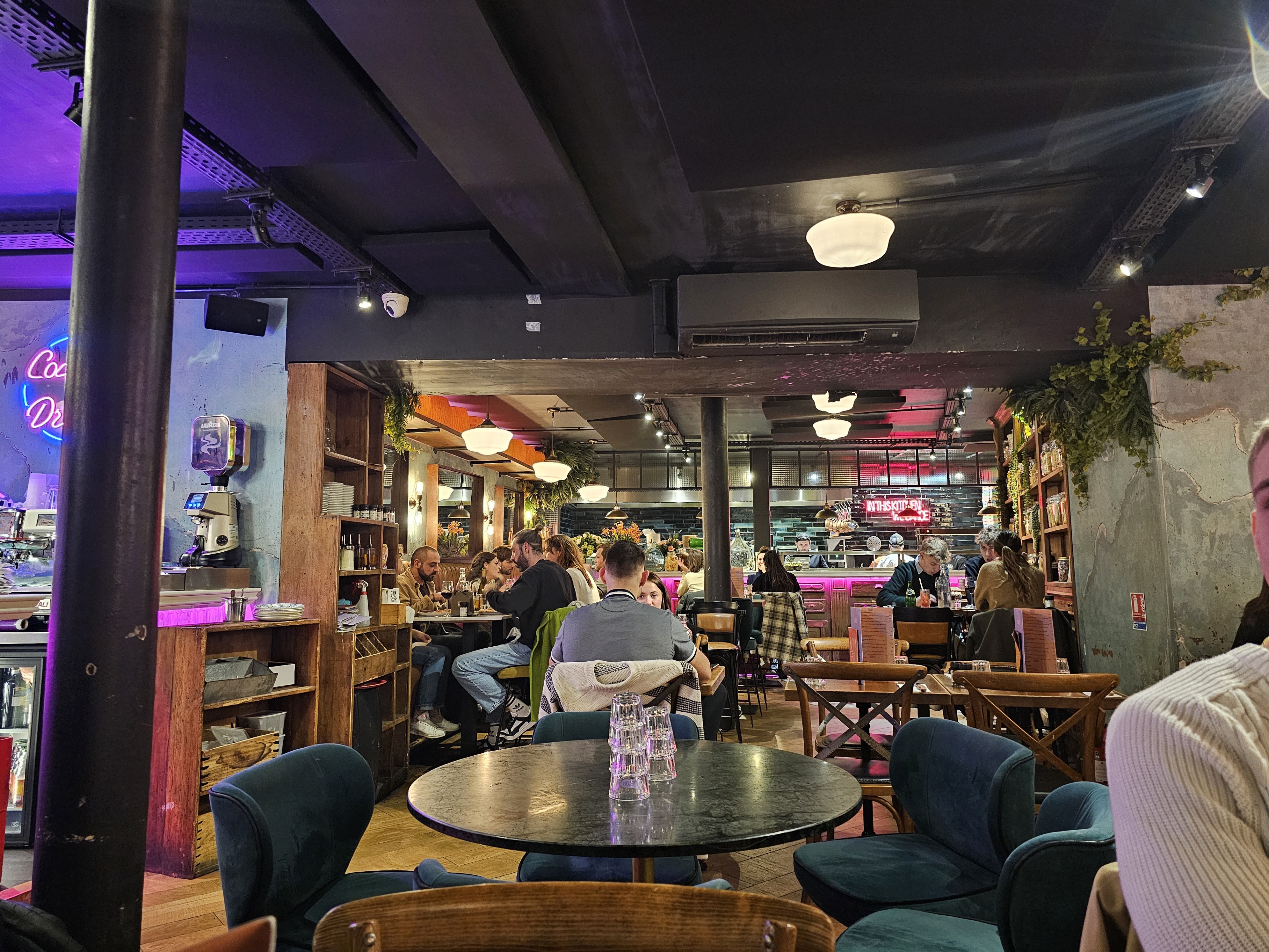 Qui a dit que les bons restaurants devaient être systématiquement dans des endroits huppés avec des serveurs en cols blancs. Pas du tout, cet établissement est à l'opposition de ce concept. Une ambiance et une déco, hyper jeune comme les serveurs également et ça fait du bien. Un service sans problème et bien organisé, des délires dans les noms de certains plats comme les cocktails d'ailleurs. Une cuisine très bonne et variée. Bref, j'y ai passé un bon moment.