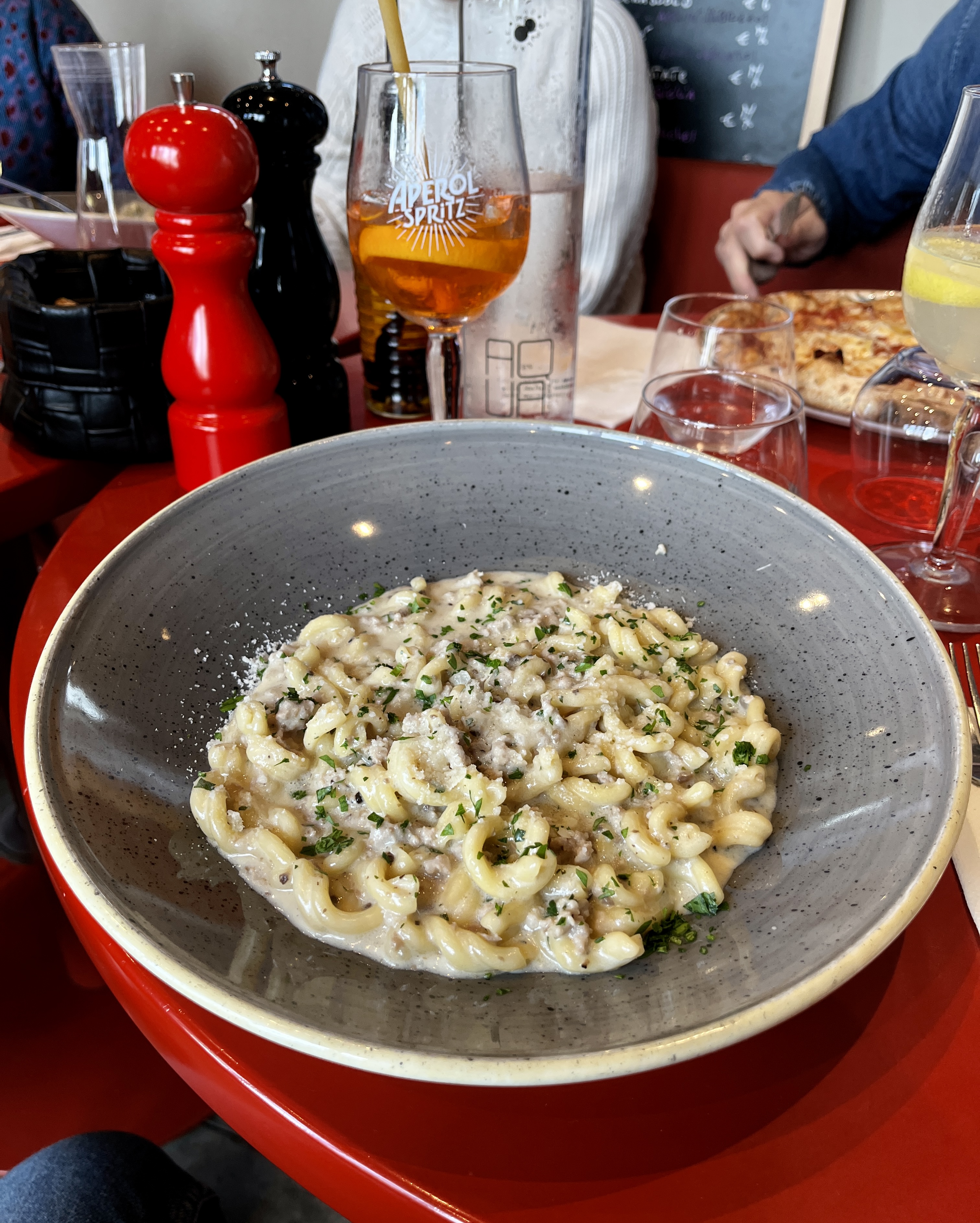 Un peu cher peut-être, mais la qualité de la nourriture était tout simplement exceptionnelle. Nous avons trouvé la base de pizza très légère et digeste. La paille dans les boissons des enfants était faite de pâtes – génial ! :)