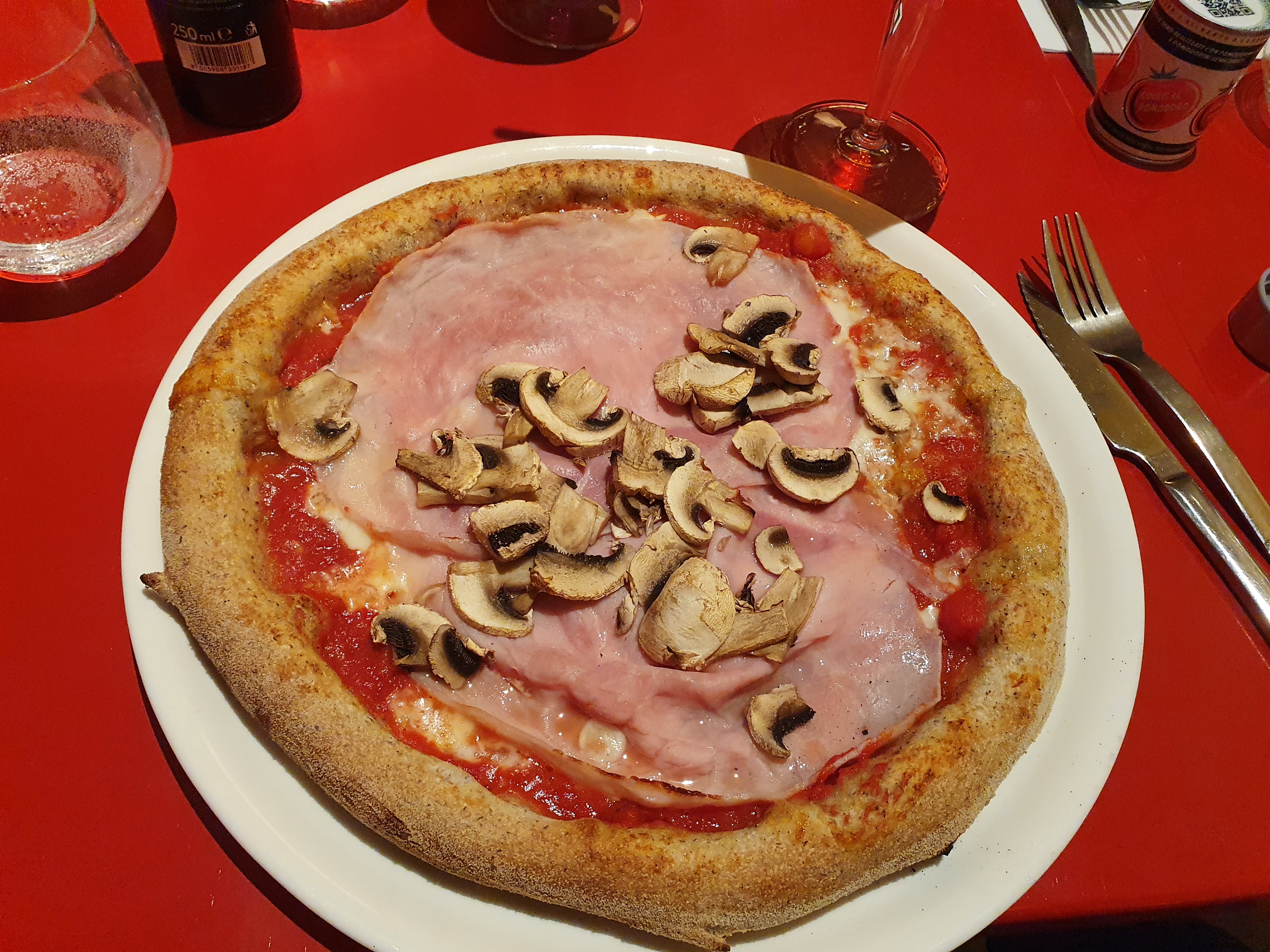 Même pas reçu l apéritif que la pizza est déjà servie !!! Pizza un grand mot pour une petite chose... 2 bouts de jambon 1 champignon coupé en 6 et de la sauce tomate 🍅. Pour 17 € la pizza ils feraient bien de revoir leur carte ou leur prix ! A fuir !
