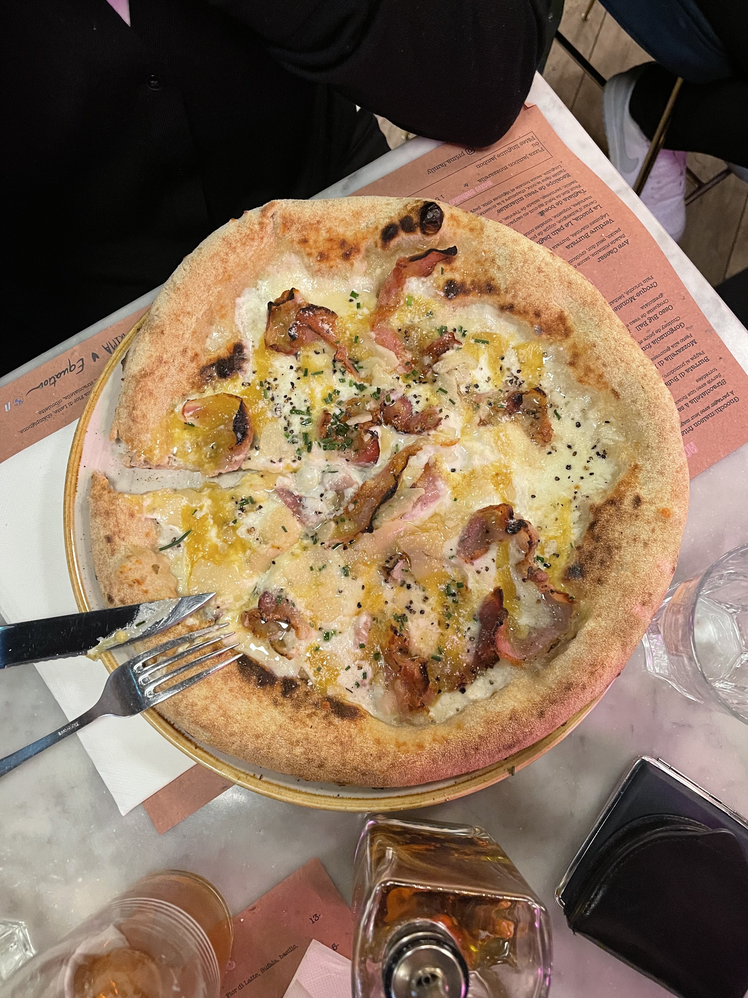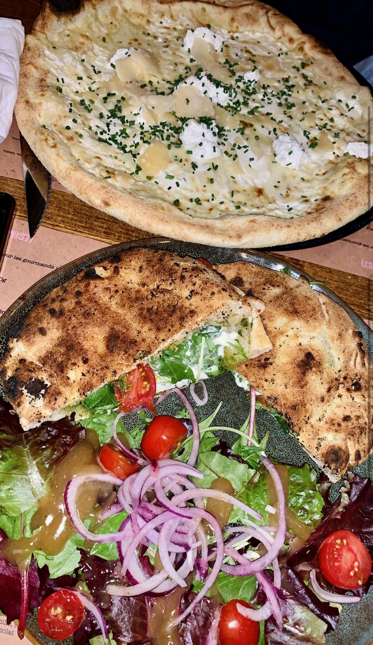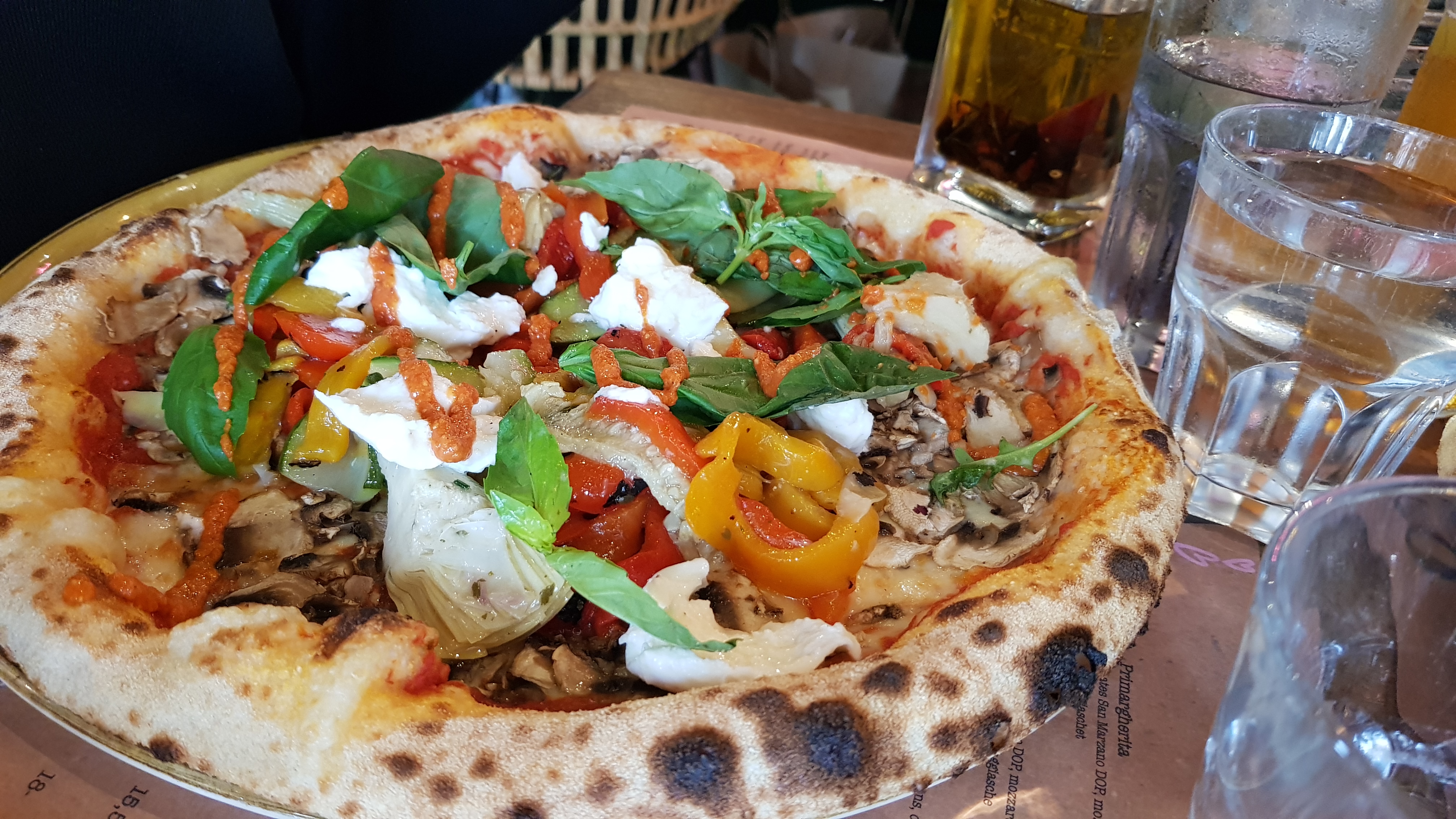La salle est magnifique et arrangée avec beaucoup de goût! Le service est impeccable: souriant et chaleureux. Et les pizzas….. sont trop top! La pâte est très bonne croustillante et moelleuse sur les bords (je pourrais manger juste des patins de pâtes cuites!!) et les recettes sont vraiment bonnes avec un peu d’originalité! Les produits sur les pizzas sont également très bons!