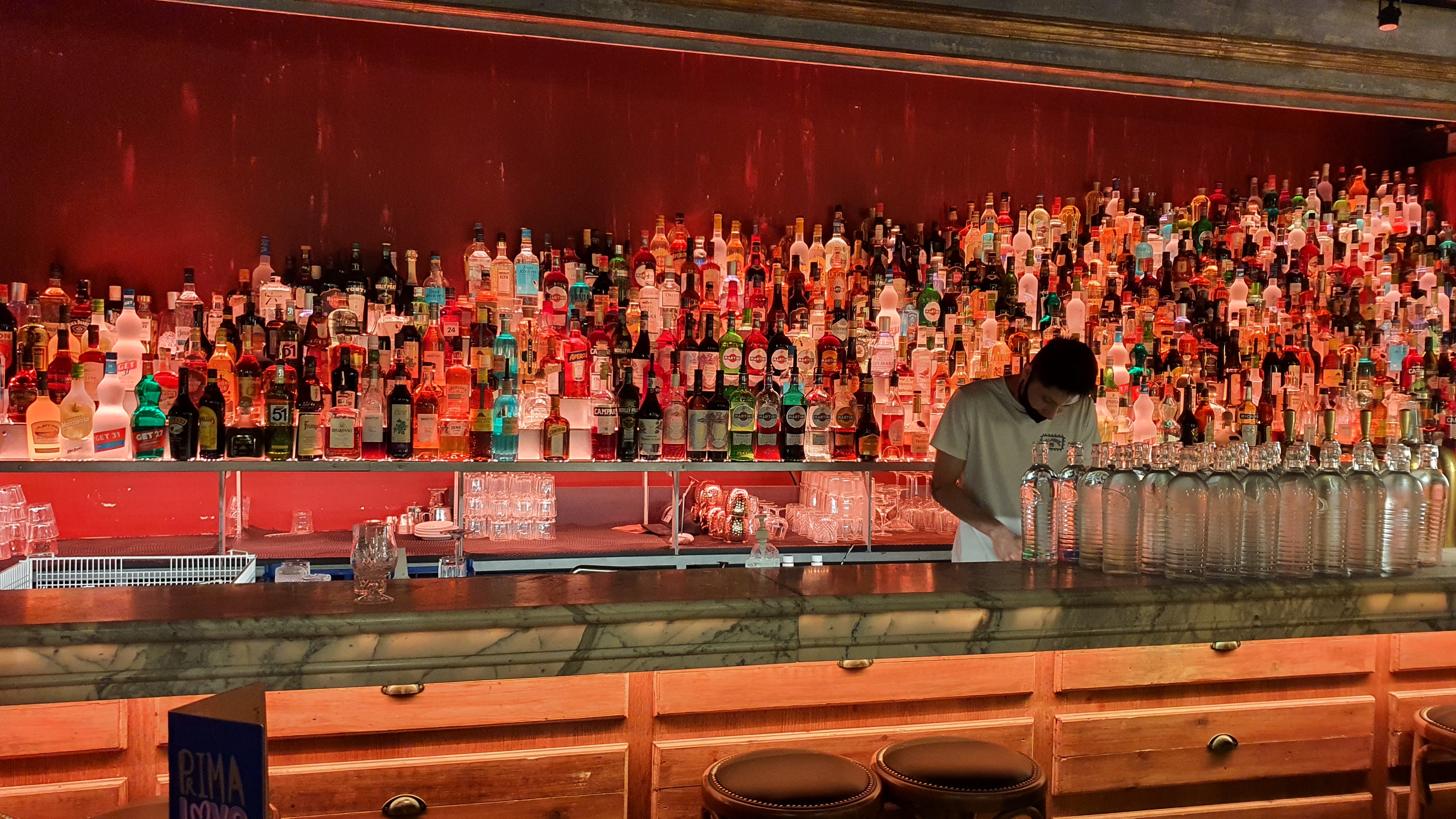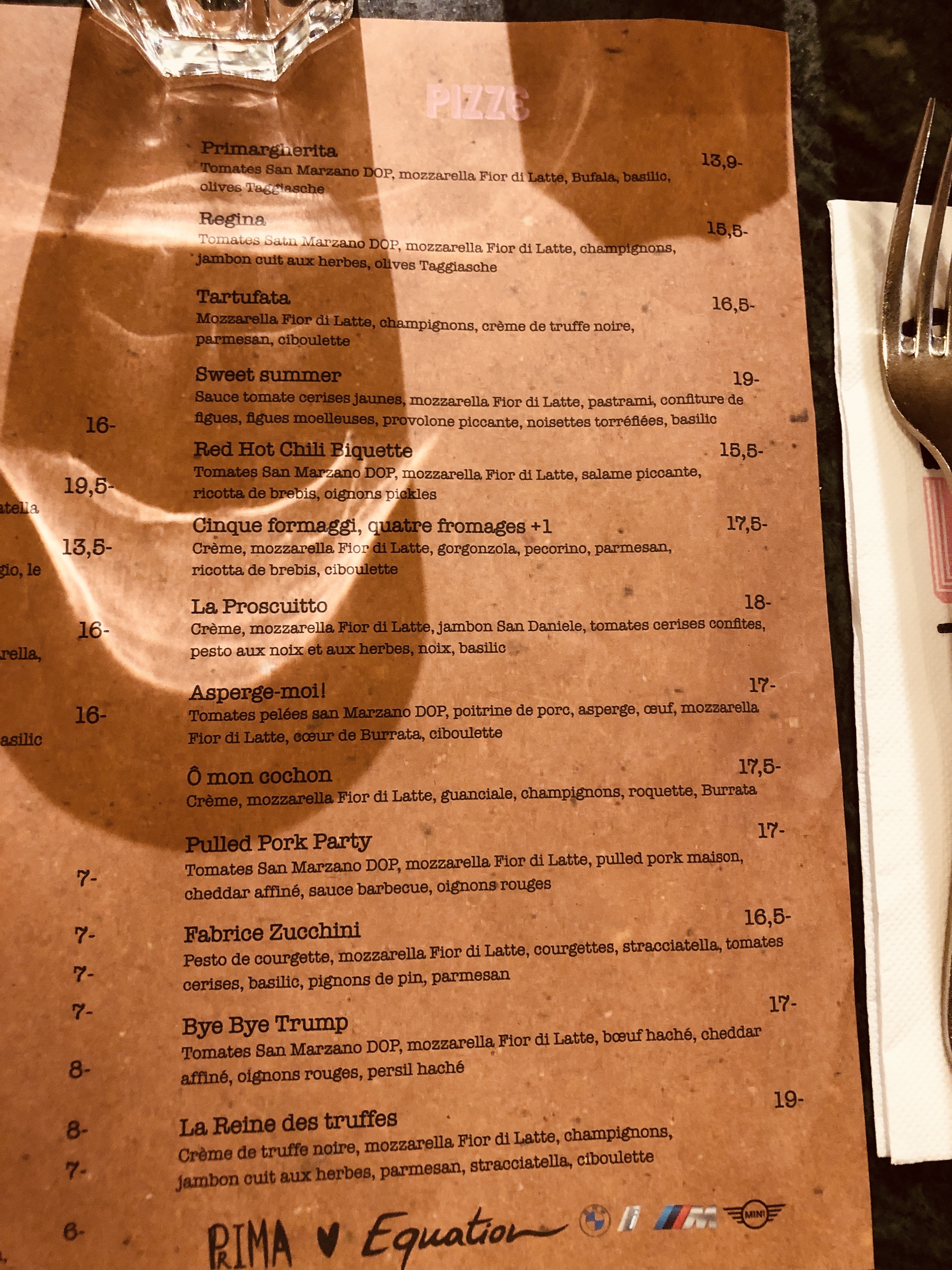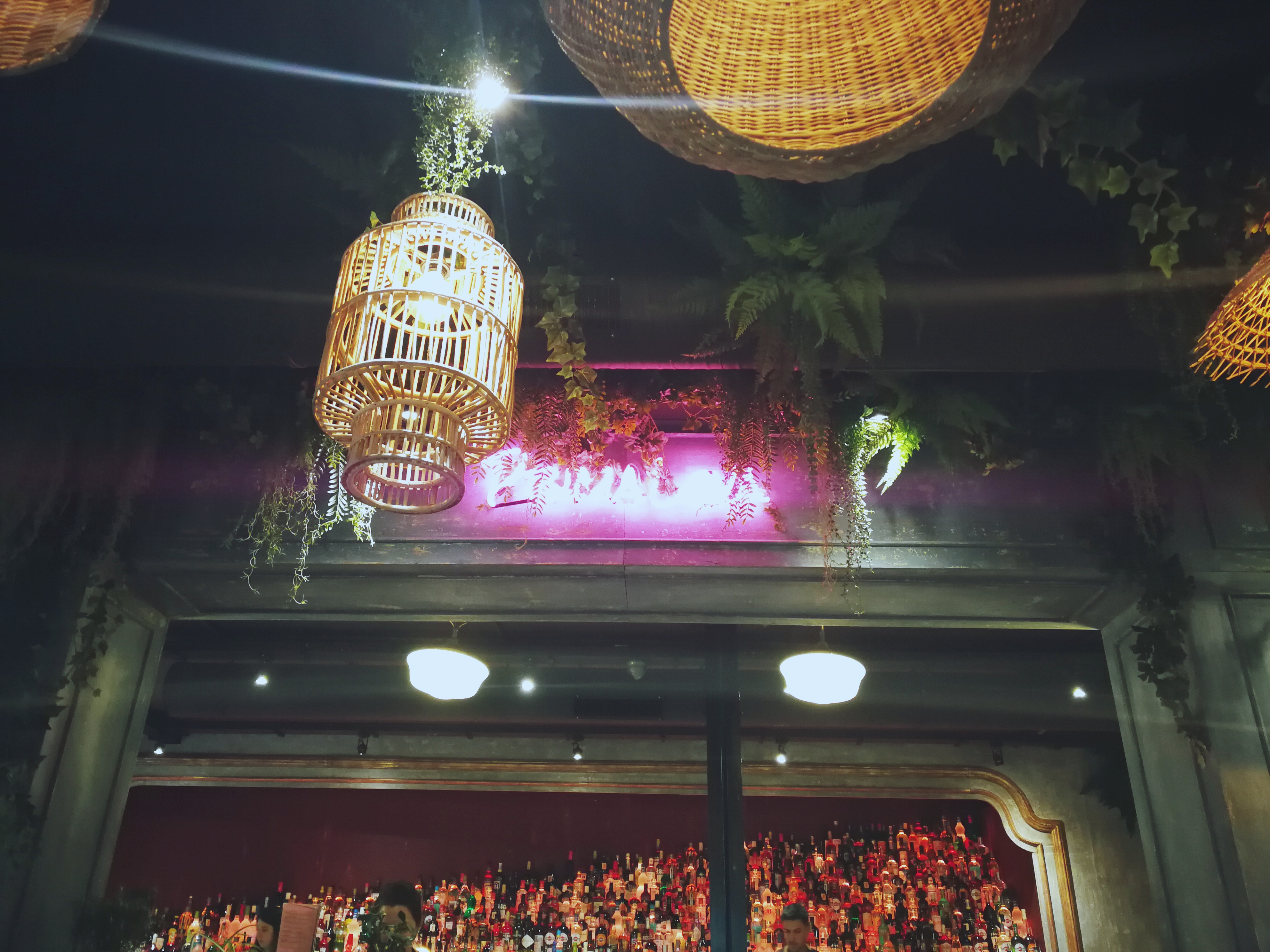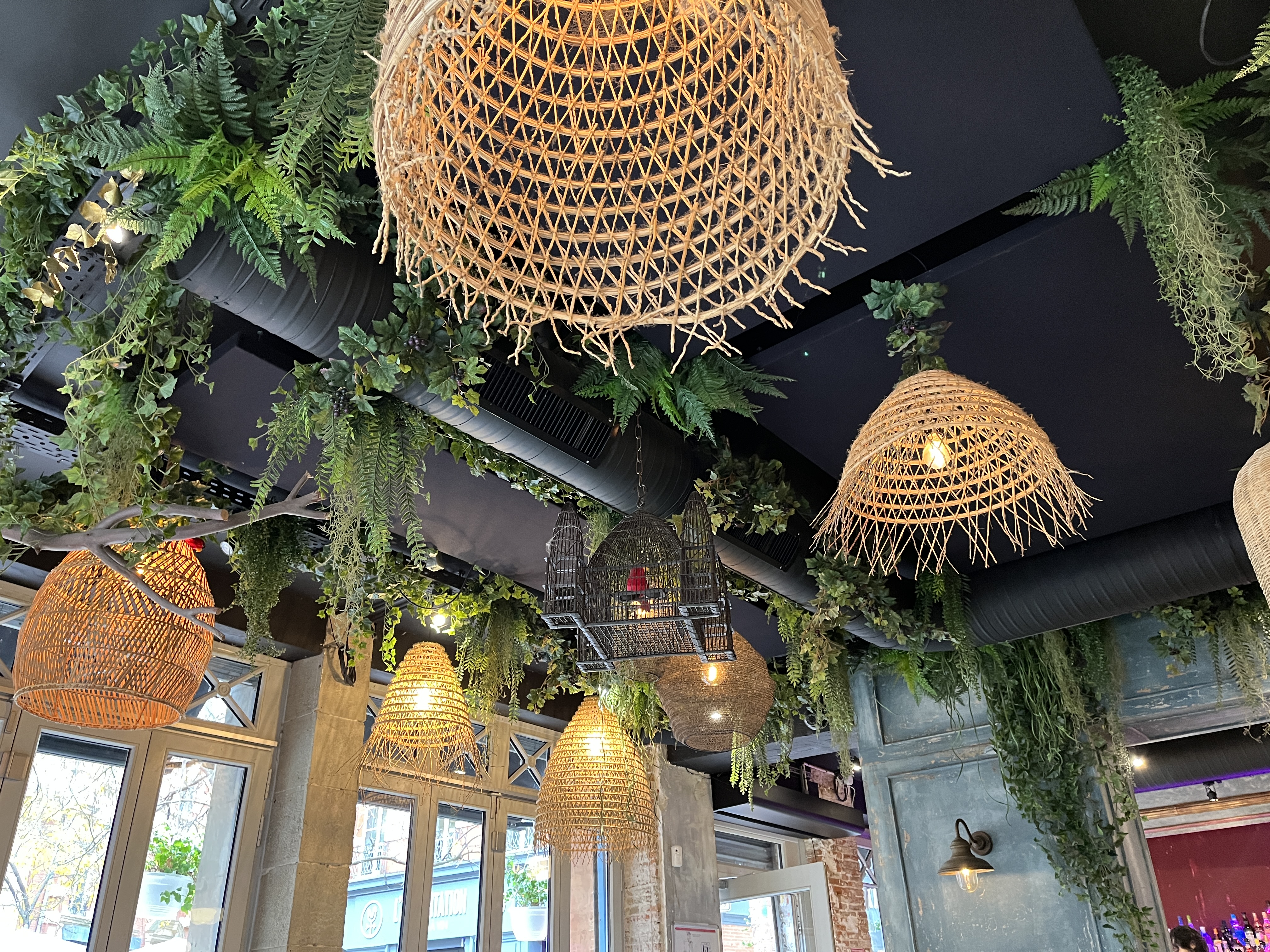 Super cadre pour ce restaurant avec un escalier de bouteilles éclairées et un plafond végétal suspendu. Par contre il ne prend pas les réservations, alors il faut arriver tôt si possible. On peut attendre au bar si besoin. Les pizzas sont en moyenne à 15€.