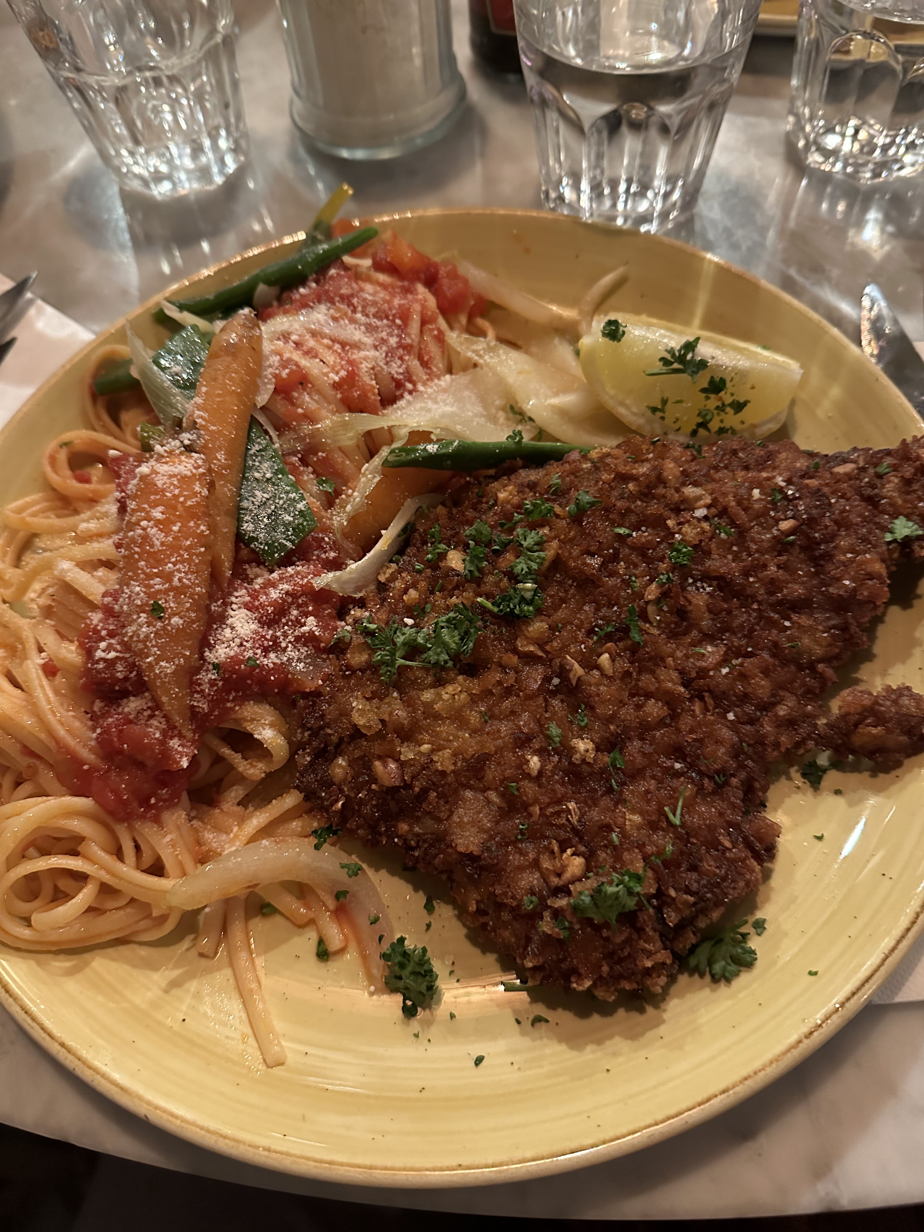 Cadre agréable, sauce au vrai goût de tomates. Personnel sympathique et efficace. Une adresse à retenir!
