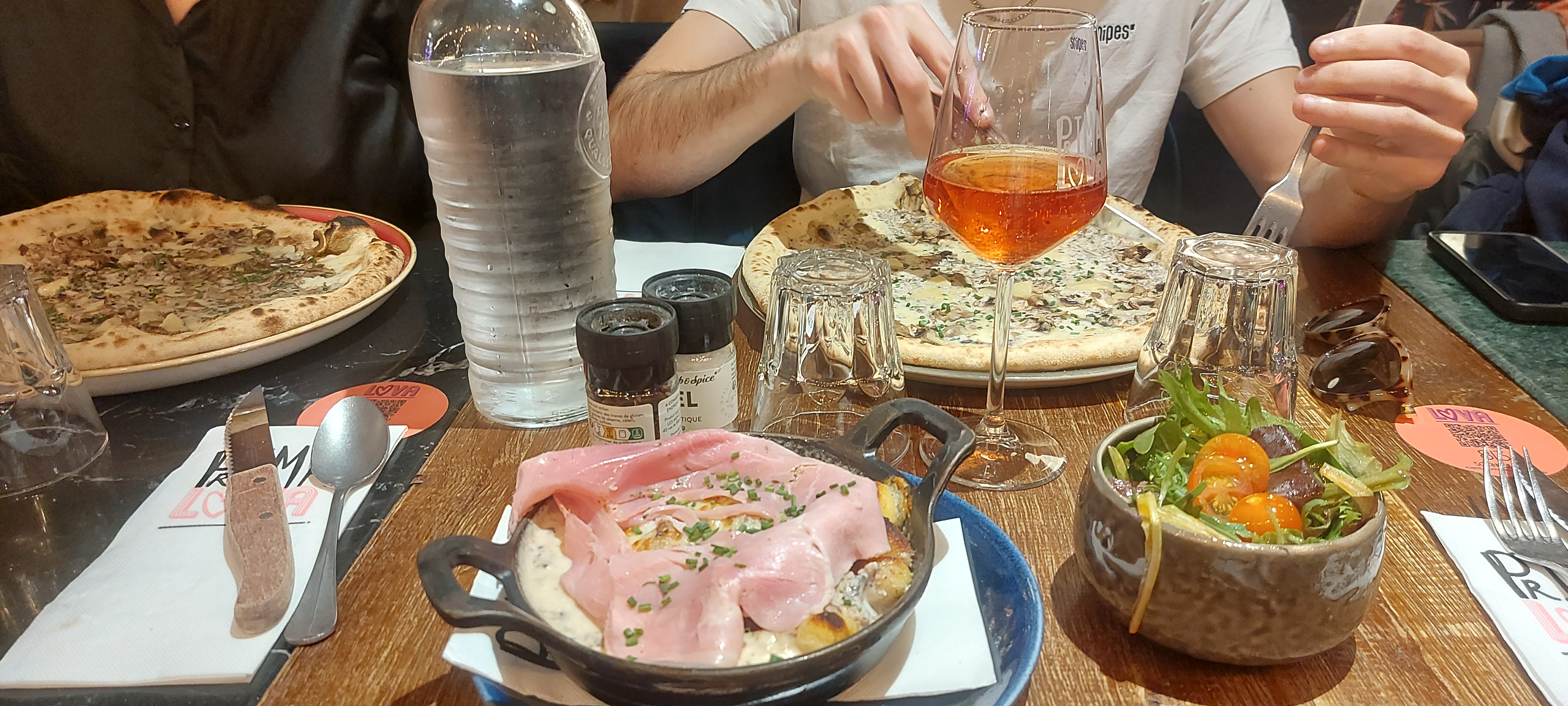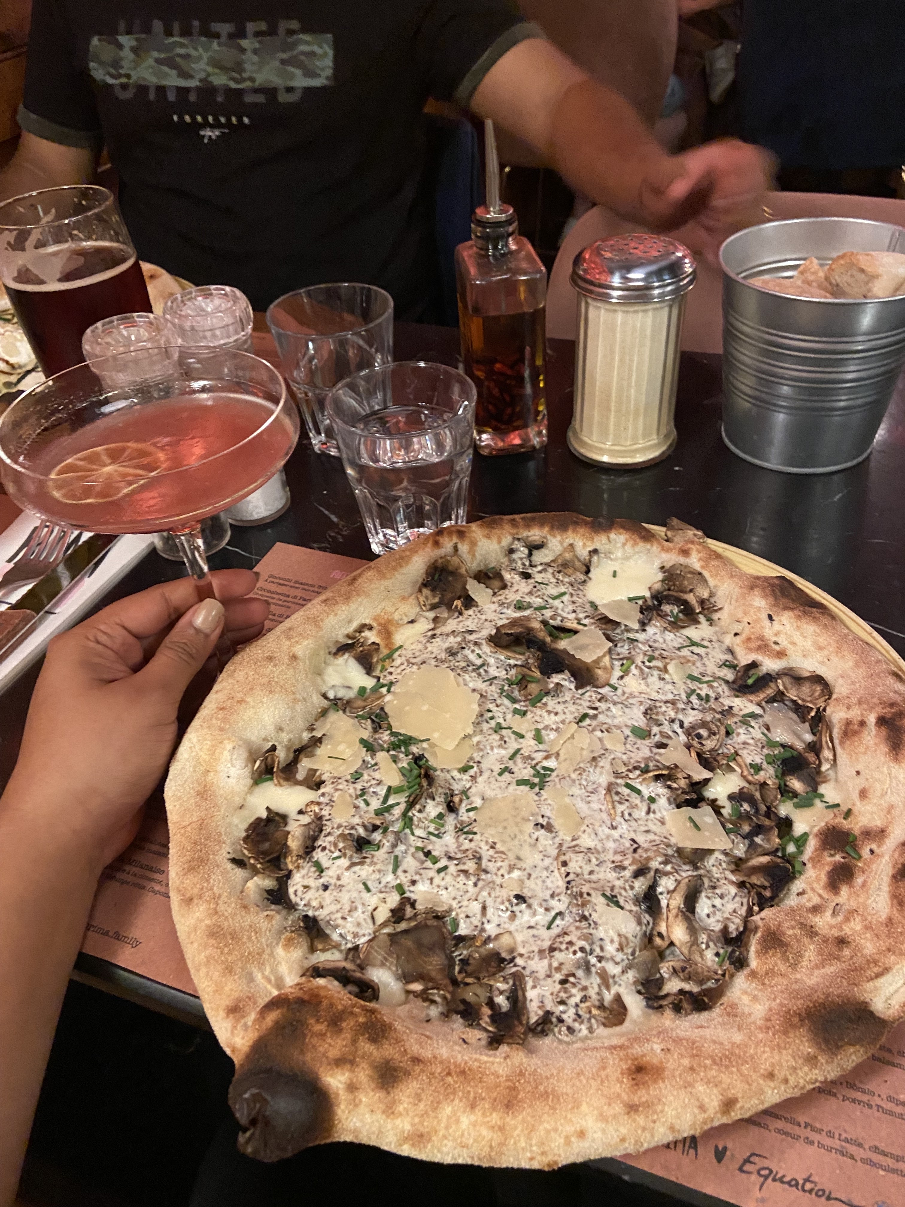 Pizzas bonnes mais sans être transcendantes. Bons cocktails. Service aléatoire selon les interlocuteurs... Venant d'une ville plus petite, je trouve les prix trop élevés pour la qualité. On paie aussi le très beau cadre et le côté branché du lieu.
