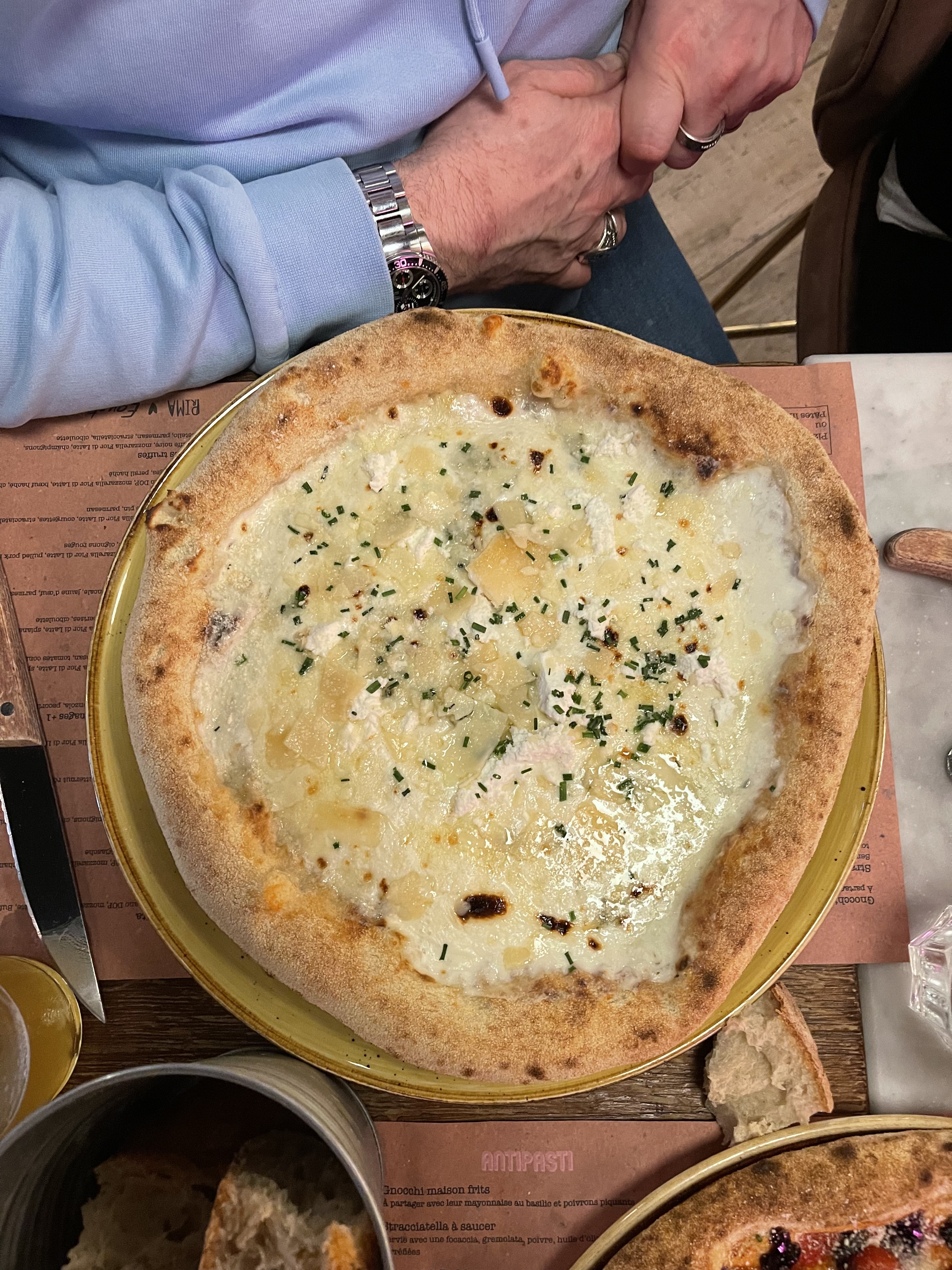 La Mozza et burrata en entrée sont excellentes ! La pâte à pizza est très bonne, les bords bien gonflés et le reste pâte fine. Un peu déçu de la texture des gnocchis et du service.