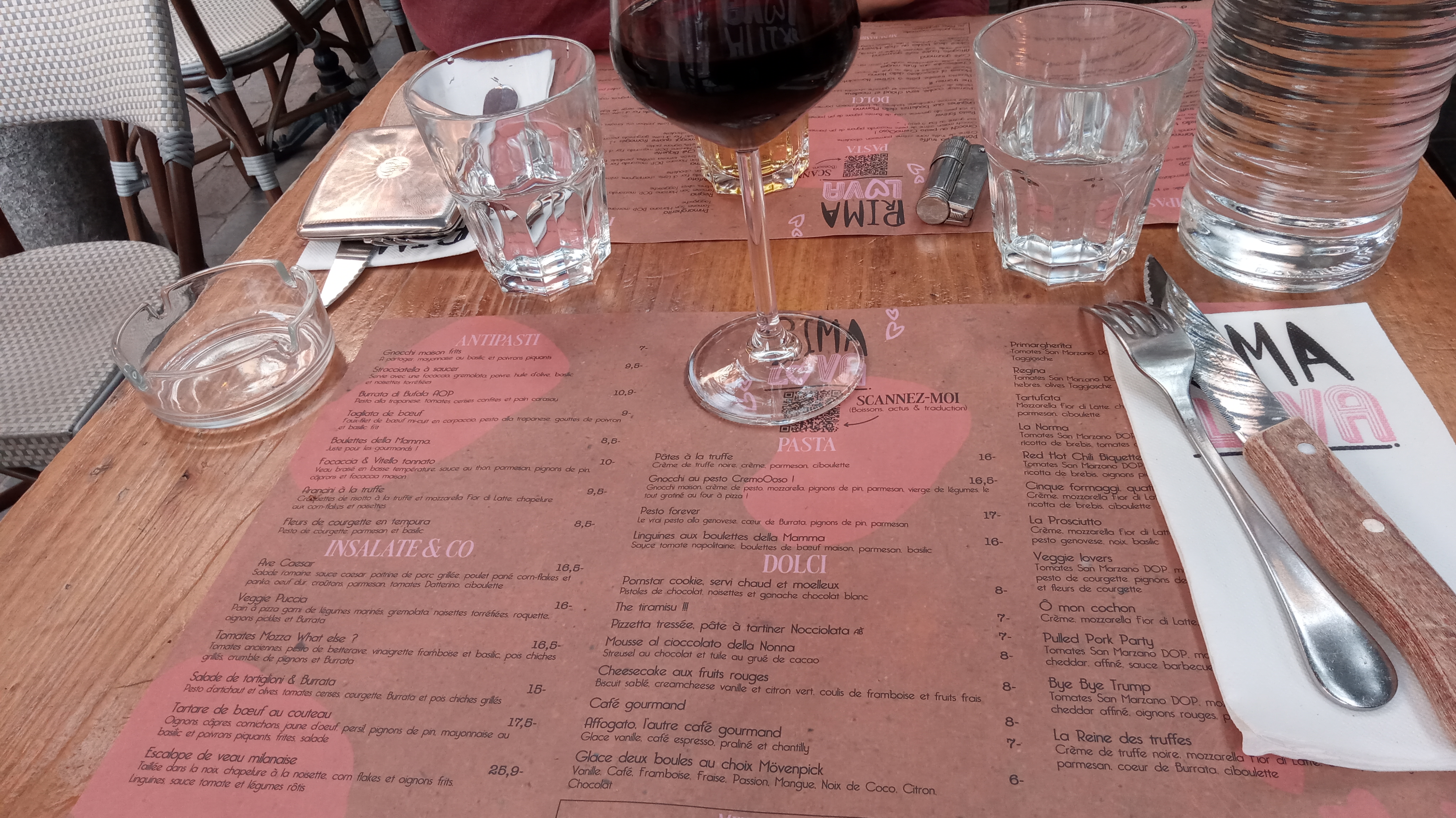 Nous avons déjeuné au prima lova il y a quelques semaines : nourriture tout à fait acceptable (bien que très lourde) et carte intéressante, déco simpa, MAIS service déplorable.. notre serveuse était d’une nonchalance à toute épreuve. Alors que le restau était presque vide, nous avons attendu >15min pour donner notre commande, j’ai reçu mon accompagnement 10min après mon plat - petit « oui, ça arrive » agacé, comme si c’était normal, quand je lui ai demandé où ça en était-, nous n’avons jamais reçu l’eau demandée plusieurs fois etc. Arrivé le moment de l’addition, nous sommes donc pressées et la serveuse ne nous l’amenait jamais, malgré nos demandes. Je me lève donc pour demander à un autre serveur, qui me répond (nonchalamment aussi) que seulement elle peut nous la donner, je pars donc la trouver dans le fond du restau, entrain de discuter avec ses collègues, et elle me répond comme si j’aurais du le deviner que l’addition se fait avec un qr code sur la table. L’addition sur le qr code était la mauvaise , 17euros au lieu de mes 80 euros pour 2, j’ai donc du signaler l’erreur et attendre qu’elle daigne s’en occuper avant de partir sans même un merci ou au moins une excuse de sa part… le management devrait investir du temps pour former ses équipes sur l’accueil client..