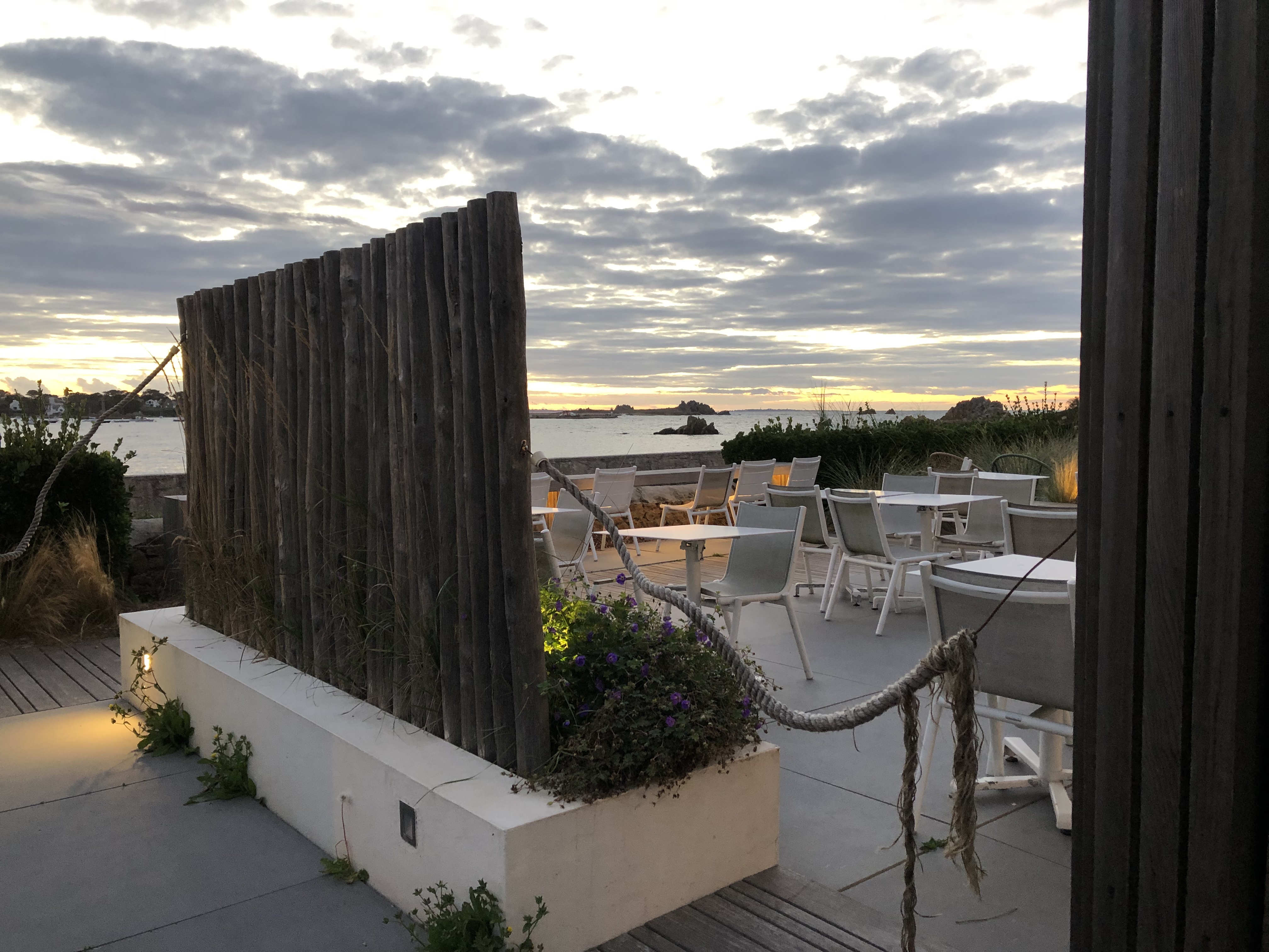Cadre au top sur la pointe de primel, terrasse agréable en bois , je recommande, pas testé la partie restaurant.