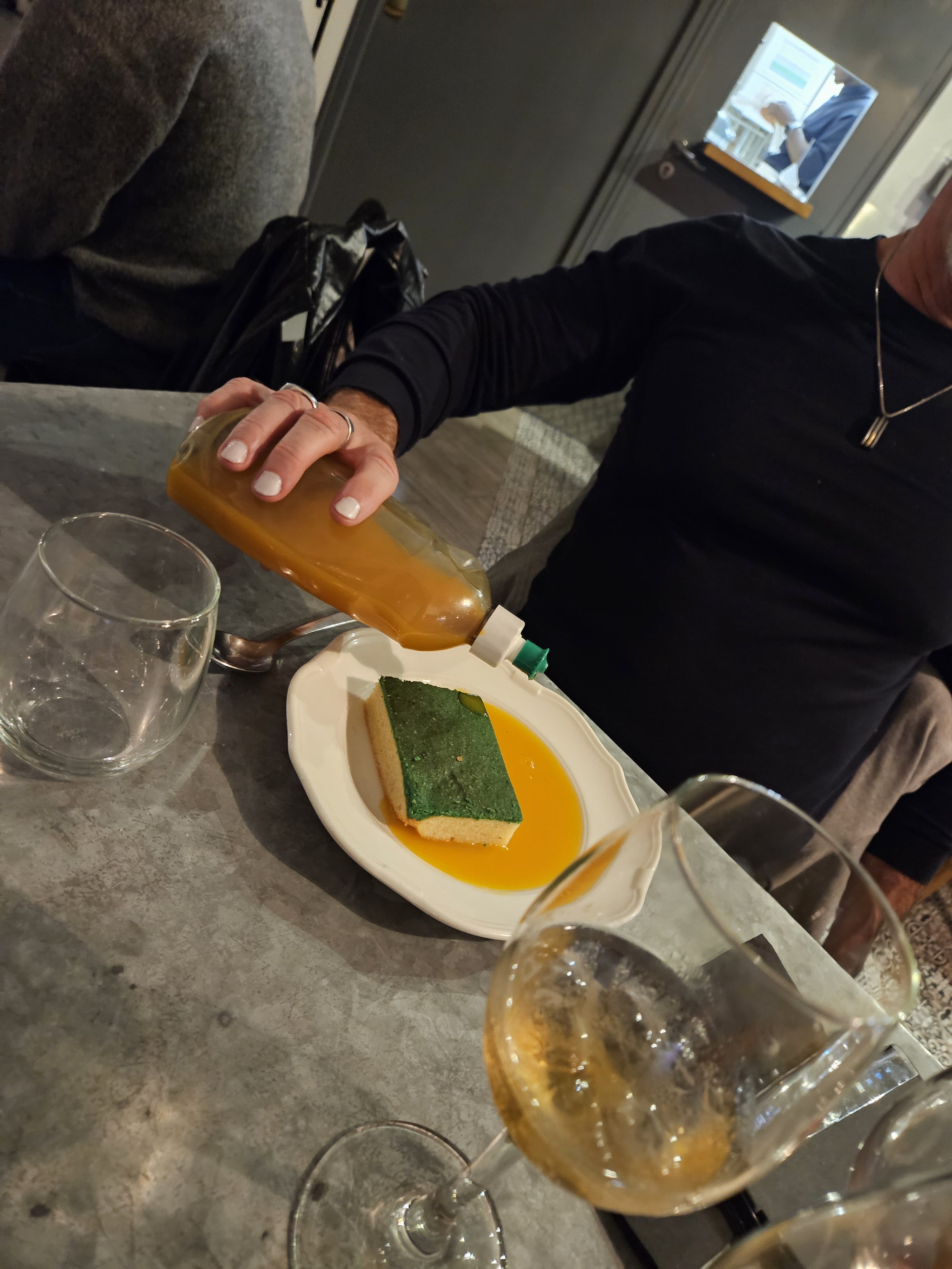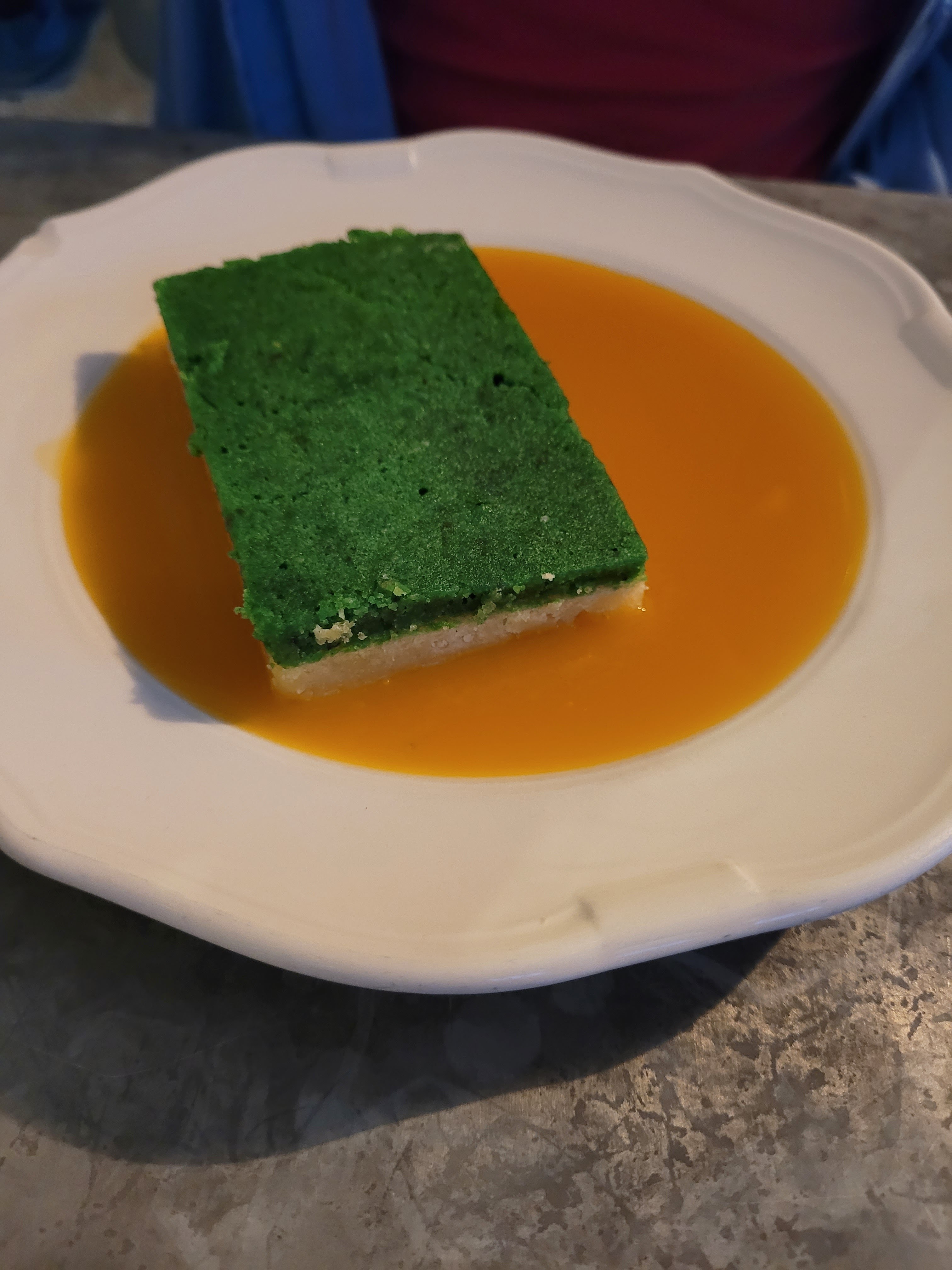 Super expérience de la nourriture en trompe l'œil. Repas bon et le dessert éponge a fait son effet .