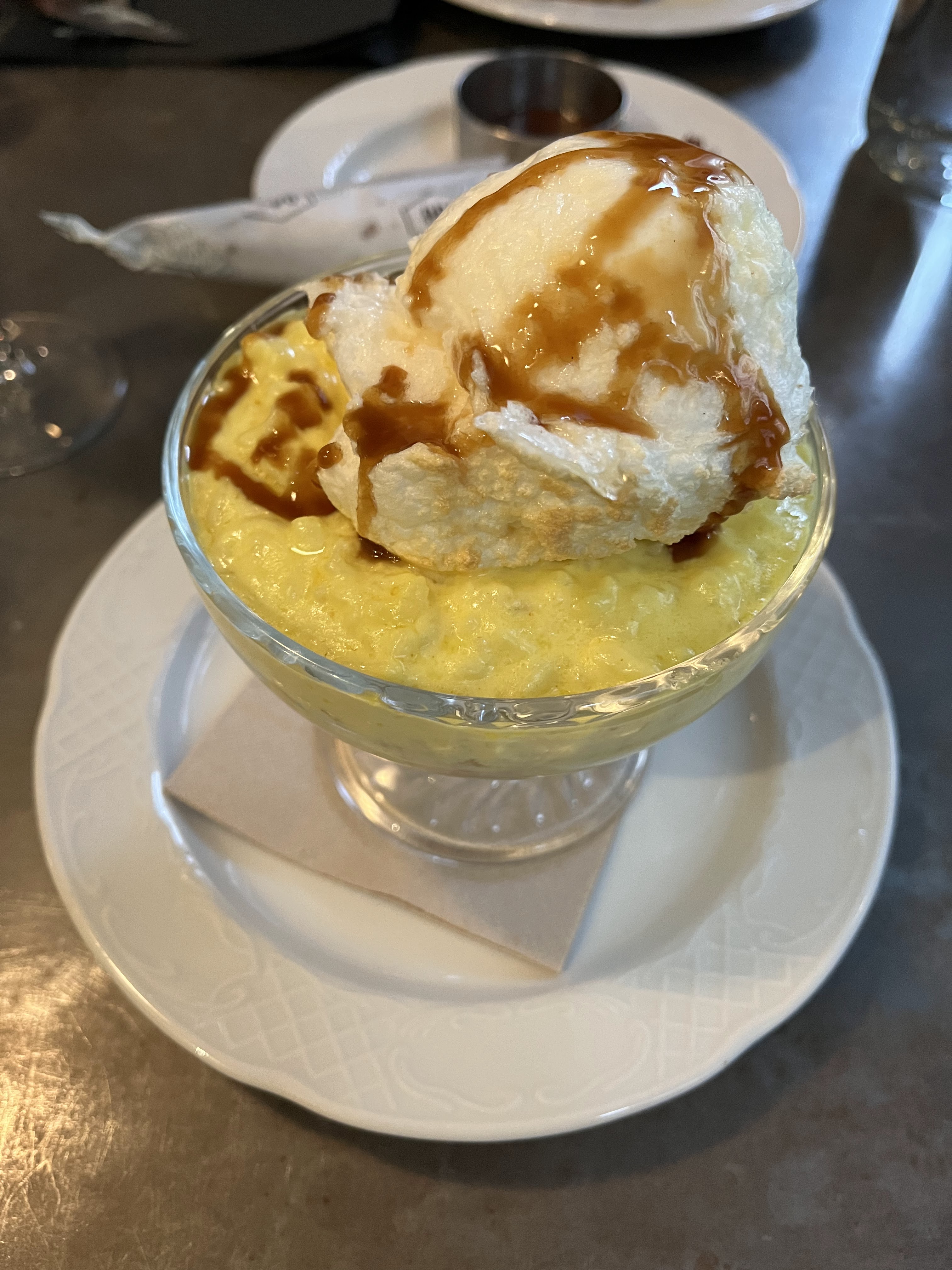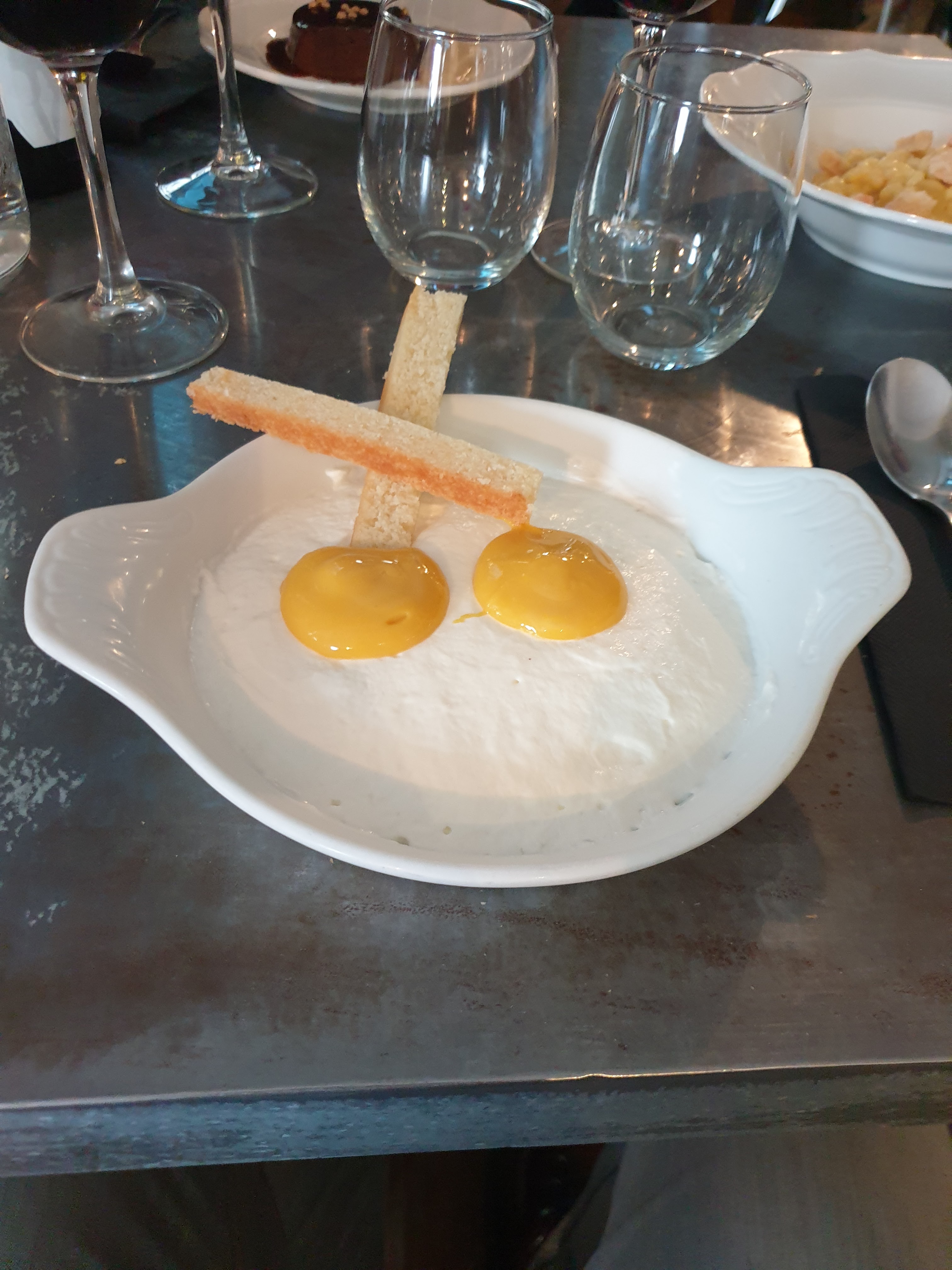 Super concept accueil très sympa mais cuisine un peu trop simple En plat le saint honoré était savoureux L’île flottante : trompe l’œil particulièrement ratée et quantité réduite (c’était une soupe et ça avait l’air d’une soupe) Le riz au lait était bon mais assez facile comme trompe l’œil Pour les desserts le champignon (poire pochée ) et les œufs mayo étaient au dessus du lot visuellement Le service impeccable et souriant C’était bien mais sans plus