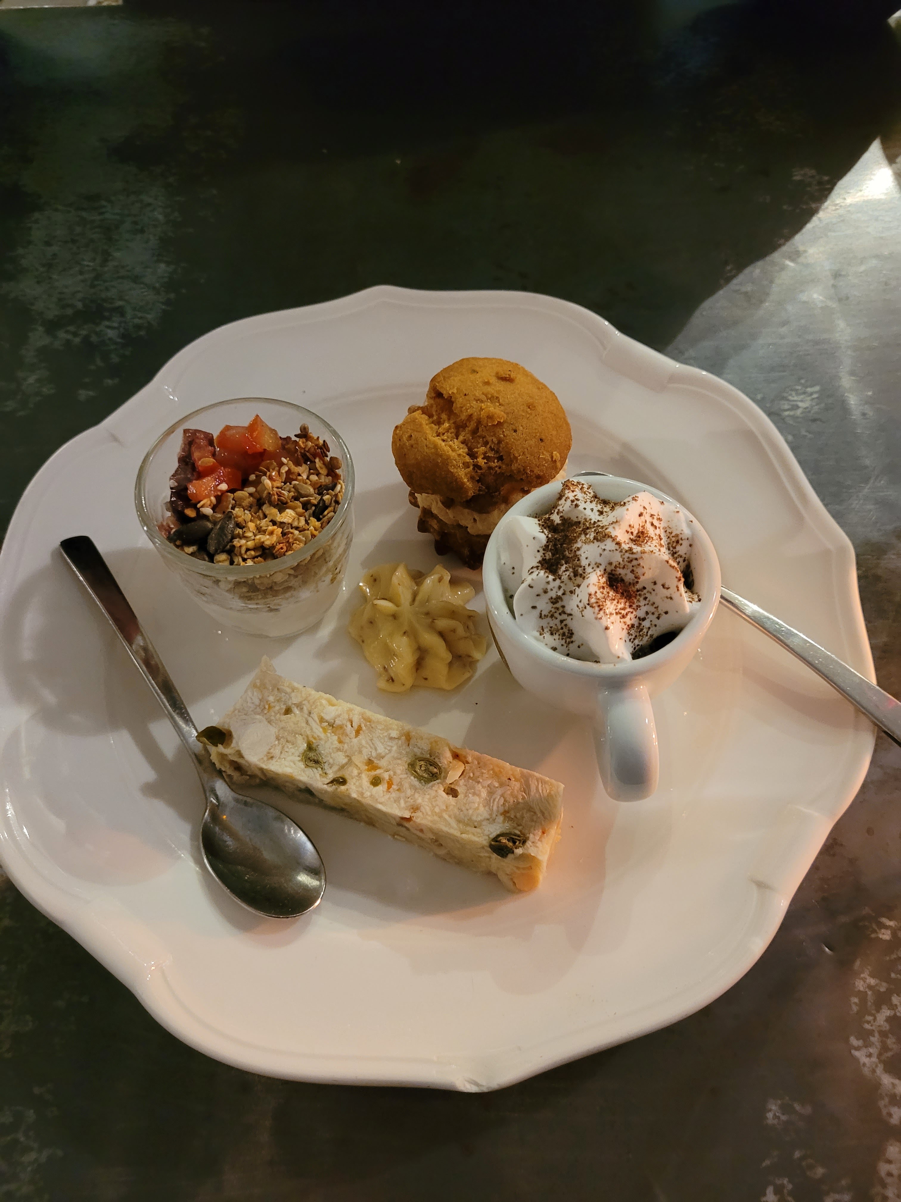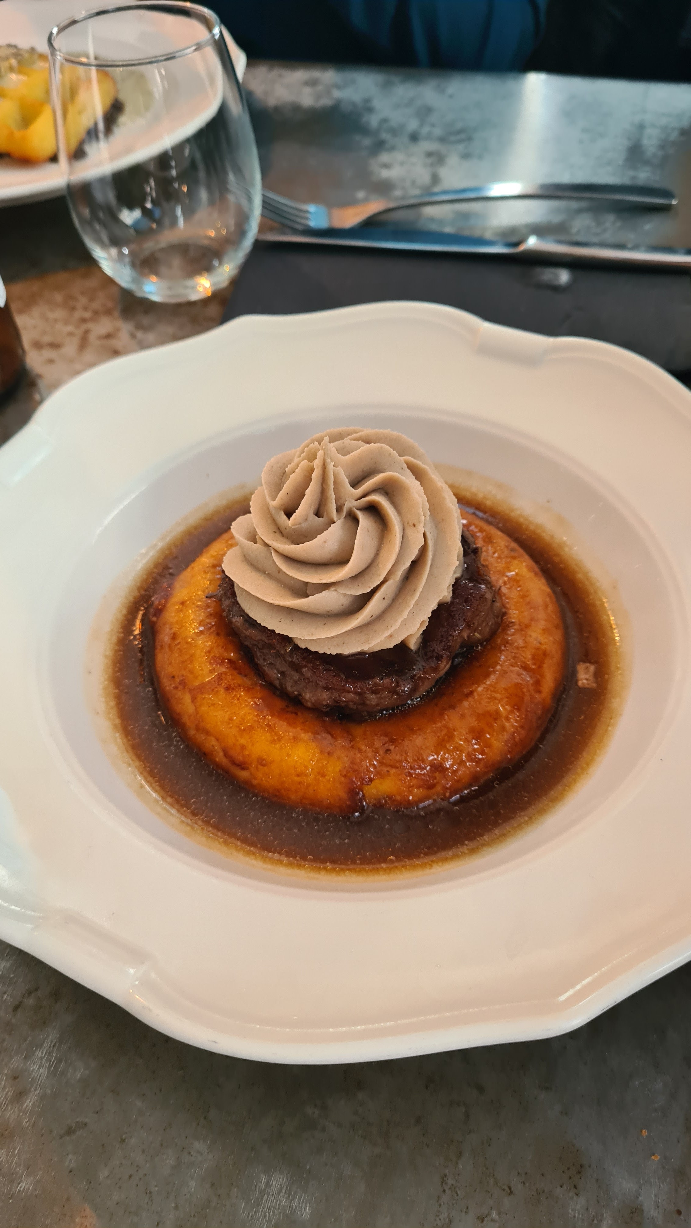Plat extrêmement bien présentés, concept hyper intéressant, personnel chaleureux et dynamique. A faire au moins une fois ! La saveur et l’équilibre des plats n’est pas là. Trop de sauce et champignons dans le cappuccino (et l’œuf parfait, on ne l’a pas trouvé), chou un peu sec, trop de poireaux et sauce dans l’ile flottante. Les plats sont teoo salé.