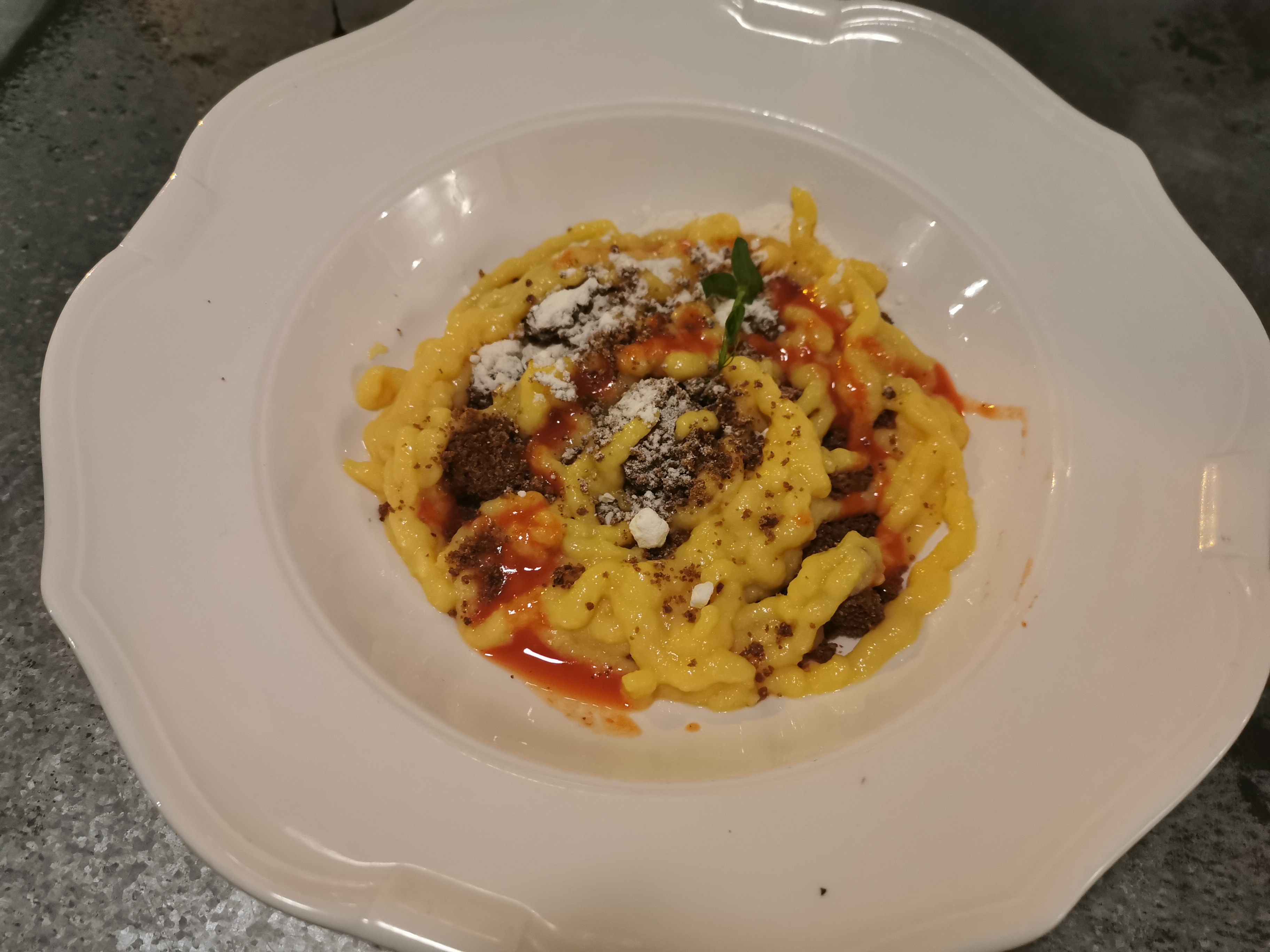 Cuisine original, copieuse et gouteuse pour certains plats mais manque de travail je pense. Exemple la carbonara trop citronné et manque de biscuit dessous. Un Spritz fade avec 2 glaçon fondu et pas de rondelles d'orange. Le service était assez maladroit, la serveuse partait alors qu'on avait pas donner la commande pour tt le monde, le pain nous l'avons eu en fin de plat. L'ambiance était banal rien de particulier.
