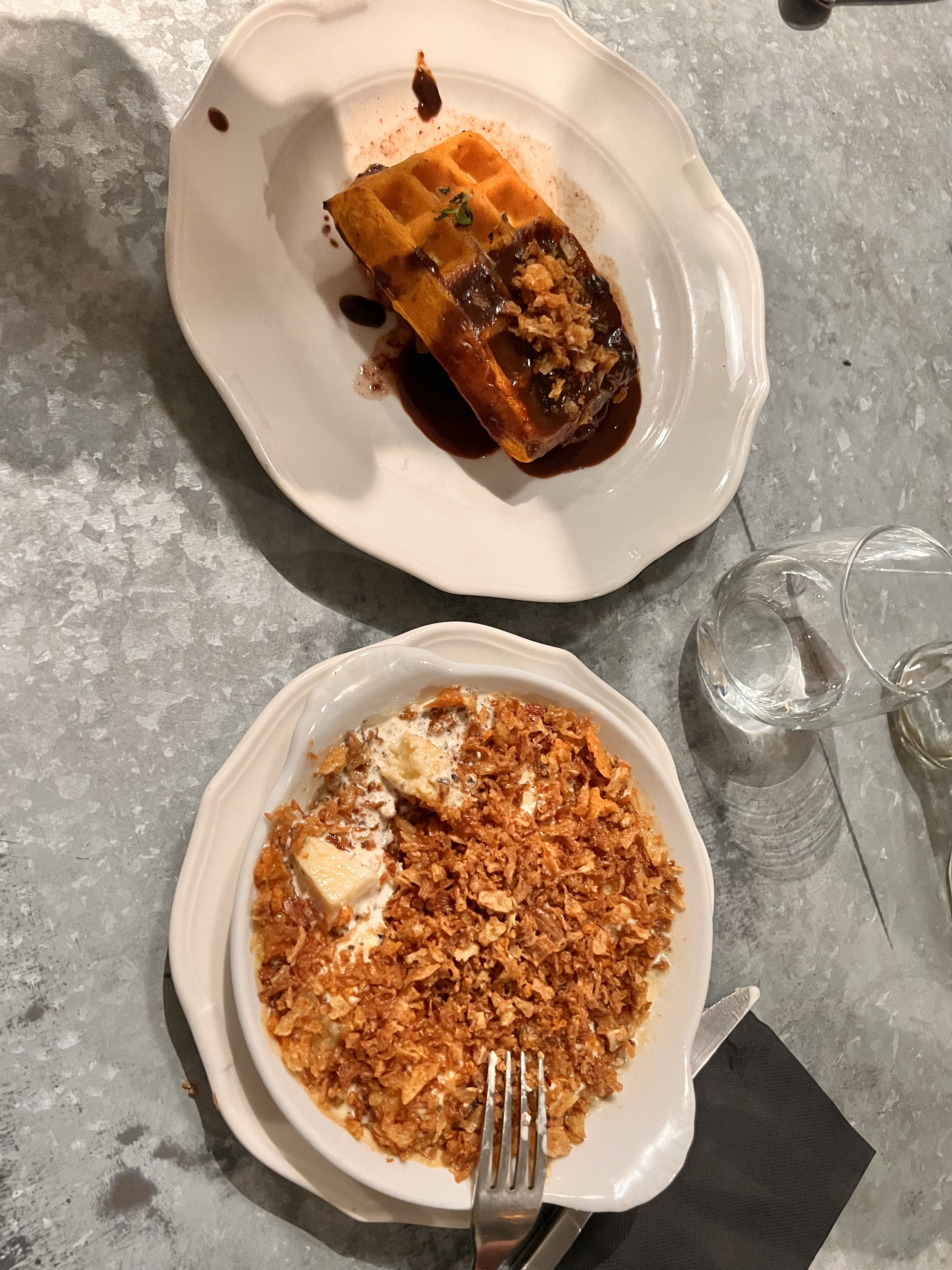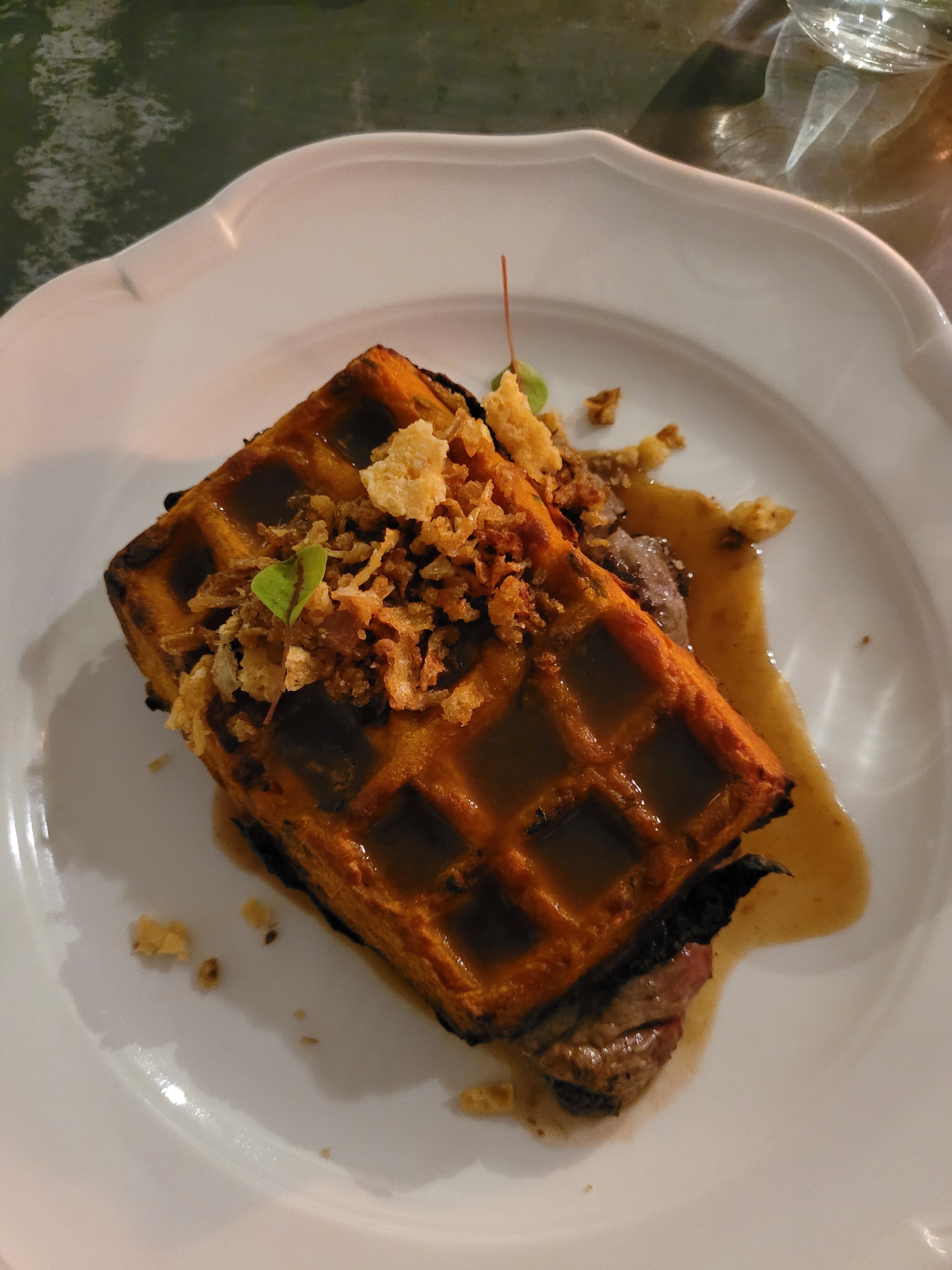 Je suis passé hier soir pour mon anniversaire. La gaufre était super bonne mais j'ai eu un gros coup de cœur pour la madeleine au saumon en entrée. Un concept trop bien et trop bon. Les serveuses était au top. J'ai dit que j'était allergique aux cacahuètes, on a adapté le plat a mon problème. Vraiment un service incroyable. J'ai rarement passé une si bonne soirée. Du fond du cœur, merci beaucoup
