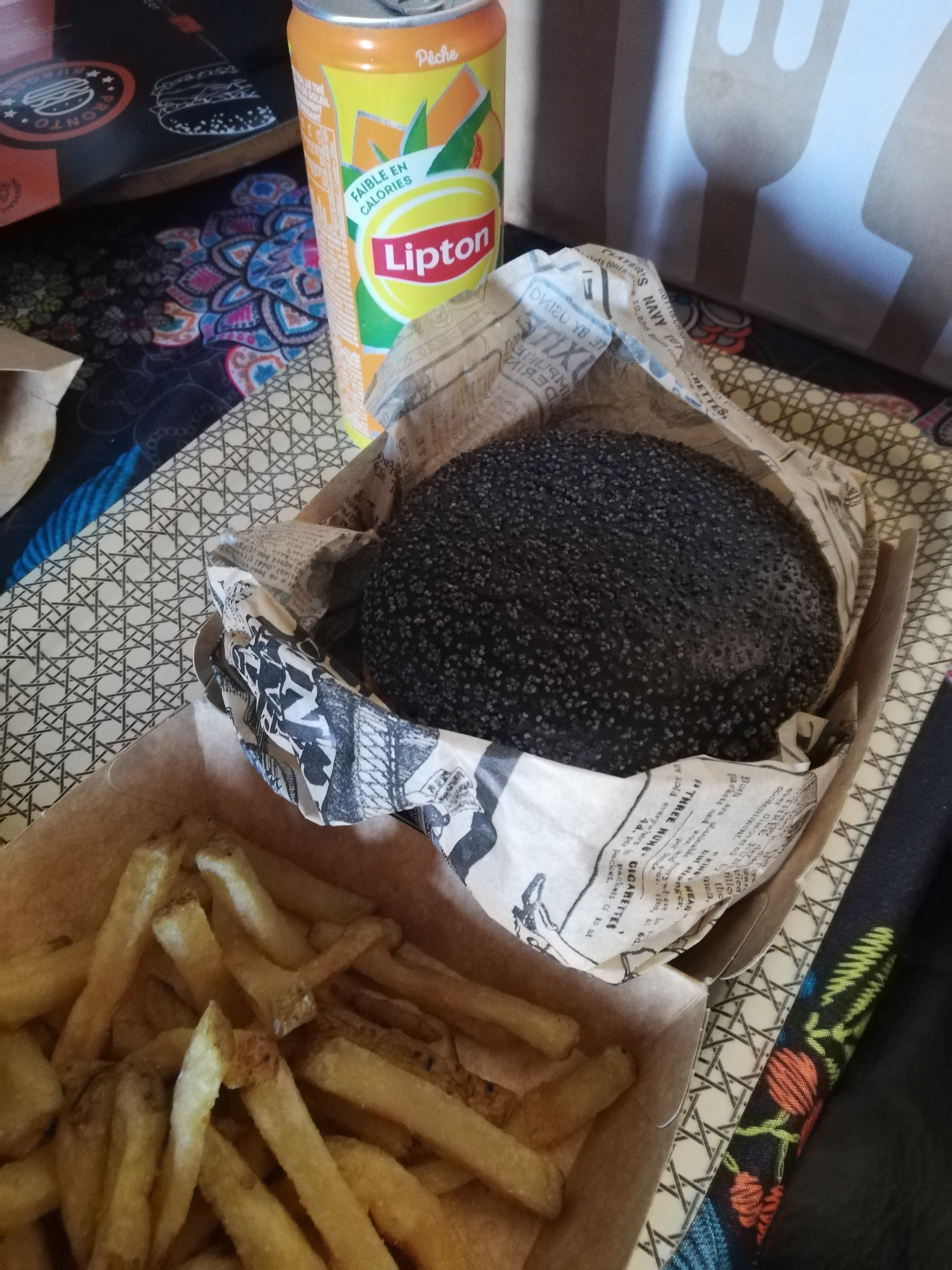 Frites surgelés. Hamburger pas à la hauteur de mes attentes. Ne vaut clairement pas 15 euros.
