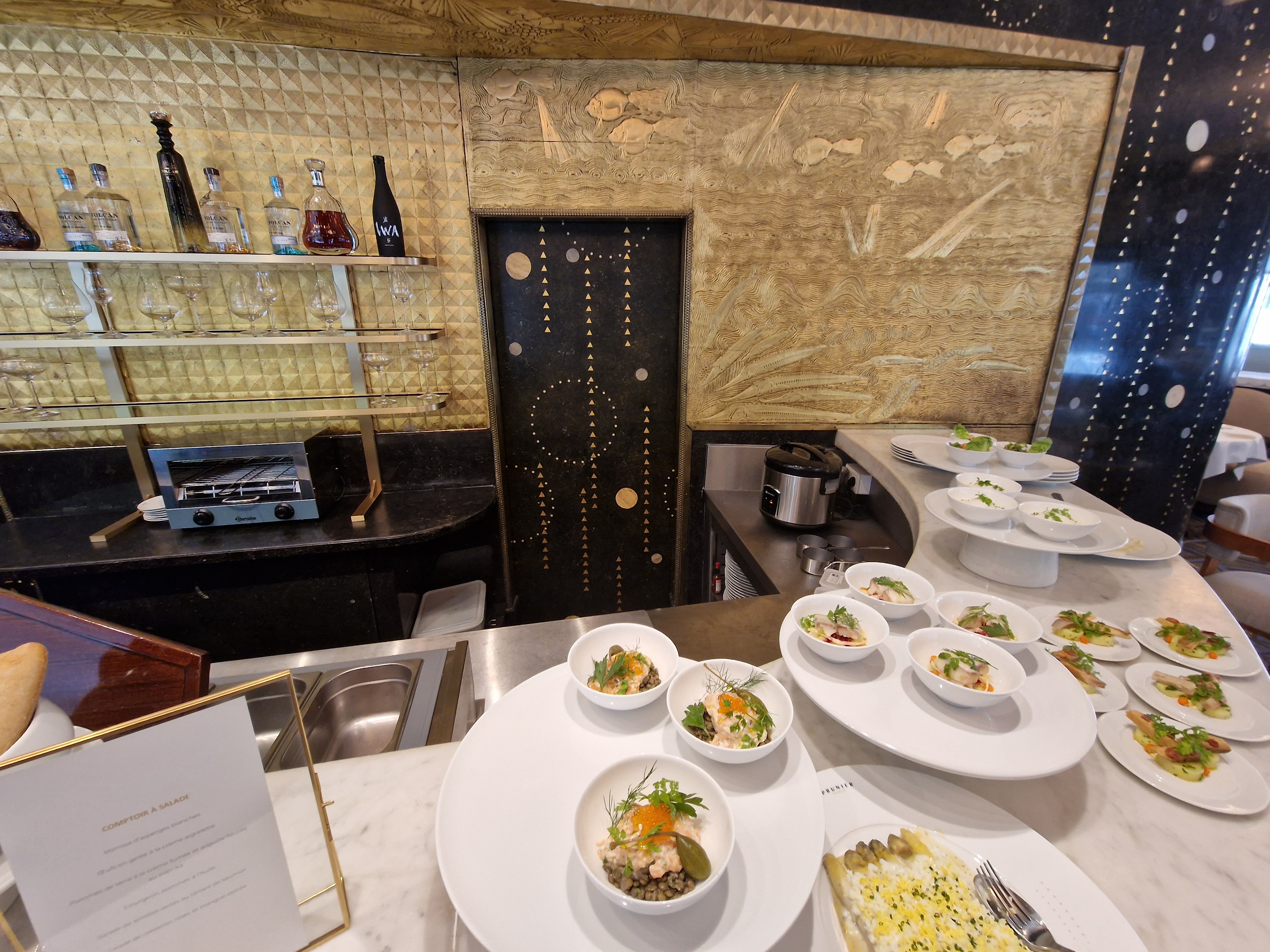 Allez-y les yeux fermés pour déguster des plats savoureux à base de crustacés, de poissons et caviar, un vrai bonheur.... Une carte des vins magnifique. De plus le style art déco est très agréable, ras le bol des restaurants tous décorés de la même façon et tous de les mêmes gammes de couleurs ( gris,beige, taupe, blanc...). Un équipe aux petits soins pour leurs clients. Merci pour ce beau moment !🤗