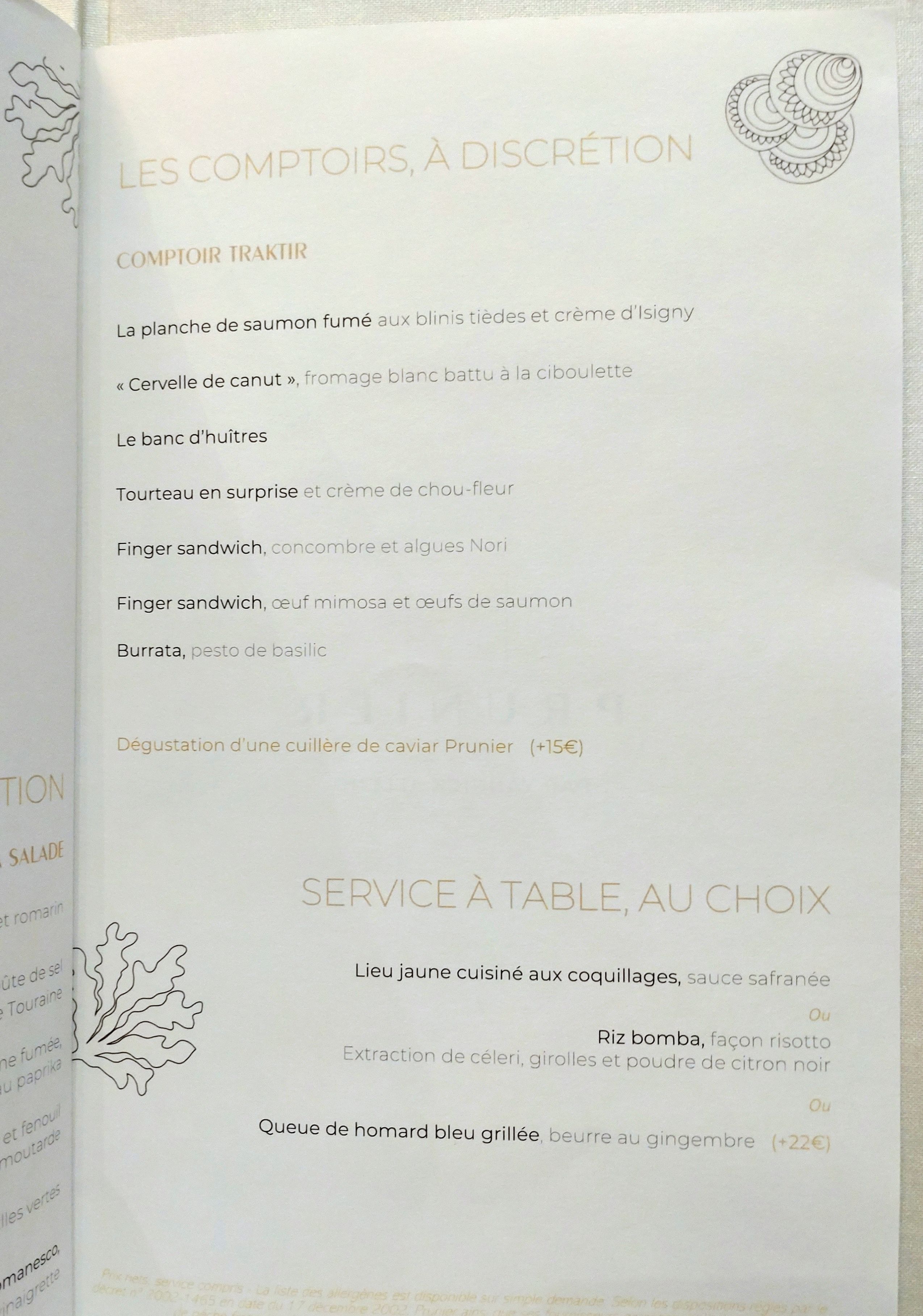 Nous venions pour un anniversaire de mariage . nous avons été très déçus. Le restaurant était au 3/4 vide et nous avons été placés proche de l’escalier. Nous avons demandé à changer de table car il faisait froid . On nous a répondu de mettre le manteau ! Concernant le menu : 6 huîtres pour 49 euros ! Hors de prix . Il ne faut peut être pas exagérer . Passez votre chemin .