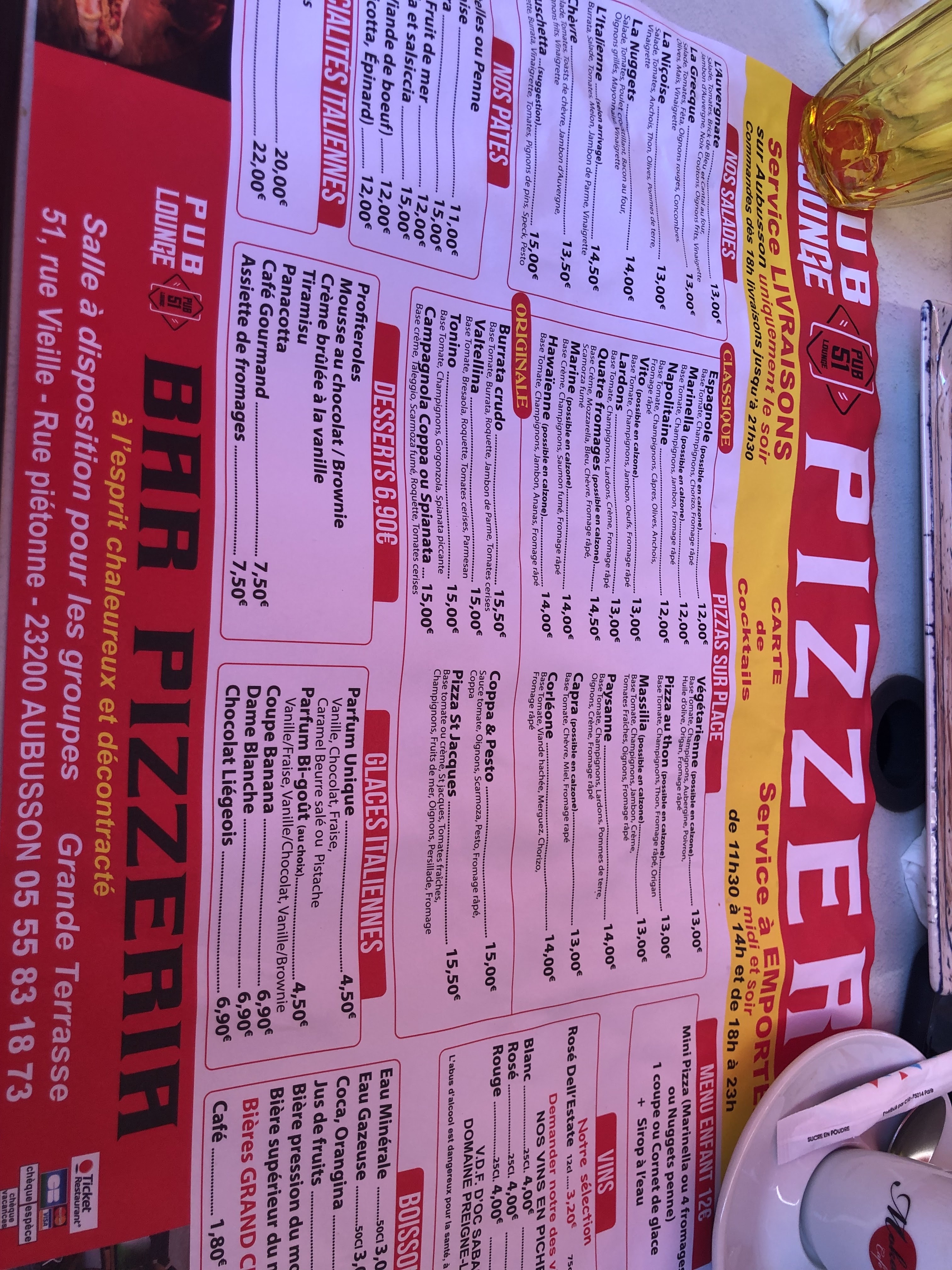 De passage à Aubusson nous avons dîné au pub 51 pizzeria Tellement bien que nous y sommes retournés le lendemain midi! 👍
