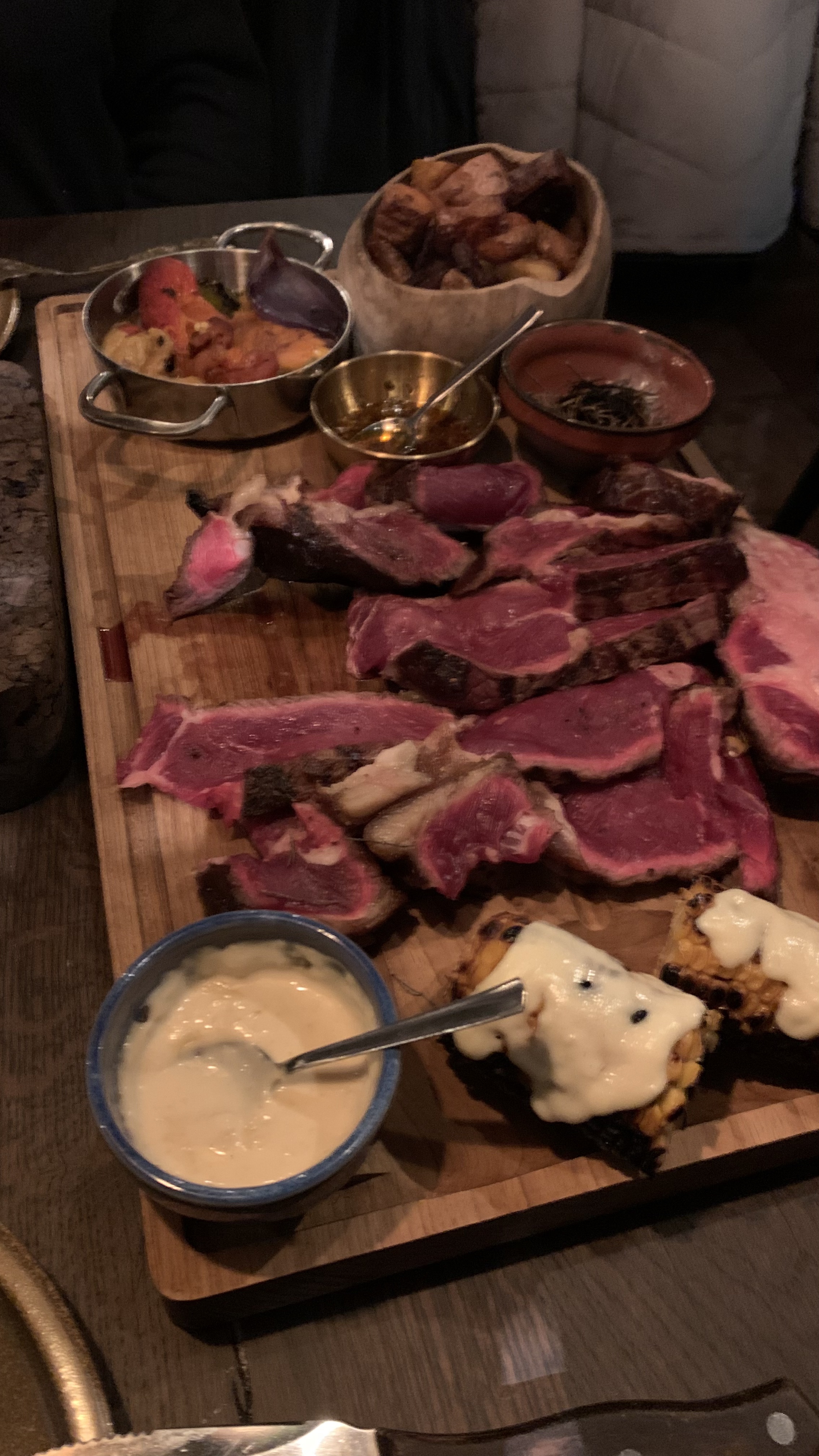 Pour un repas d’affaires nous avons partagé de nombreux plats dont des côtes maturées, c’était juste parfait chaque fois que nous sommes venus.