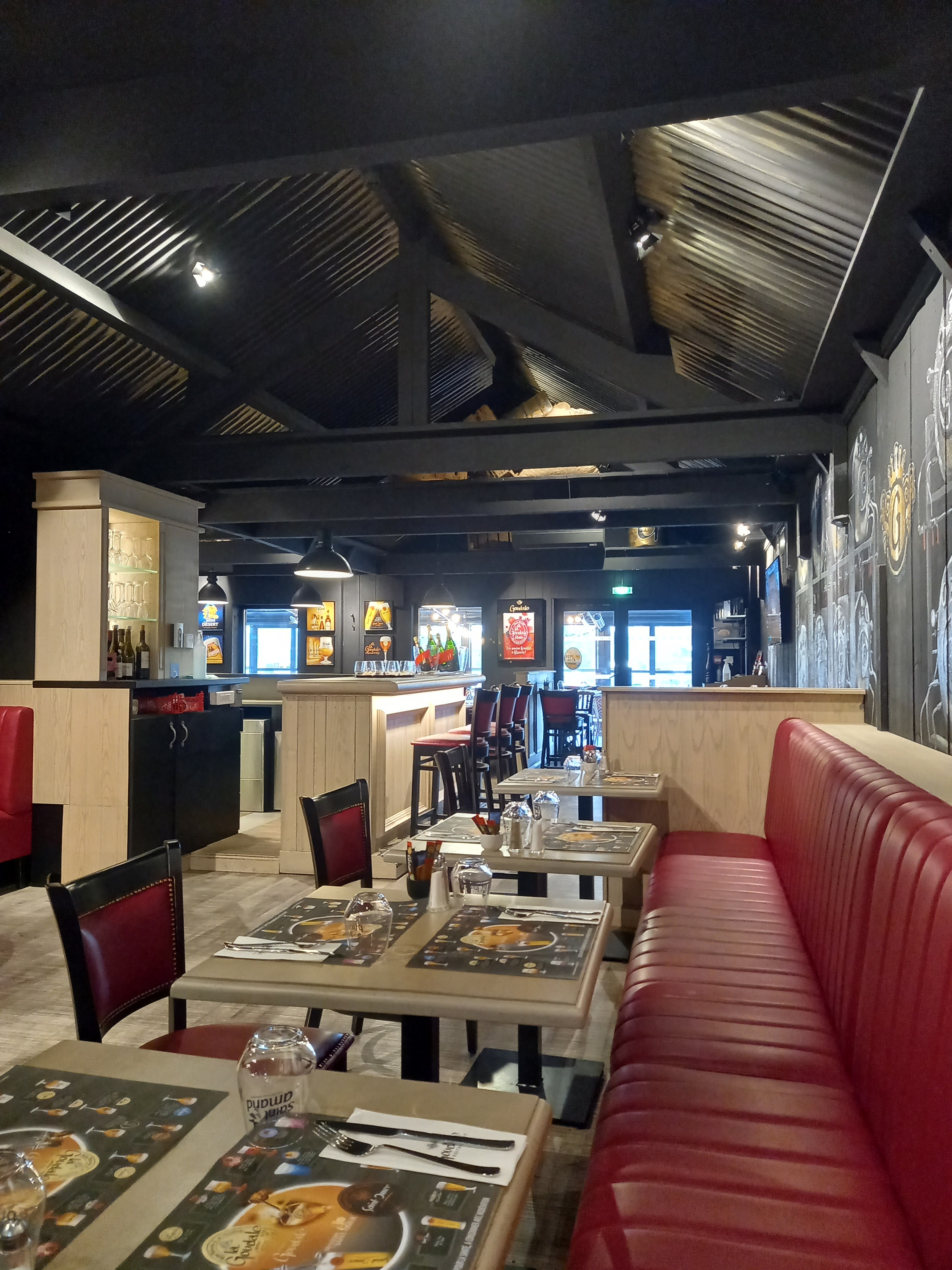 Déçu ! La qualité des plats n'est pas top, manque le bacon dans le burger, la salade était en fin de vie (les bords de feuilles tirés vers le marron), il restait des morceaux dur et immangeable dans le coeur d'artichaut. Et les prix sont quand même élevés par rapport à la disposition du restaurant. Par contre, nous avons été agréablement surpris des travaux réalisés, le cadre est très chaleureux et les serveurs sont courtois. Dommage il y a quelques loupés... Le comble du comble c'est que le lendemain on s'est rendus compte qu'un menu enfant avait été compté en plus ! ! !