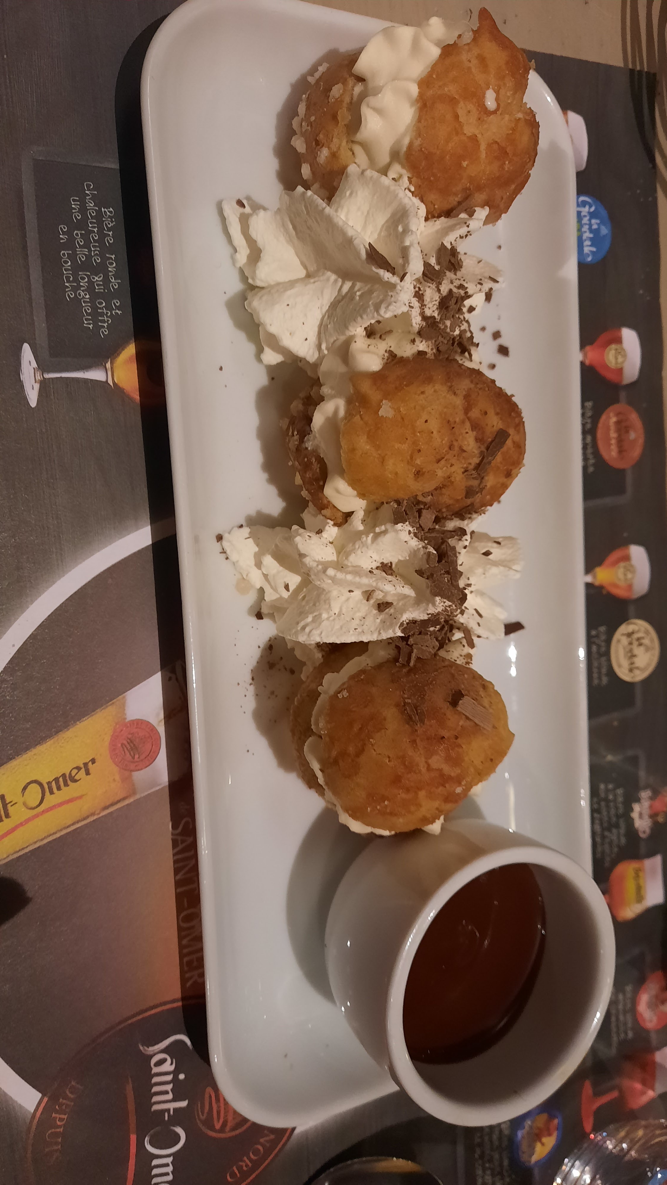 Très bon repas, carbonnade pour moi et welsh pour mon ami, trio de trois desserts succulent. Je recommande vraiment avant ou après le bowling
