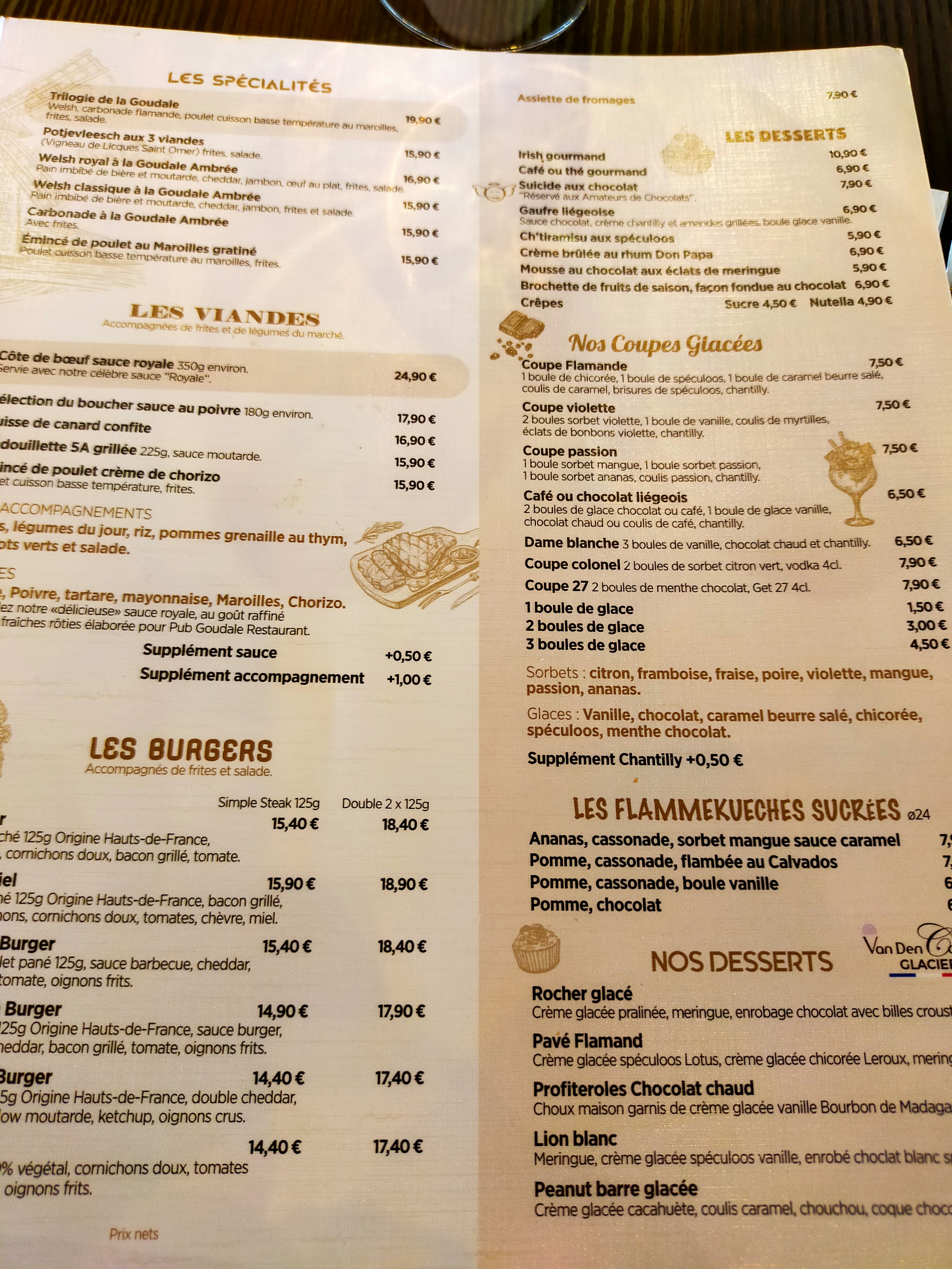 Une brasserie avec des plats typiques, un petit bémol sur la carbonade qui n été pas vraiment au top (pas assez cuite, un peu dure et beaucoup de gras, elle n a pas du être assez cuite). Le reste des plats sont très bien et bien servie.