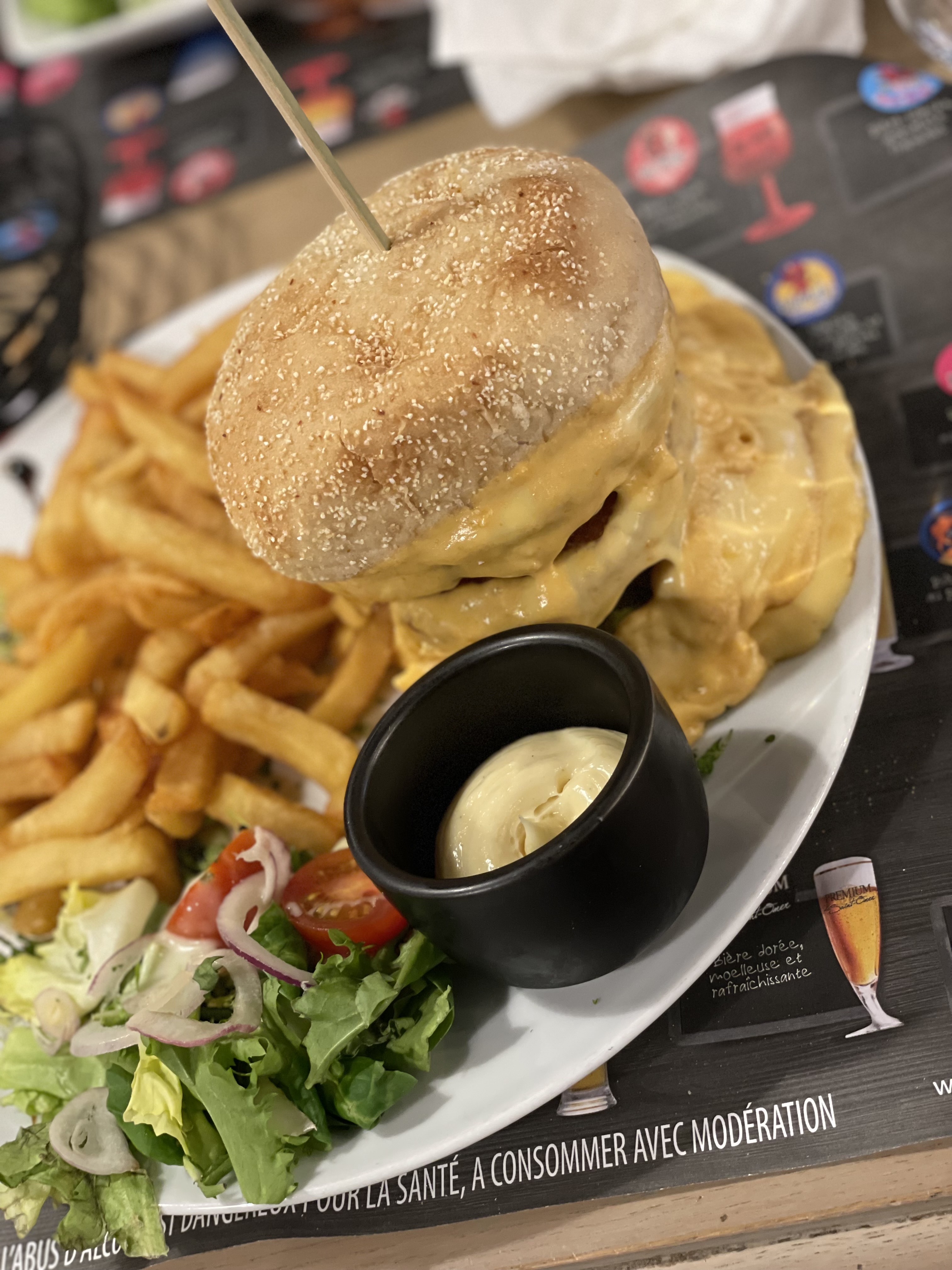 Repas pour deux un lundi soir, peu de monde, accueil au top, serveur et serveuse souriant et agréable! La planche charcuterie pour deux est bien suffisante et bien servie, Le double chicken burger avec sa sauce gauacamole tres bonne! J’hésitais car à part la gaucamole il n’y a pas d’autres sauces dans le burger mais finalement c’est super bon et bien bien copieux! Service agréable, pas beaucoup d’attente entre les plats, juste ce qu’il faut! Nous reviendrons avec plaisir 👌