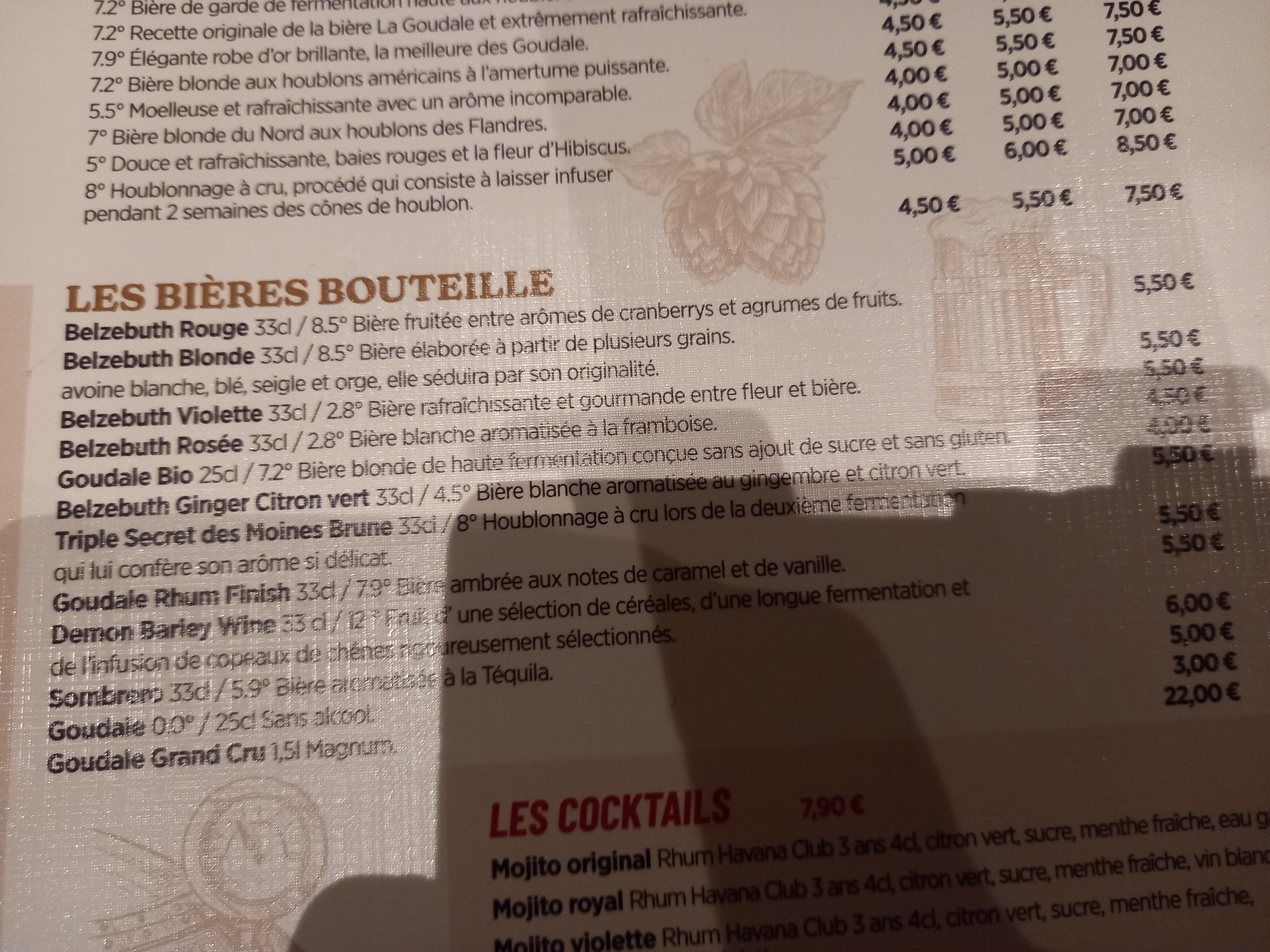 Excellente expérience au restaurant « La Goudale » ! Très bon rapport qualité/prix. Nous avons passés un bon moment et pour cela je tiens à remercier en personne Damien, Jennifer, Camille, Stéphanie et Kerryan pour leur professionnalisme et leur bonne humeur, vous êtes une équipe au top, ne changez rien. Nous reviendrons très bientôt.