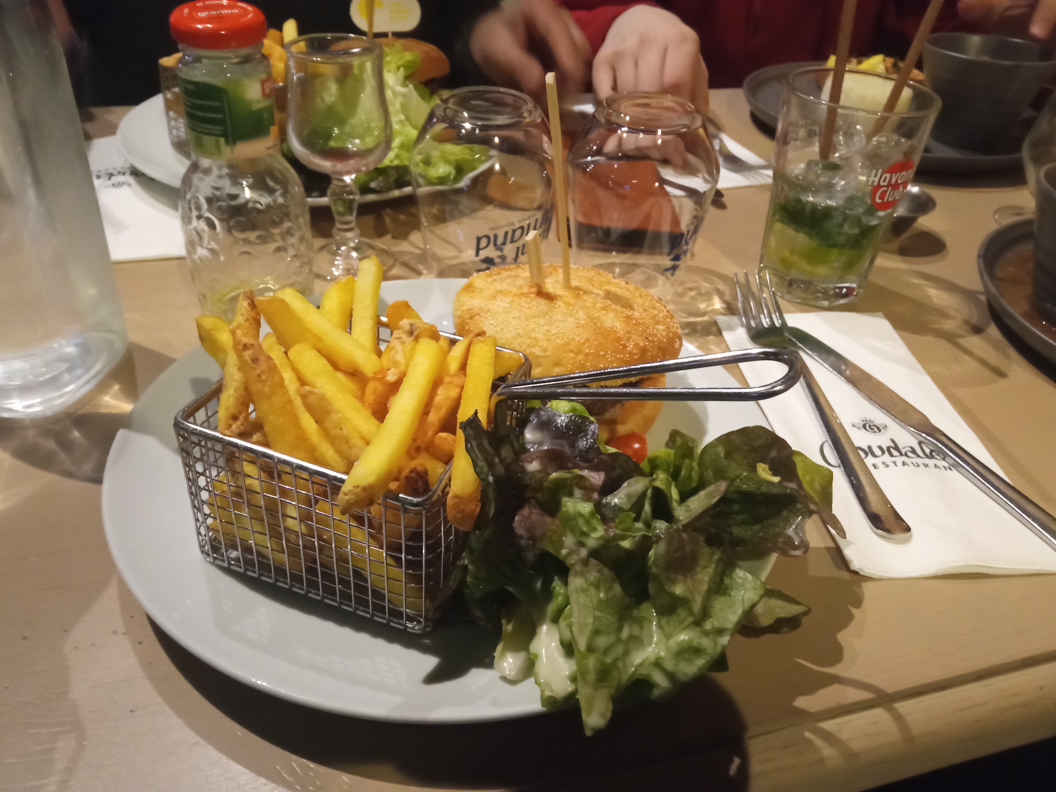 Cadre et ambiance agreable. Mojito correct, mais pas exceptionnel. J'ai pris le plat original goulade burger (steak 125g) : Frites et salade bonnes, le burger est assez petit et pas beaucoup garnie avec les différents ingrédients, le steak est bon.