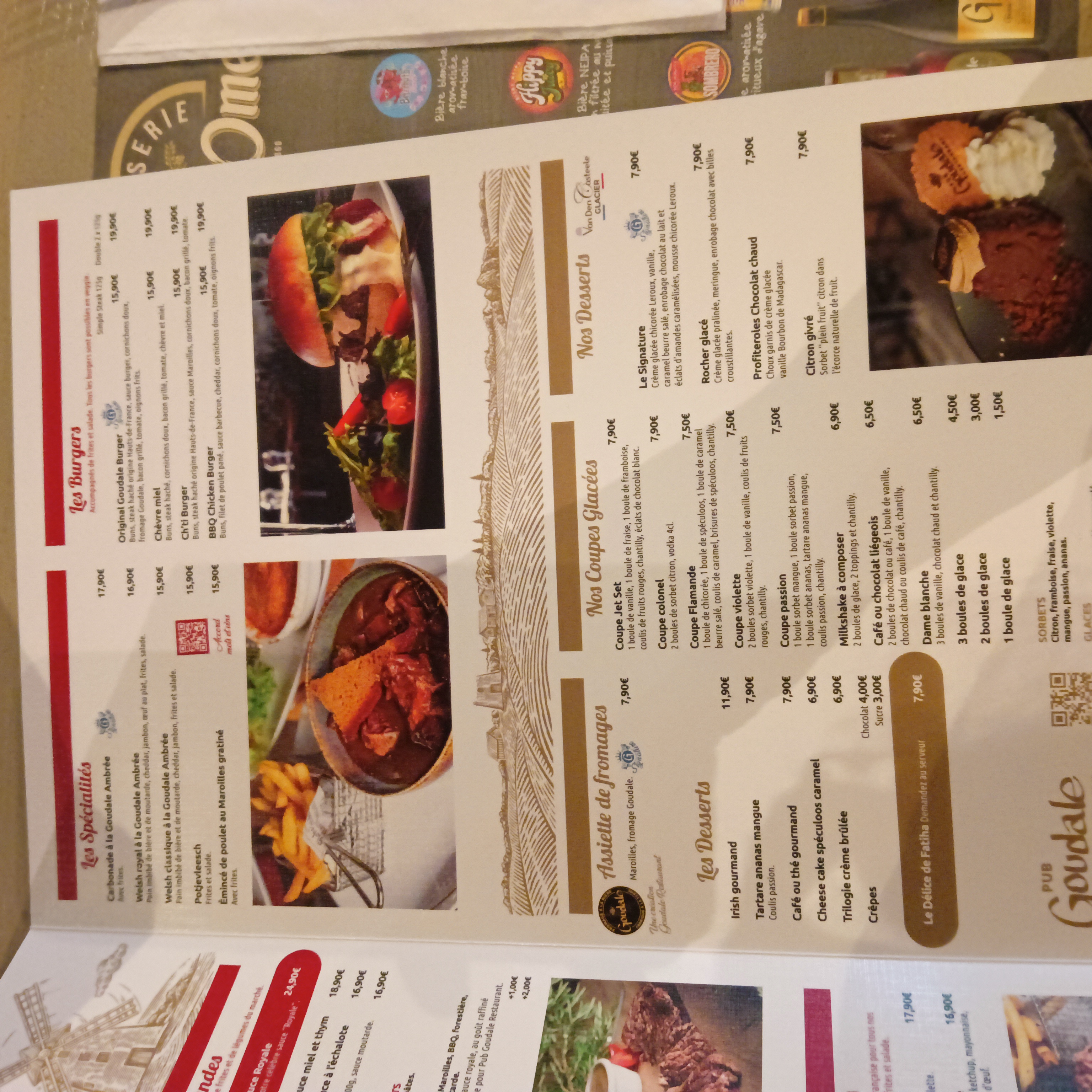 Repas très copieux, de très bonne qualité, personnel très accueillant Pour une première dans un restaurant Goudale je recommande fortement