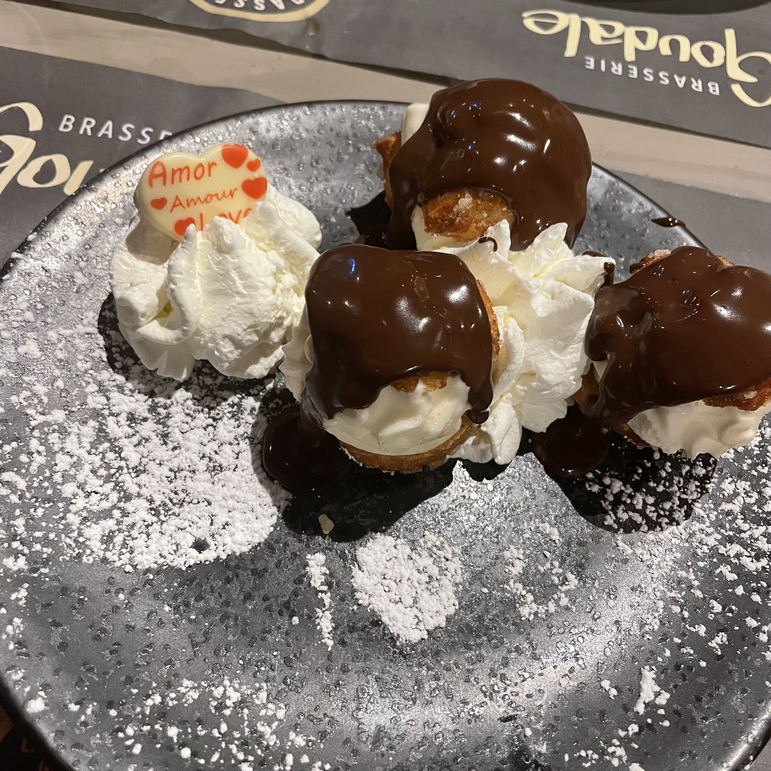 En fin de courses dans le supermarché voisin nous émettons l envie d un dessert il est17h45 le goudale s offre à nous . un employé nous rejoint ,le restaurant est vide ,les caddie sont interdit dans le restaurant, nous avons choisi le dessert et n avons rien consome. Nous nous rabattons sur le Maori au centre ville j attend mes profiteroles. Merci Goudale.