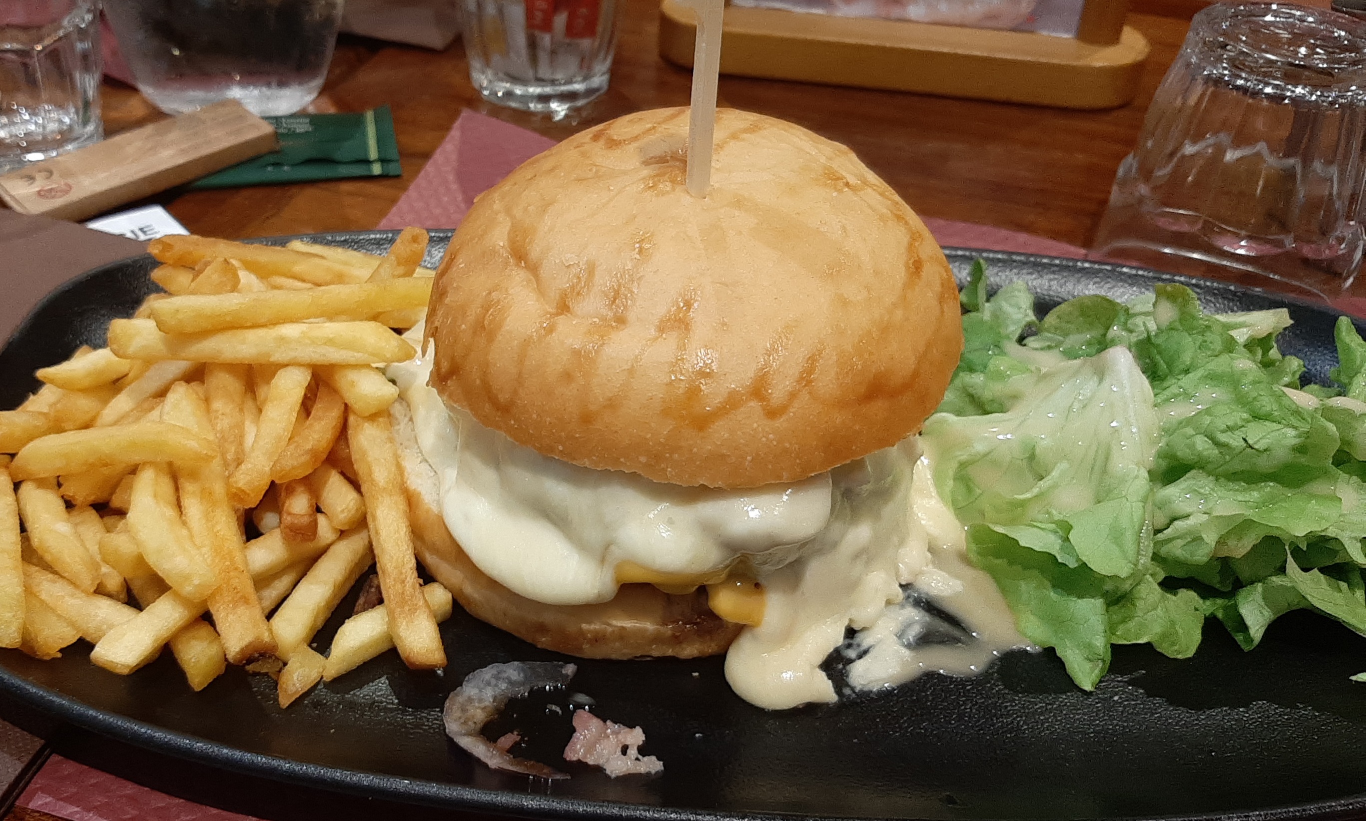 Le burger n'est pas très bon : le pain est dur, la viande trop cuite (demande à point) et les frites sont huileuse, écœurantes.