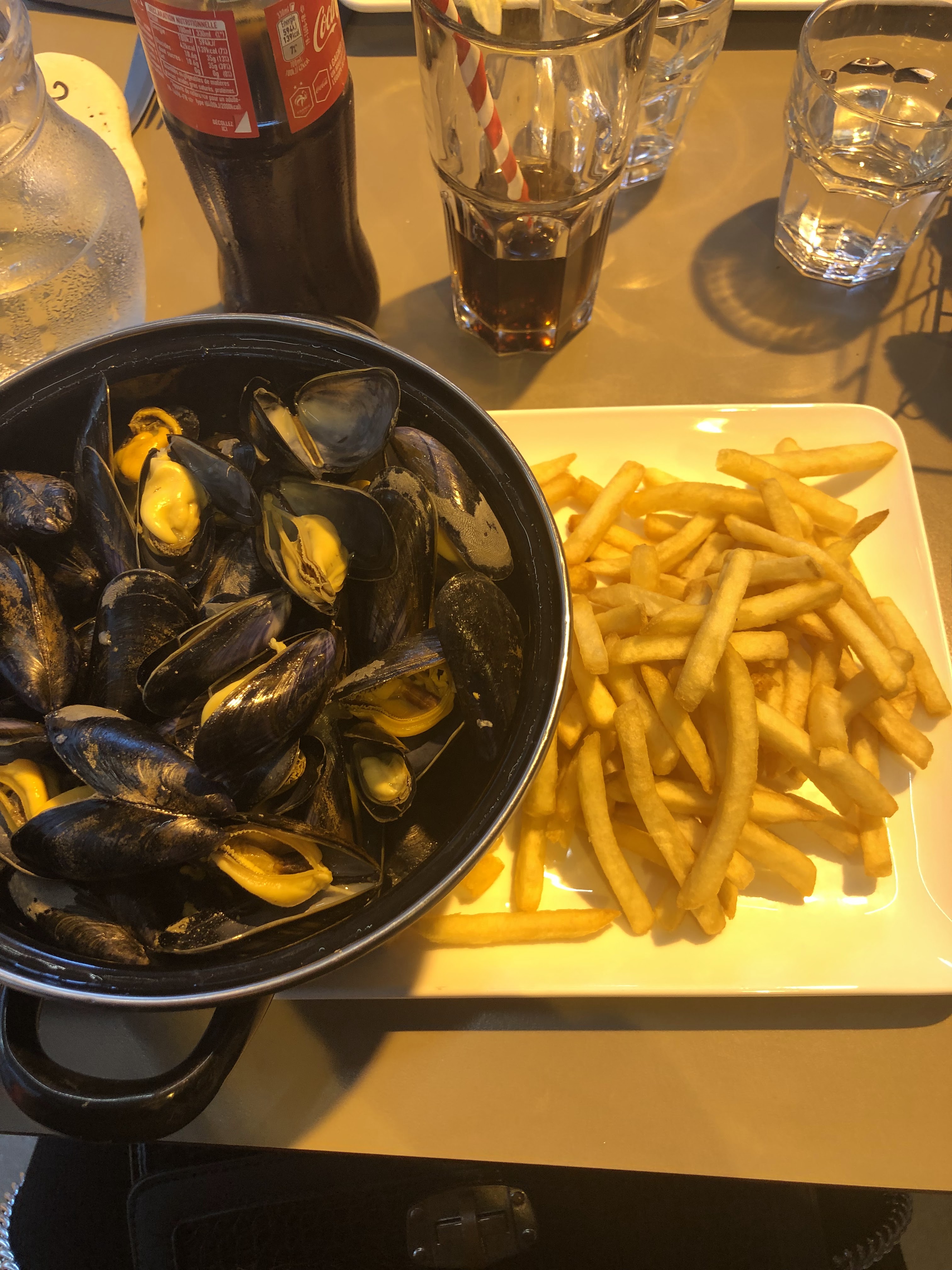 Après presque 30min d'attente, nous avons enfin pu déguster nos moules qui étaient très bonnes. Sûrement dû au Covid, notre 1er serveur avait l'air dépassé par les événements, heureusement que sa collègue était plus reactive. Nous recommandons tout de même.