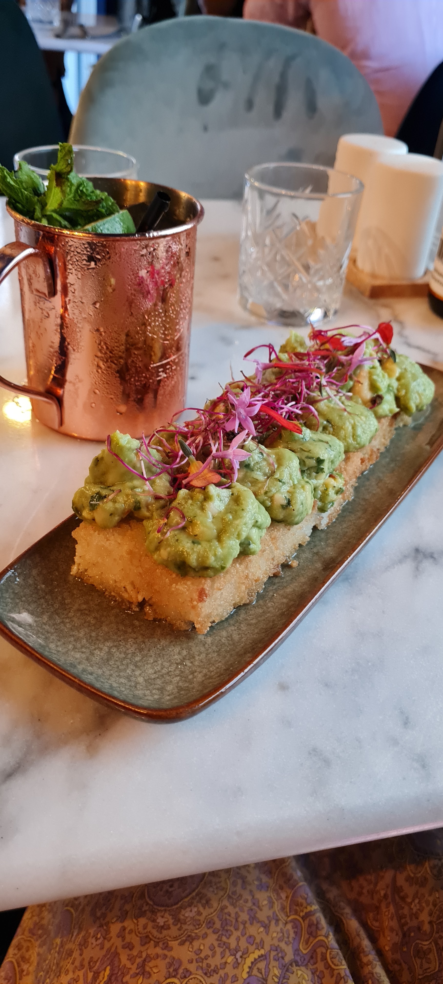 Les cocktails sont excellents! Le service médiocre. Pas de connaissance du menu pour la première serveuse (que nous avons dû appeler pour commander car sur son téléphone) et la deuxième serveuse avait probablement utilisé son quota de sourires pour la journée. Ni un merci ou meme un m****. Et la nourriture… sans saveur. Aucun assaisonnement, aucune préparation. La cuisine qu’ils proposent est normalement pleine de caractère mais la… vraiment d’un ennuie que j’ai rarement eu dans un restaurant. Si vous regardez la page Insta, ça donne envie mais vraiment c’est que du marketing. Sauf pour les cocktails qui sont excellents et beaux.
